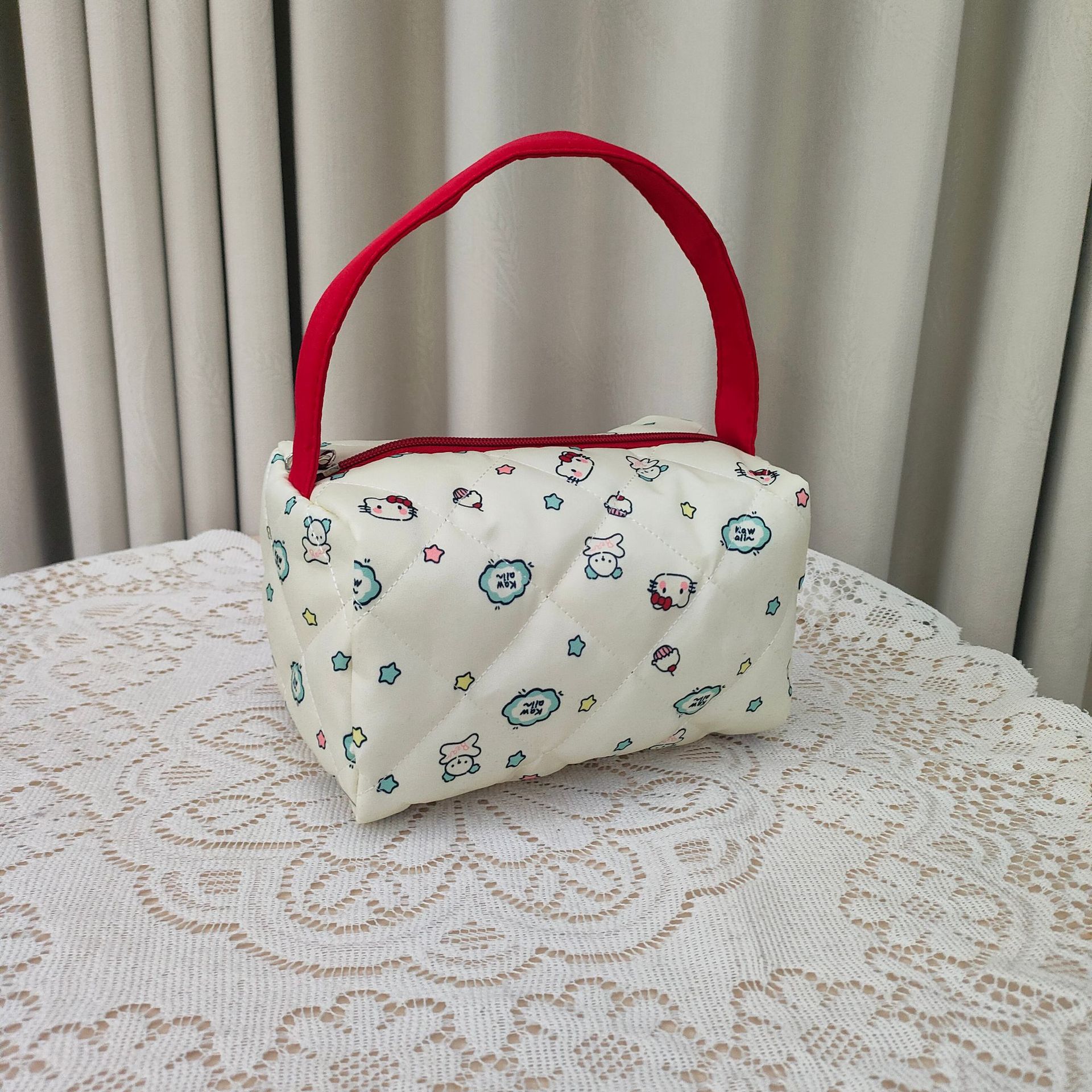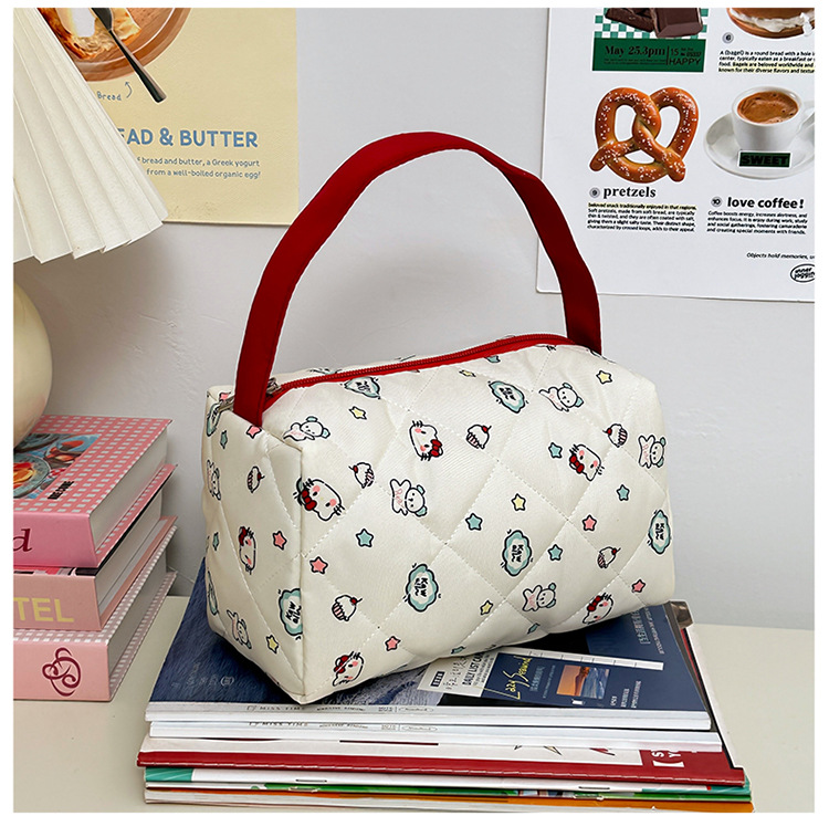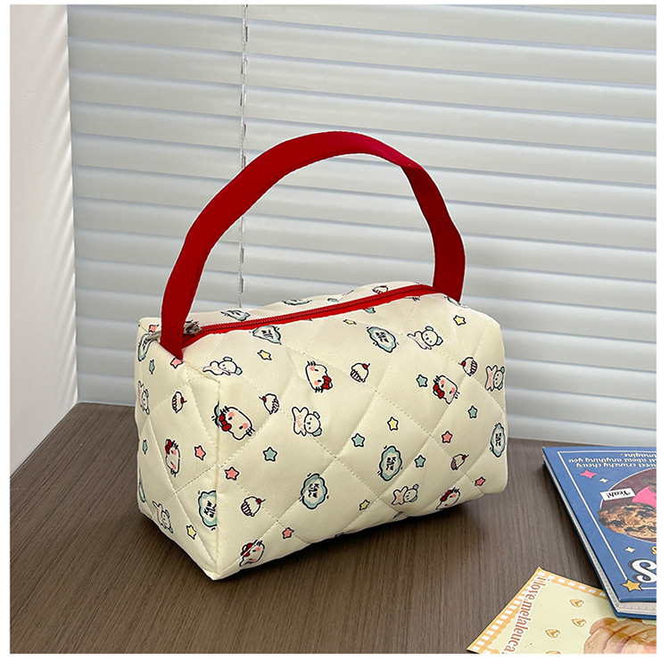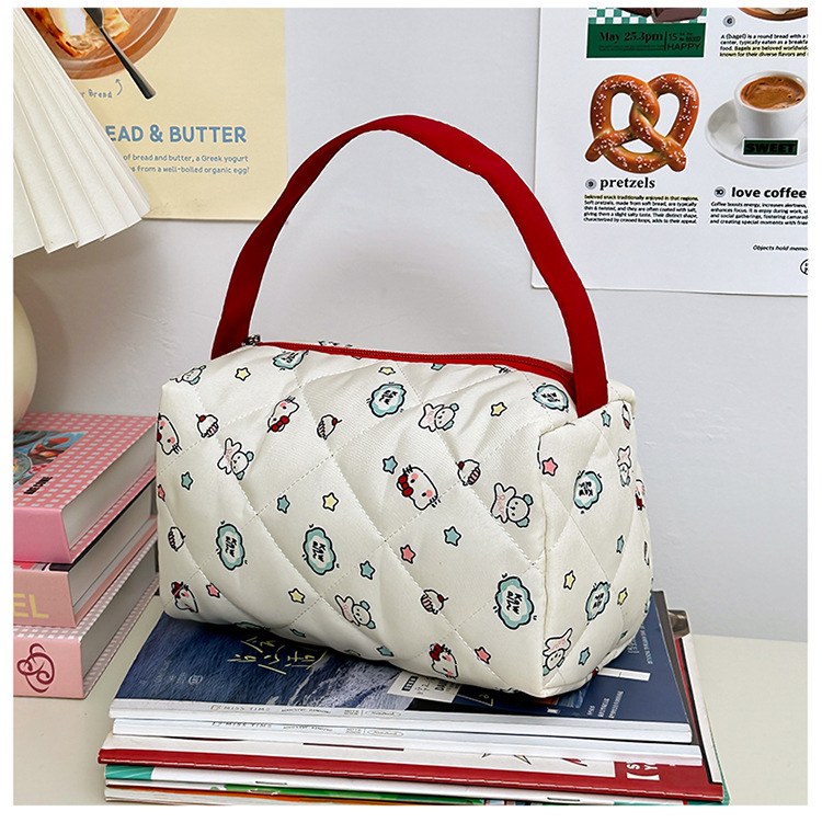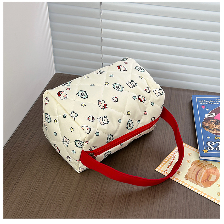 귀엽고 인기 있는 버블 코튼 대용량 화장품 가방 핸드백 신상 여성 가방 휴대용 입체 수납 가방 세면도구 가방