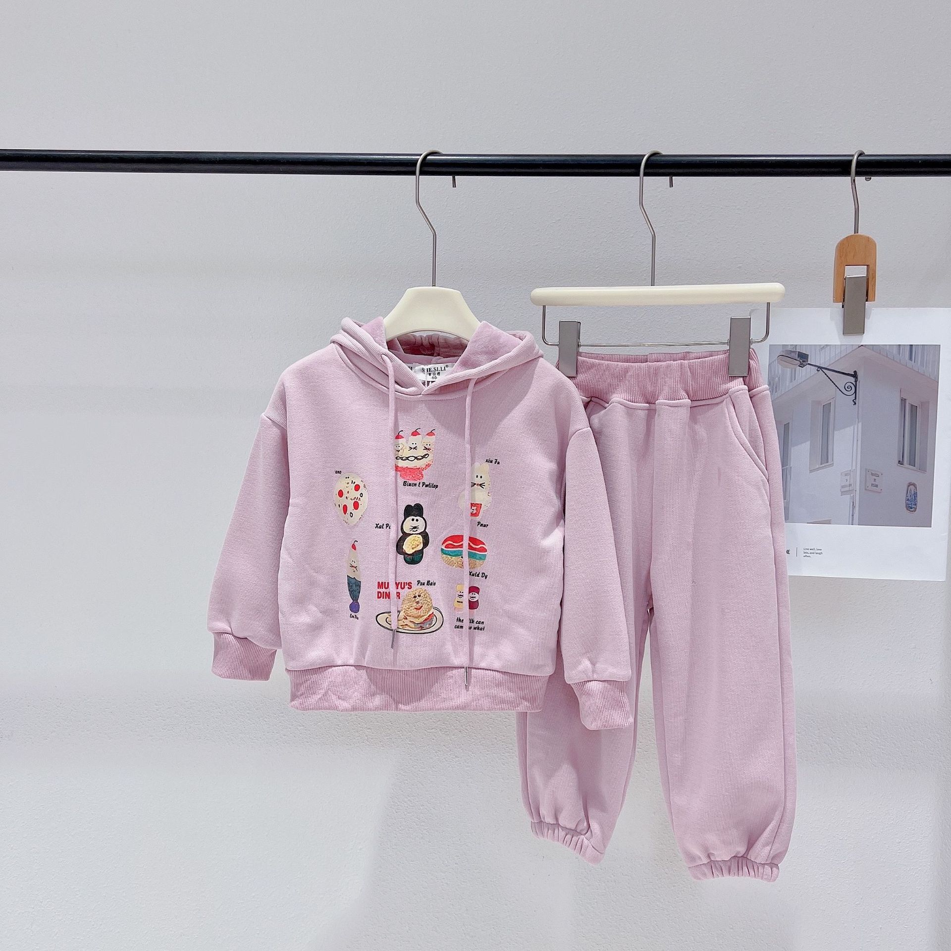 아동복 2025 겨울 새 스타일 2980 소년 인쇄 만화 후드 원피스 벨벳 소녀 한국 스타일 정장스토어 가기