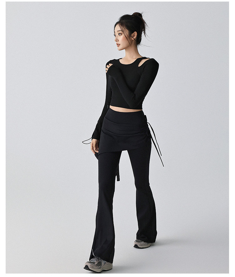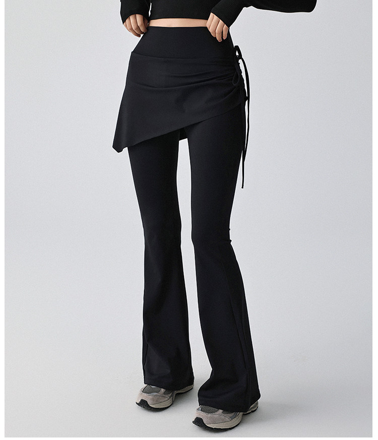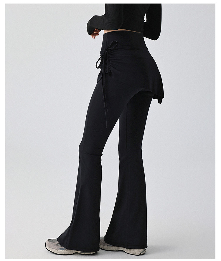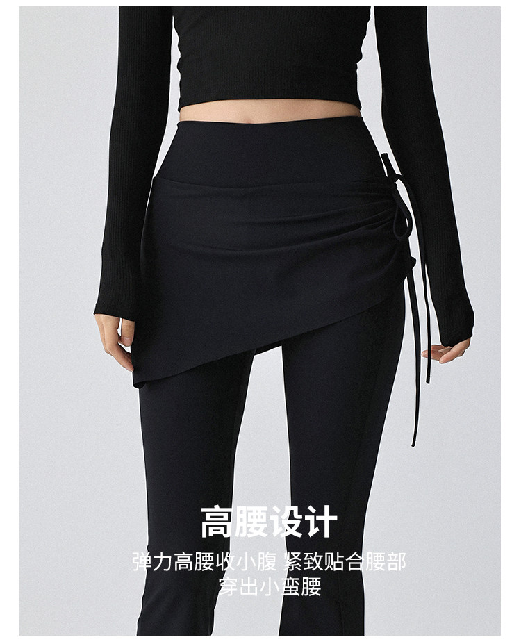 가짜 2 피스 요가 바지 여성의 높은 허리 슬리밍 피트니스 바지 새로운 사이드 드로스트링 엉덩이 커버 훈련 스포츠 바지