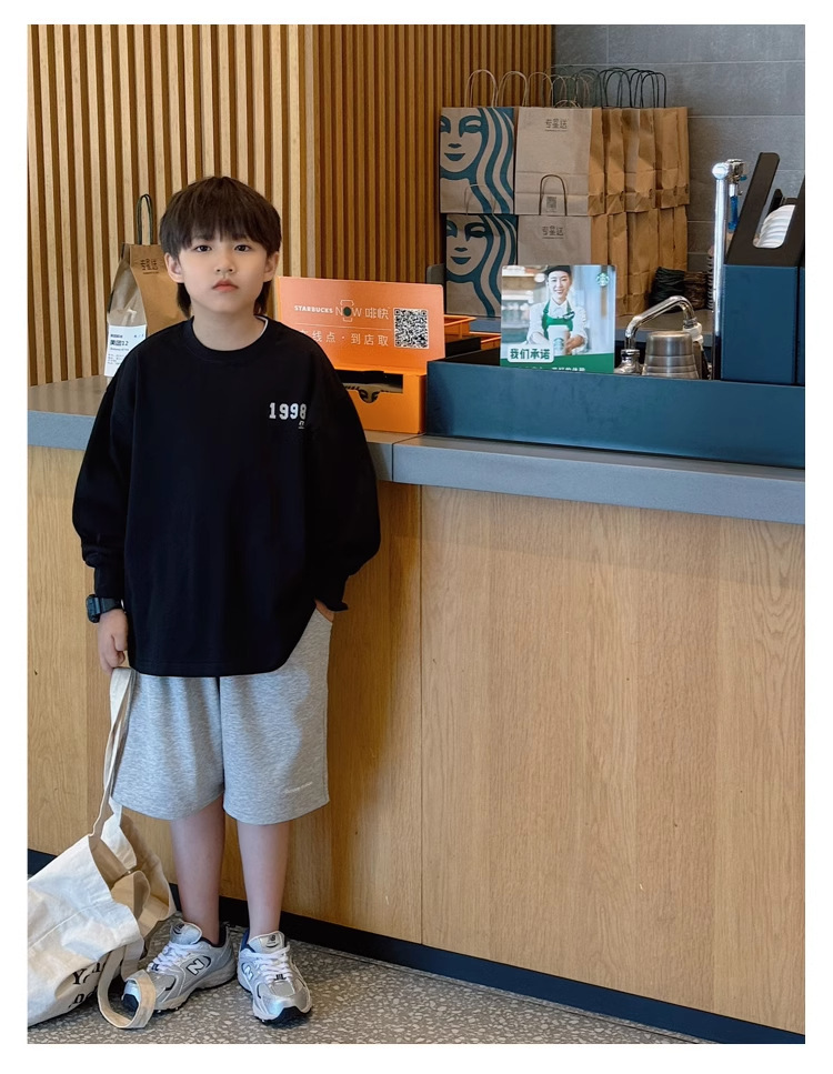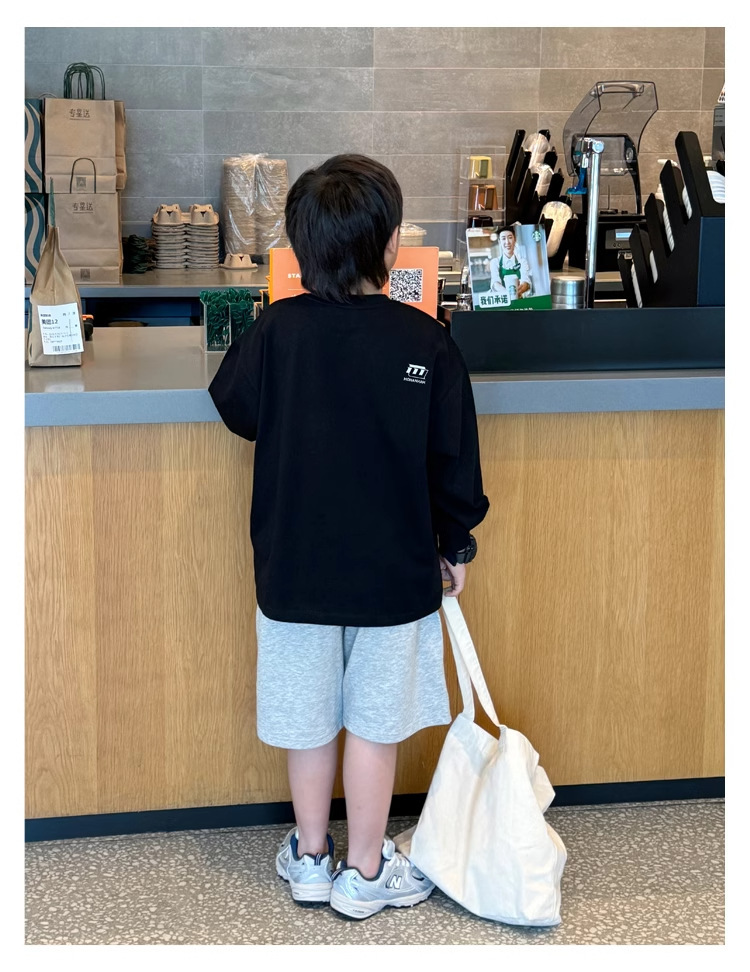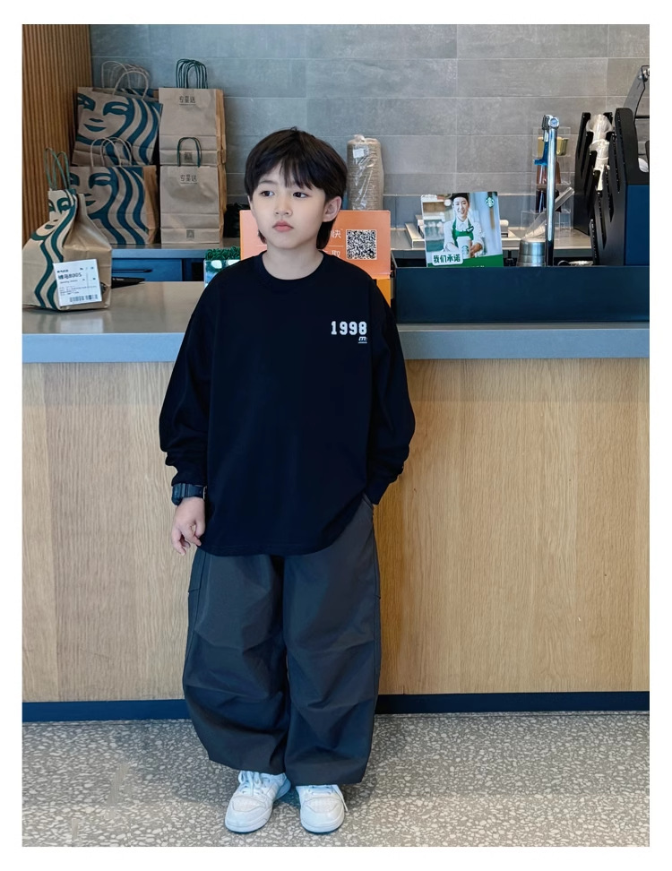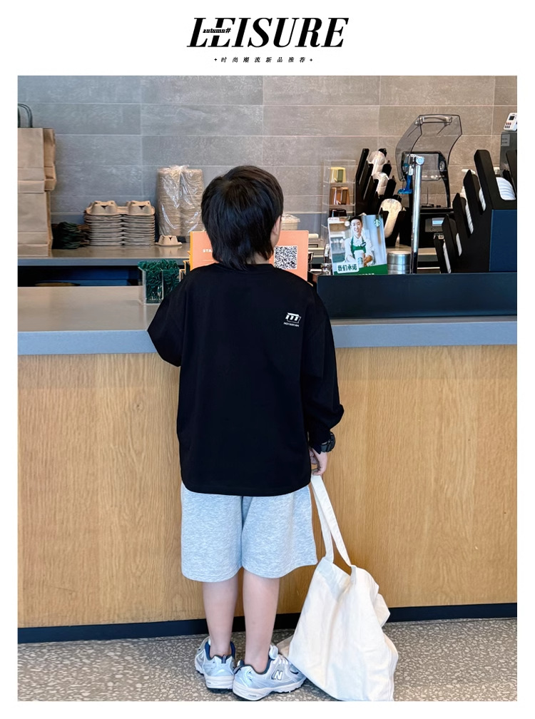 어린이 느슨한 탑 어린이 가을 2024 간단한 한국 스타일 유행 긴 소매 티셔츠 남성 편지 인쇄스토어 가기