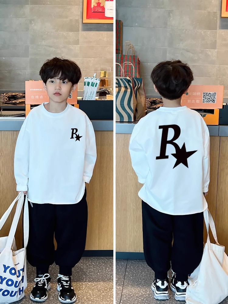 어린이 느슨한 탑 어린이 가을 2024 간단한 한국 스타일 유행 긴 소매 티셔츠 남성 편지 인쇄
