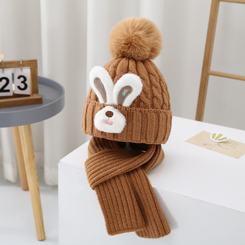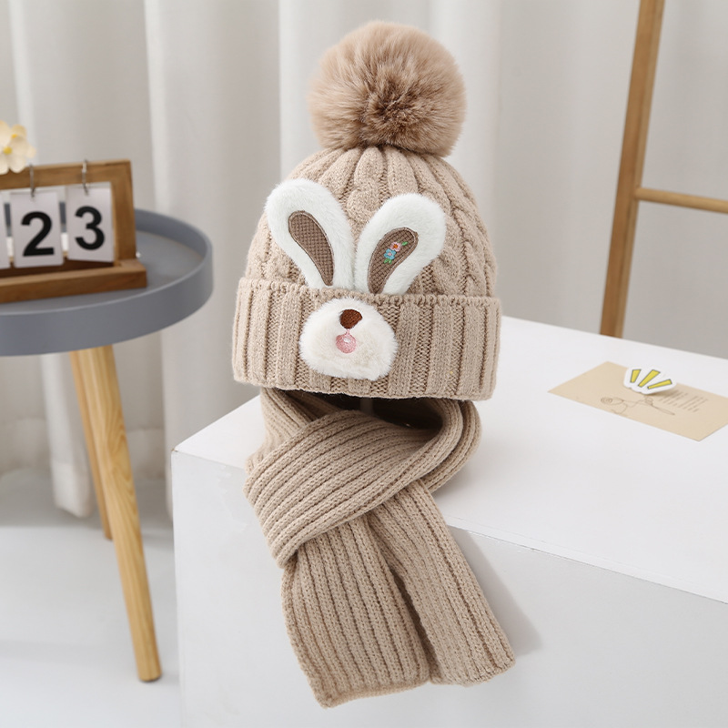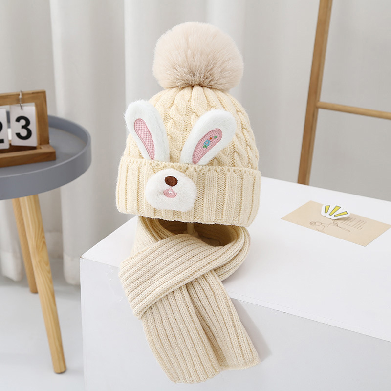 어린이 모자 가을과 겨울 소년과 소녀 니트 모자 스카프 투피스 세트 아기 두꺼운 방풍 따뜻한 귀 보호 모자