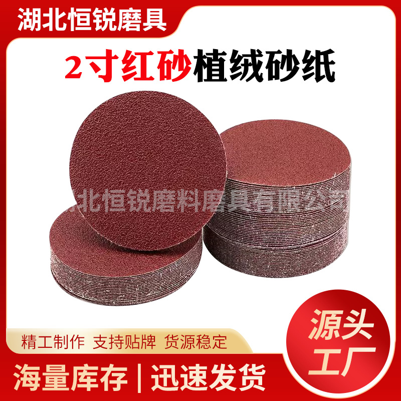 아마존 폭발성 내마모성 2 인치 모형 사포 디스크 공압 연삭 자체 접착 50mm 붉은 모래 디스크 브러시스토어 가기