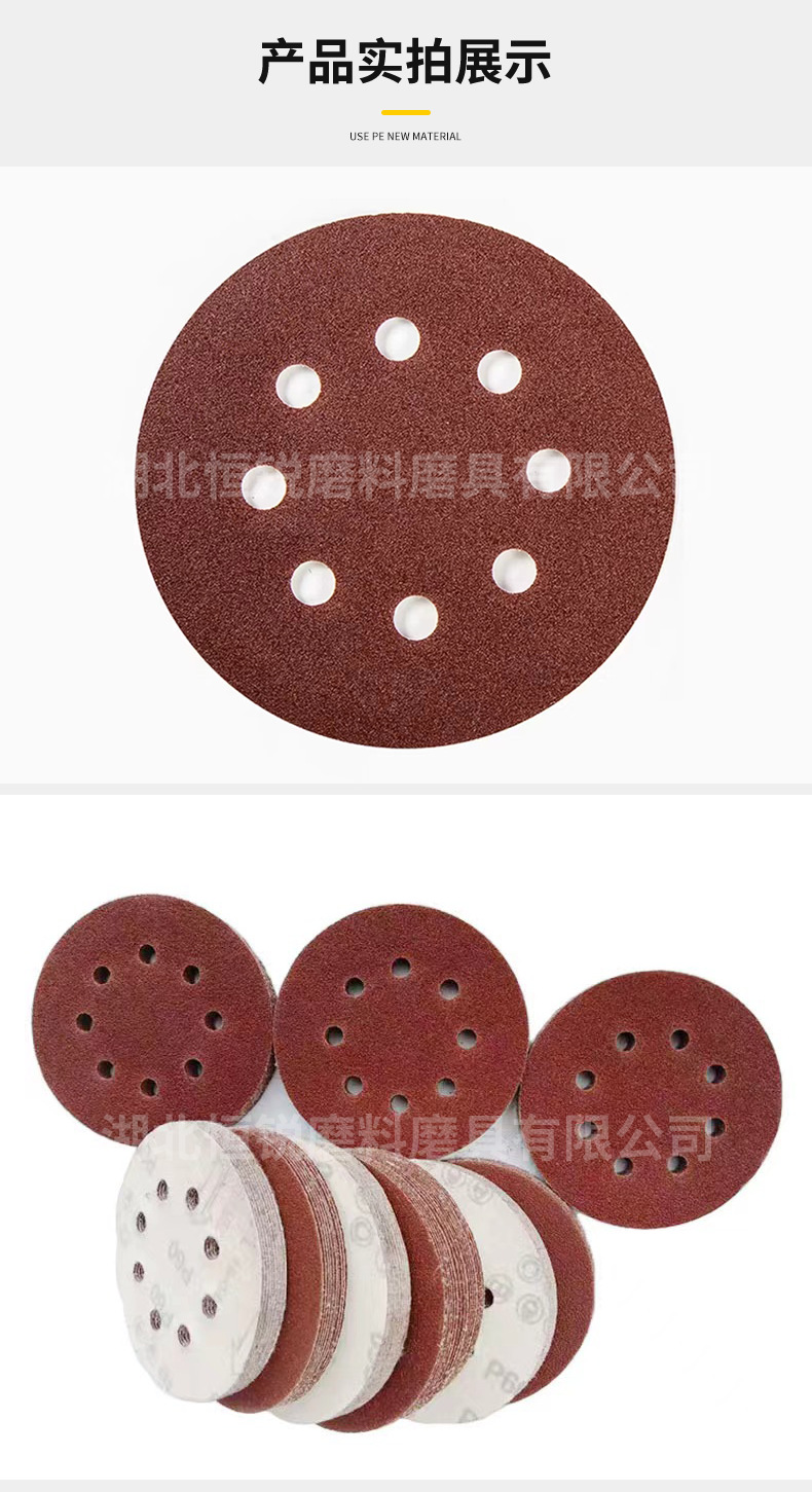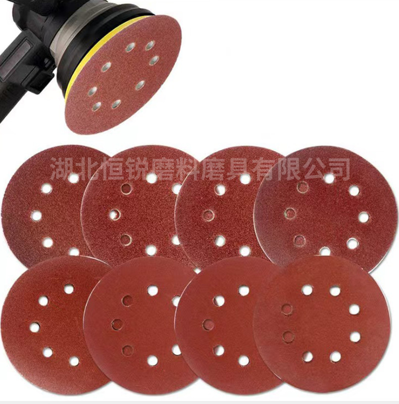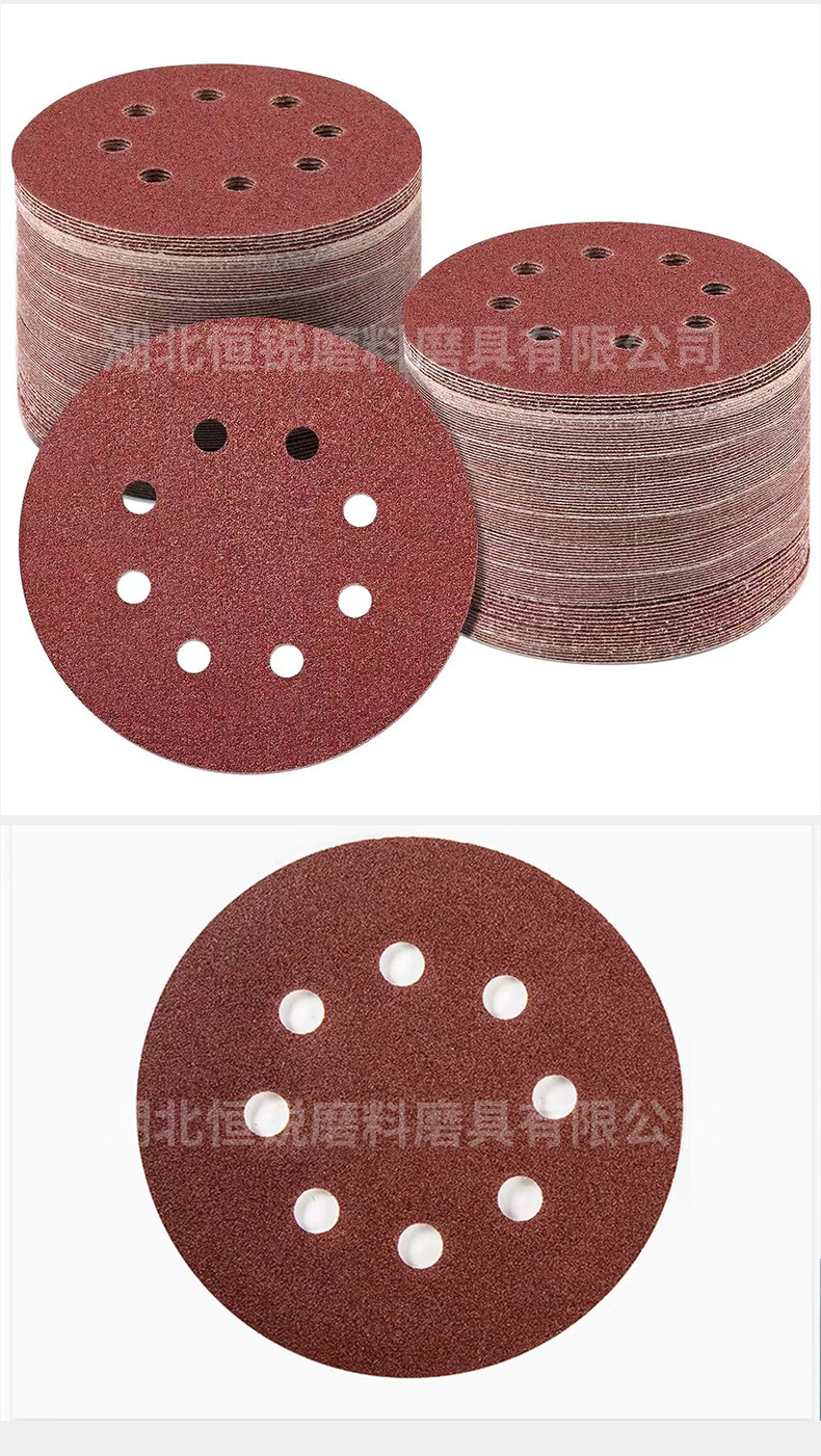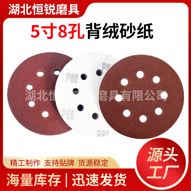 국경 간 폭발 5 인치 8 홀 무리는 사포 공압 건조 분쇄 붉은 모래 알루미나 구멍 125mm 후면 벨벳 디스크 모래