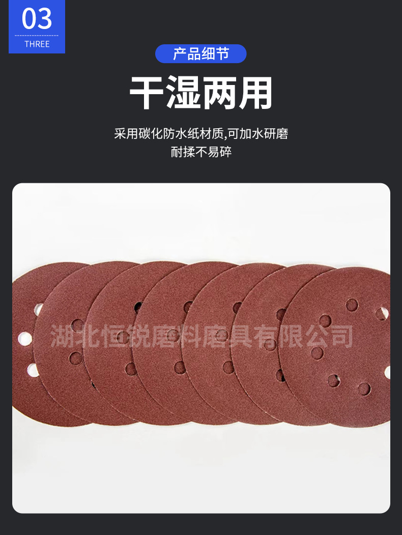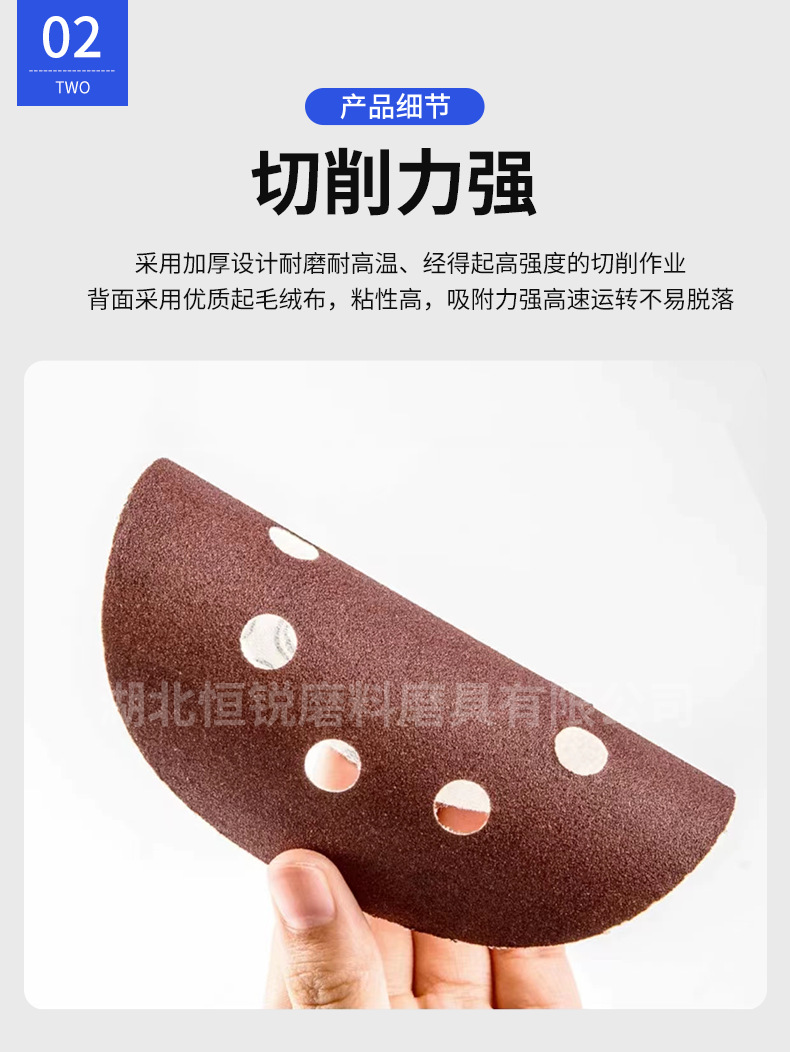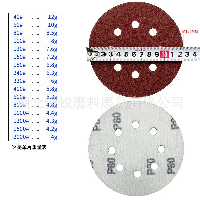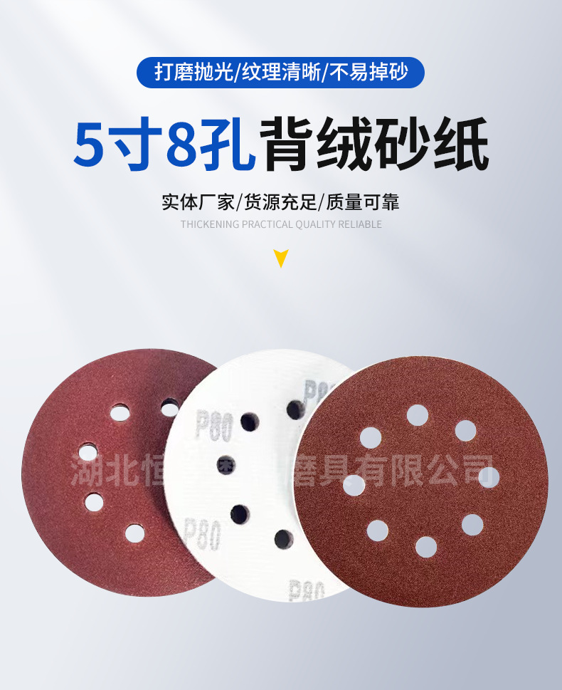 국경 간 폭발 5 인치 8 홀 무리는 사포 공압 건조 분쇄 붉은 모래 알루미나 구멍 125mm 후면 벨벳 디스크 모래