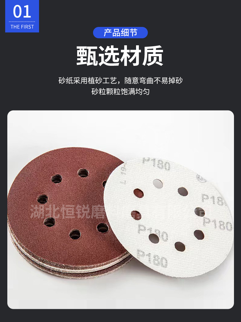 국경 간 폭발 5 인치 8 홀 무리는 사포 공압 건조 분쇄 붉은 모래 알루미나 구멍 125mm 후면 벨벳 디스크 모래스토어 가기