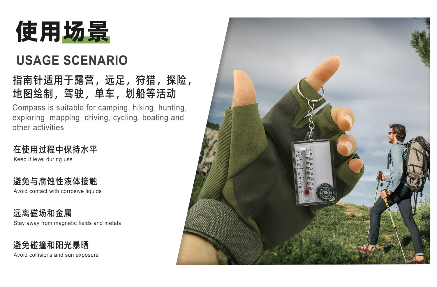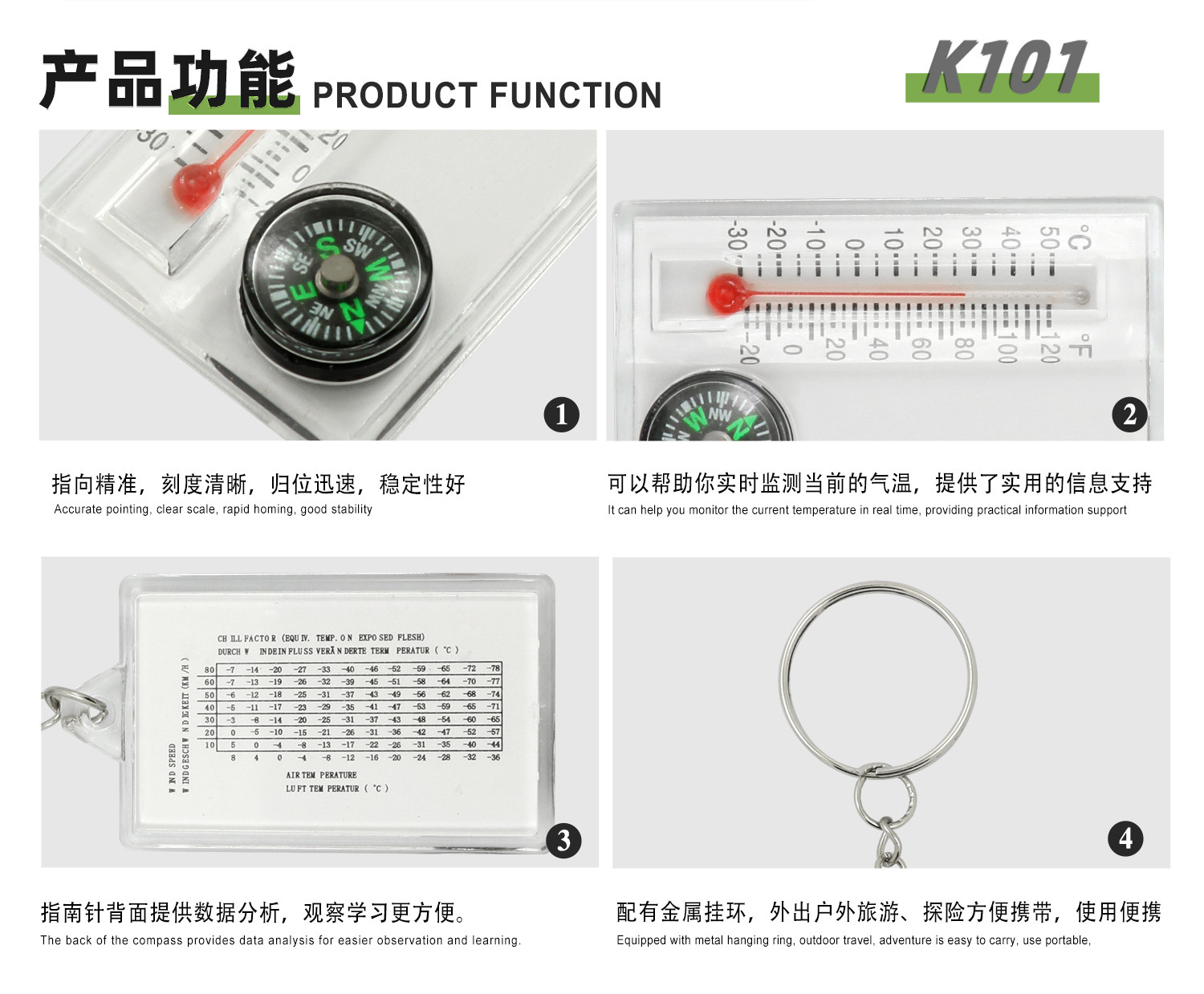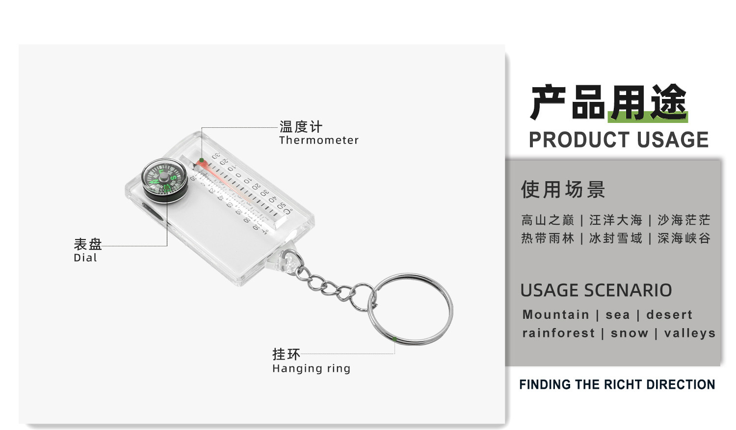 K101 키 체인 나침반 북쪽 바늘 휴대용 미니 등산 버클 야외 온도계 나침반 등산 도매