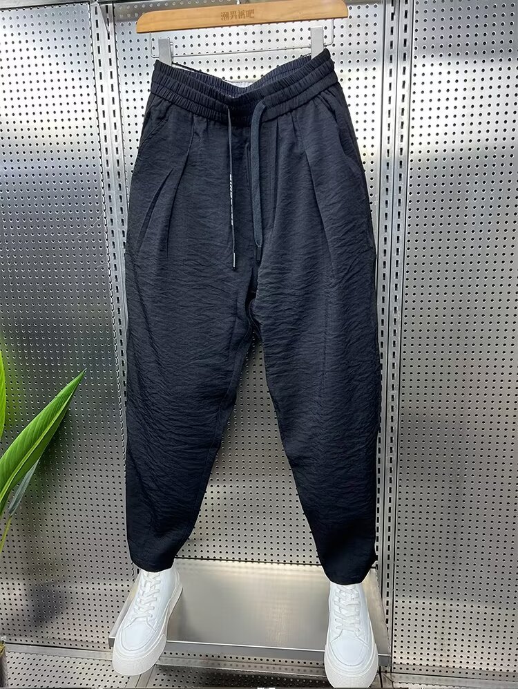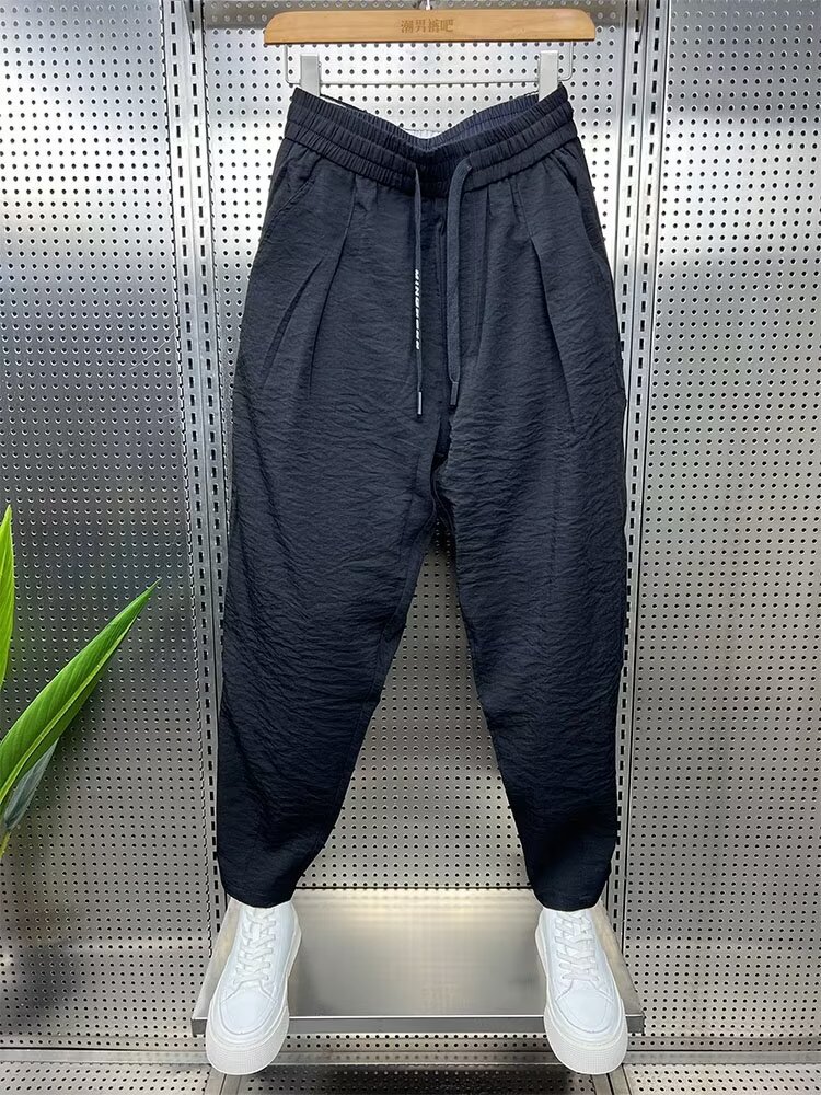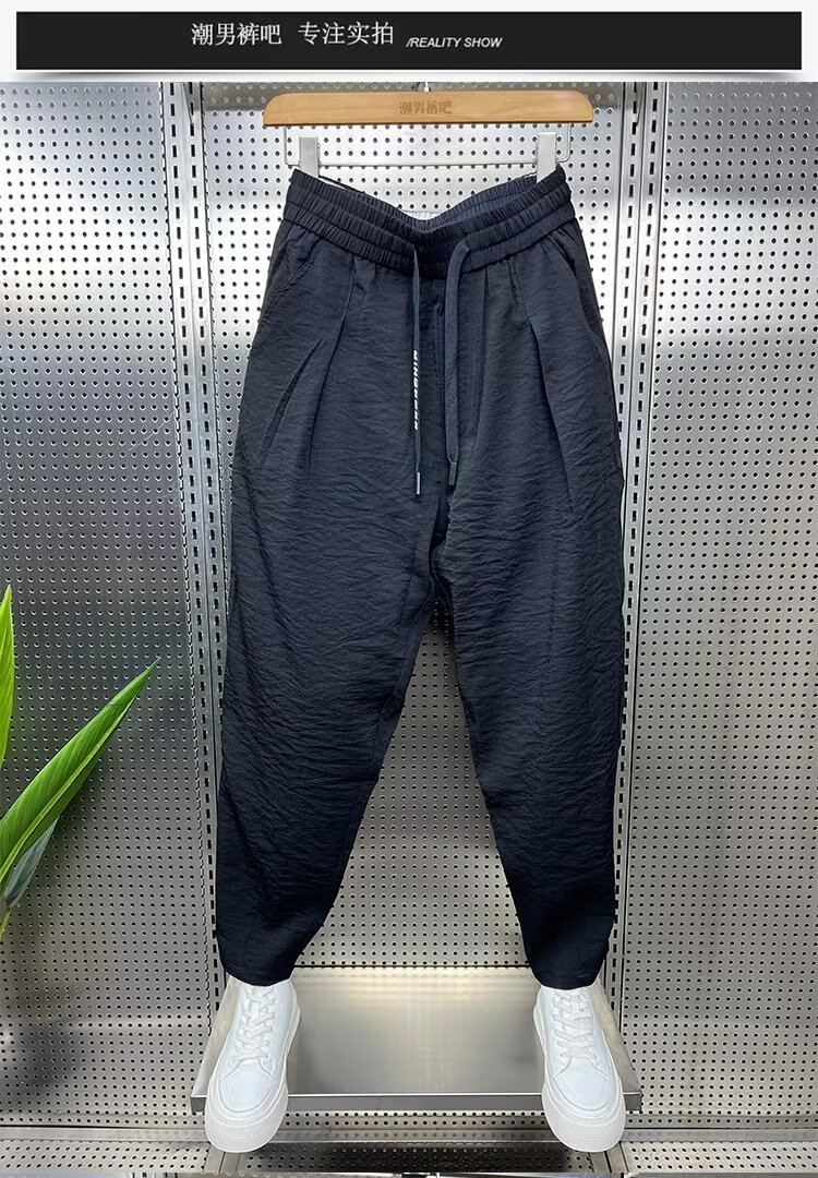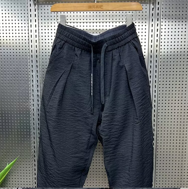 2024 봄과 가을 패션 브랜드 새로운 빠른 건조 통기성 드레이프 캐주얼 바지 남성용 트렌디 한 느슨한 주름진 할란 무스토어 가기