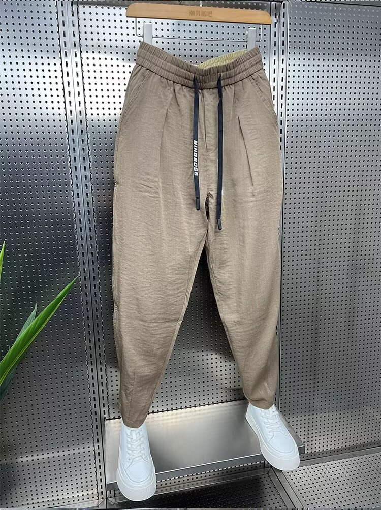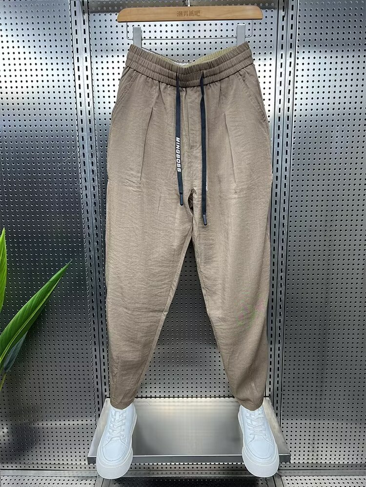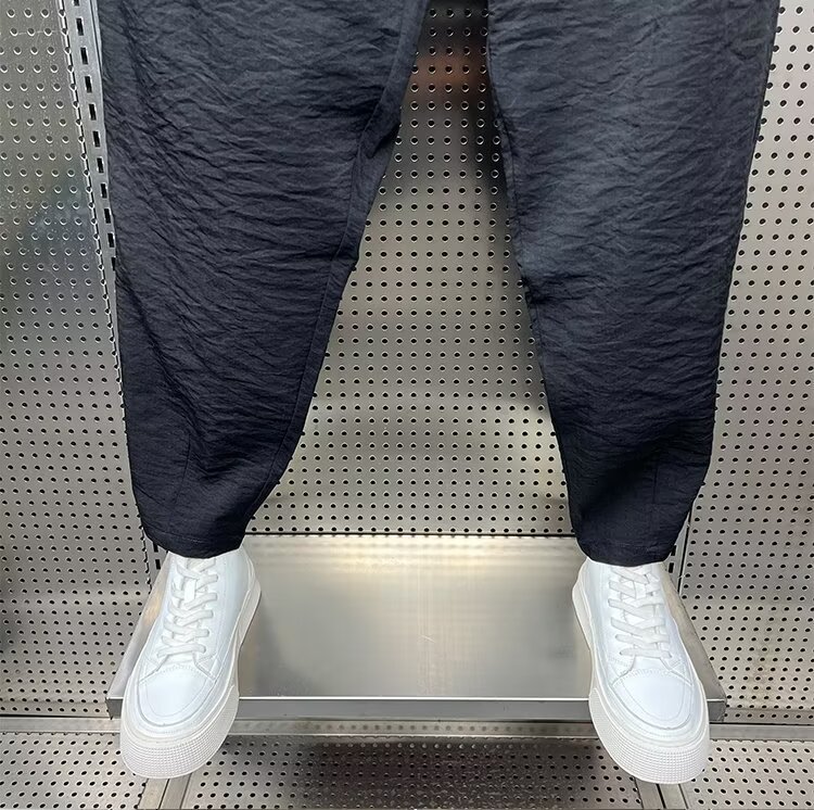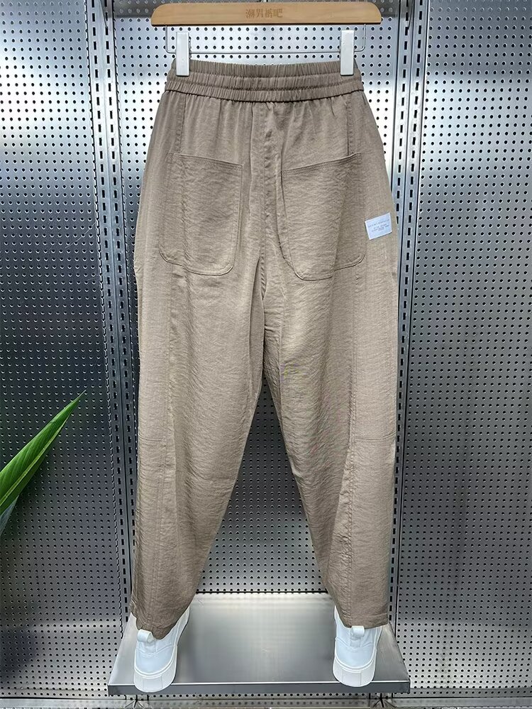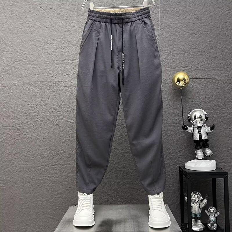 2024 봄과 가을 패션 브랜드 새로운 빠른 건조 통기성 드레이프 캐주얼 바지 남성용 트렌디 한 느슨한 주름진 할란 무스토어 가기