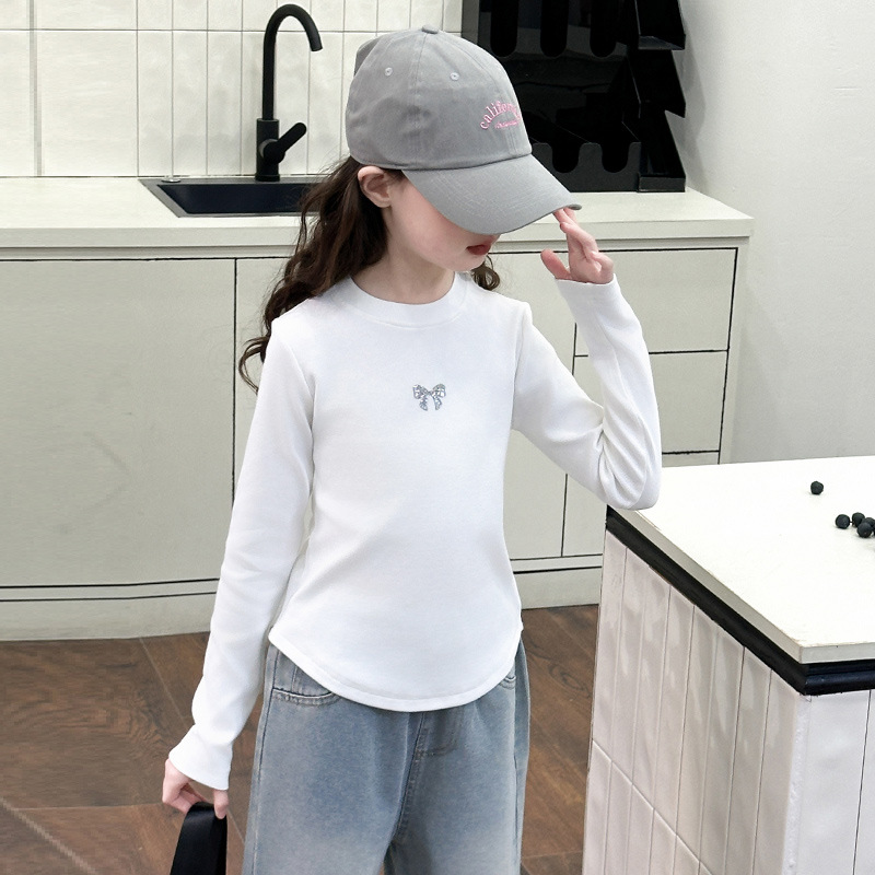 소녀들의 봄 긴팔 티셔츠 걸스 슬림핏 쇼트탑 2025 신소녀들의 면베이스 셔츠 화이트