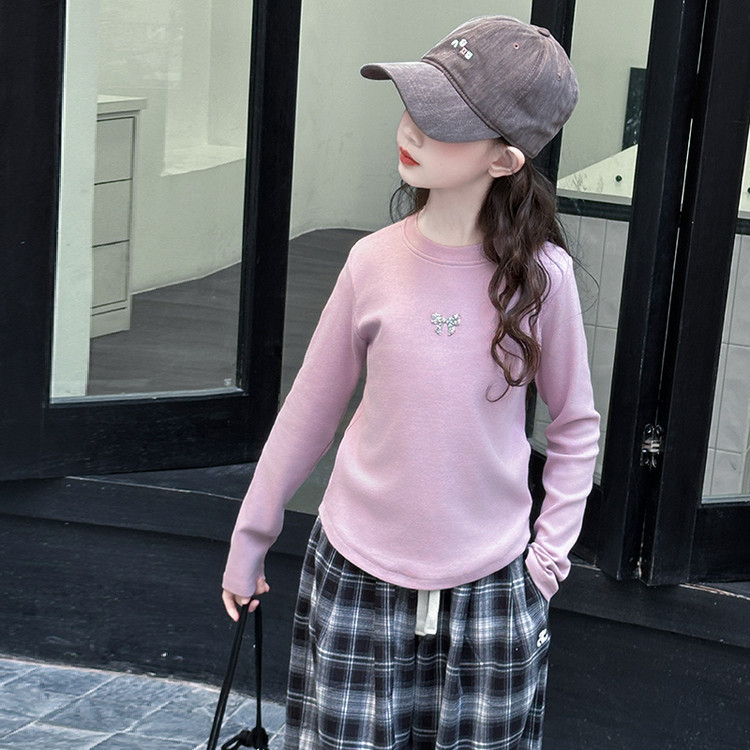 소녀들의 봄 긴팔 티셔츠 걸스 슬림핏 쇼트탑 2025 신소녀들의 면베이스 셔츠 화이트스토어 가기