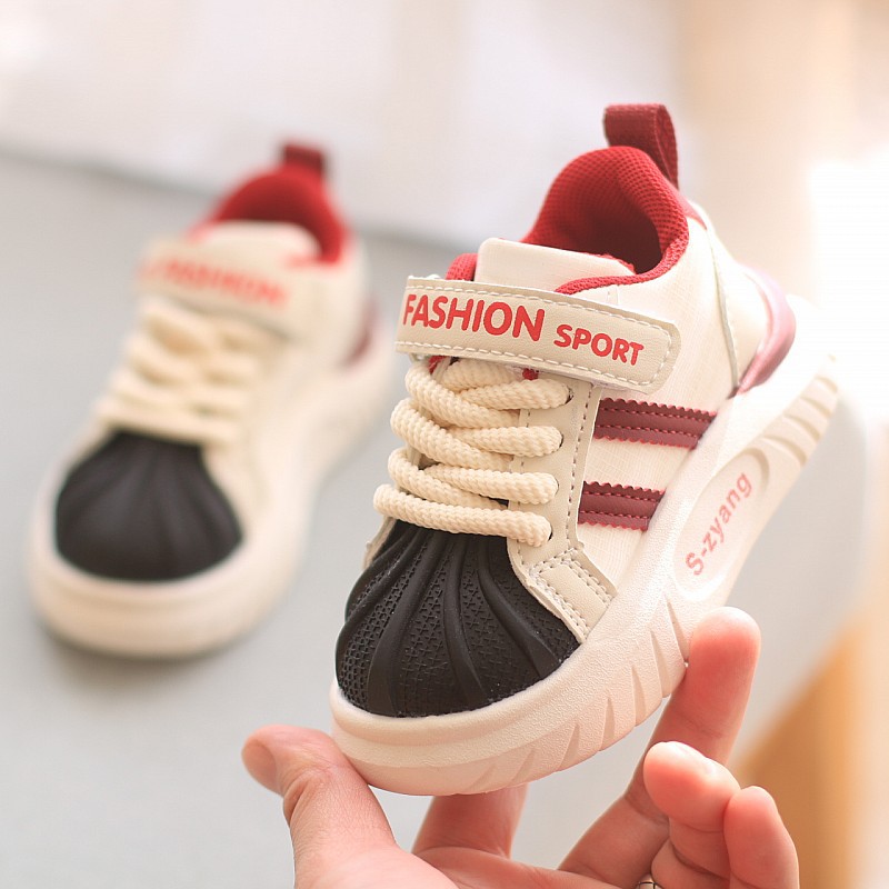어린이 신발 소년 쉘 헤드 봄과 가을 부드러운 밑바닥 미끄럼 방지 보드 신발 아기 여성의 가능한 신발 캐주얼 신발 가죽 표면 방수