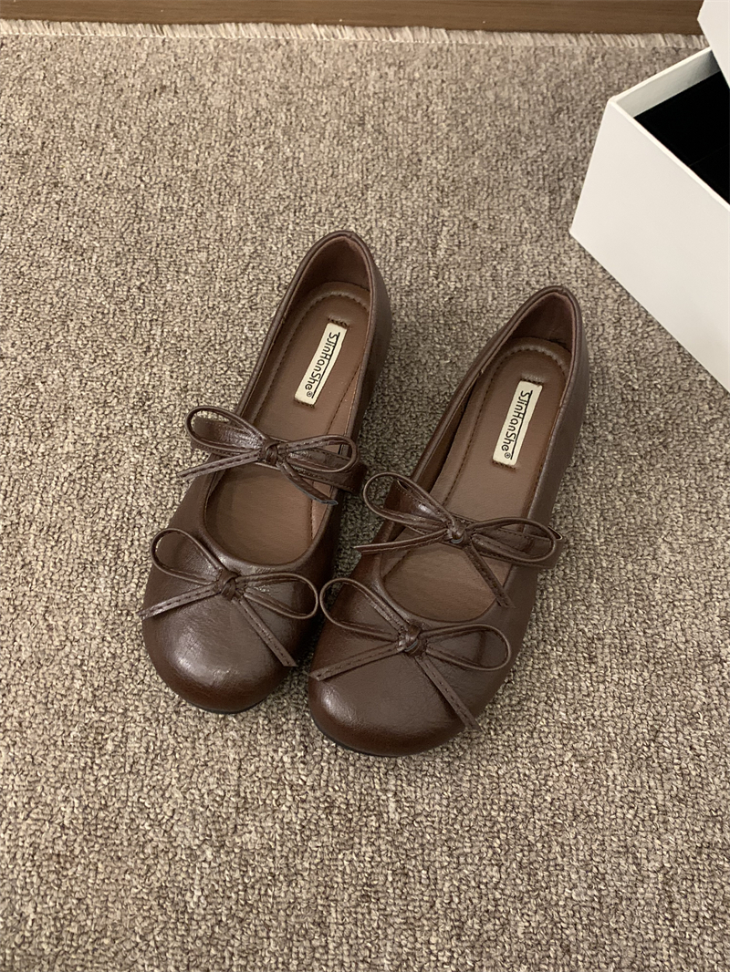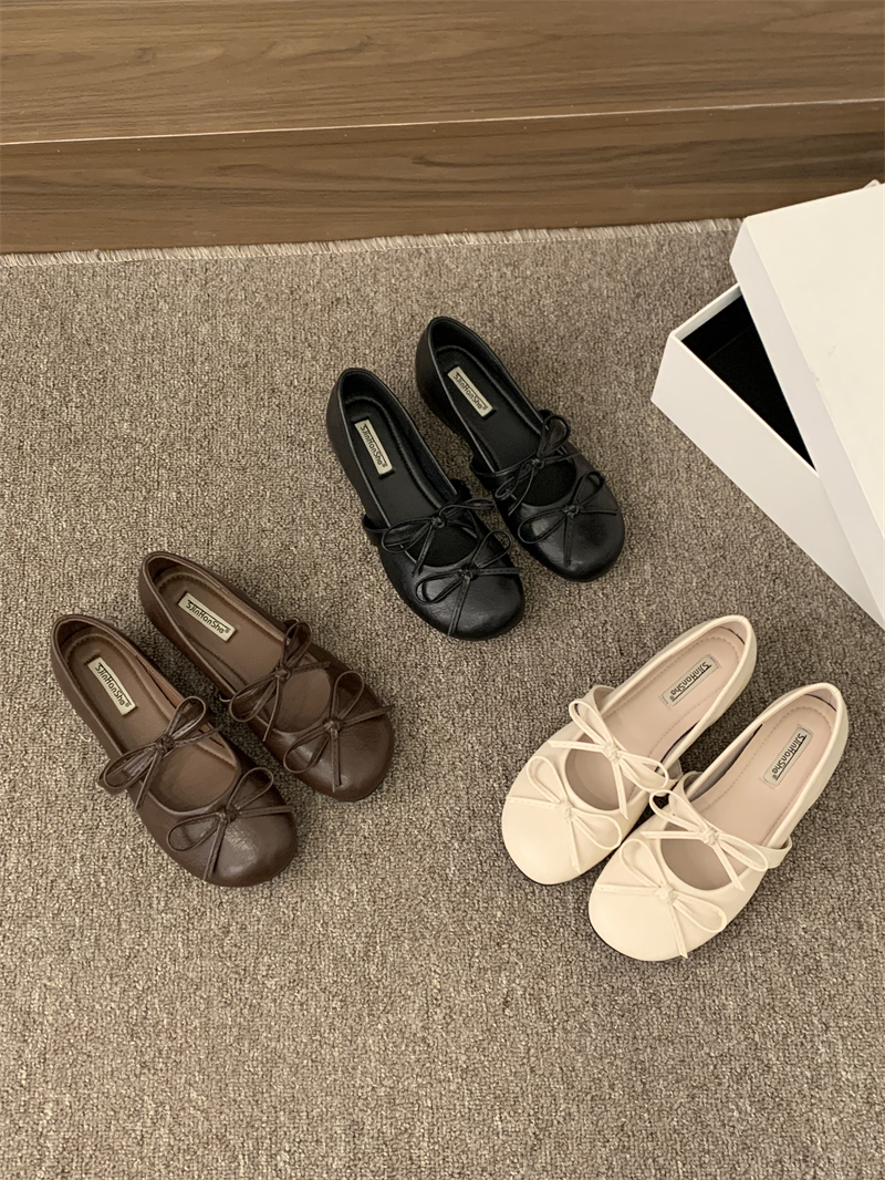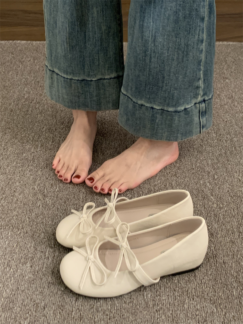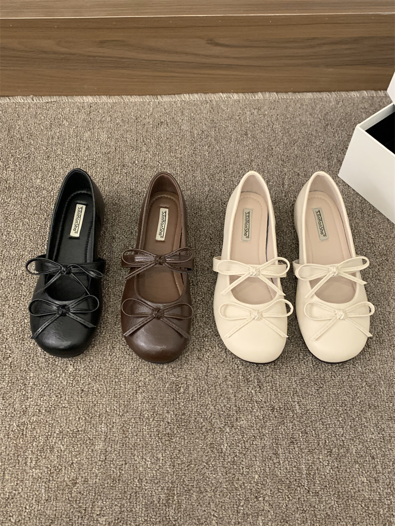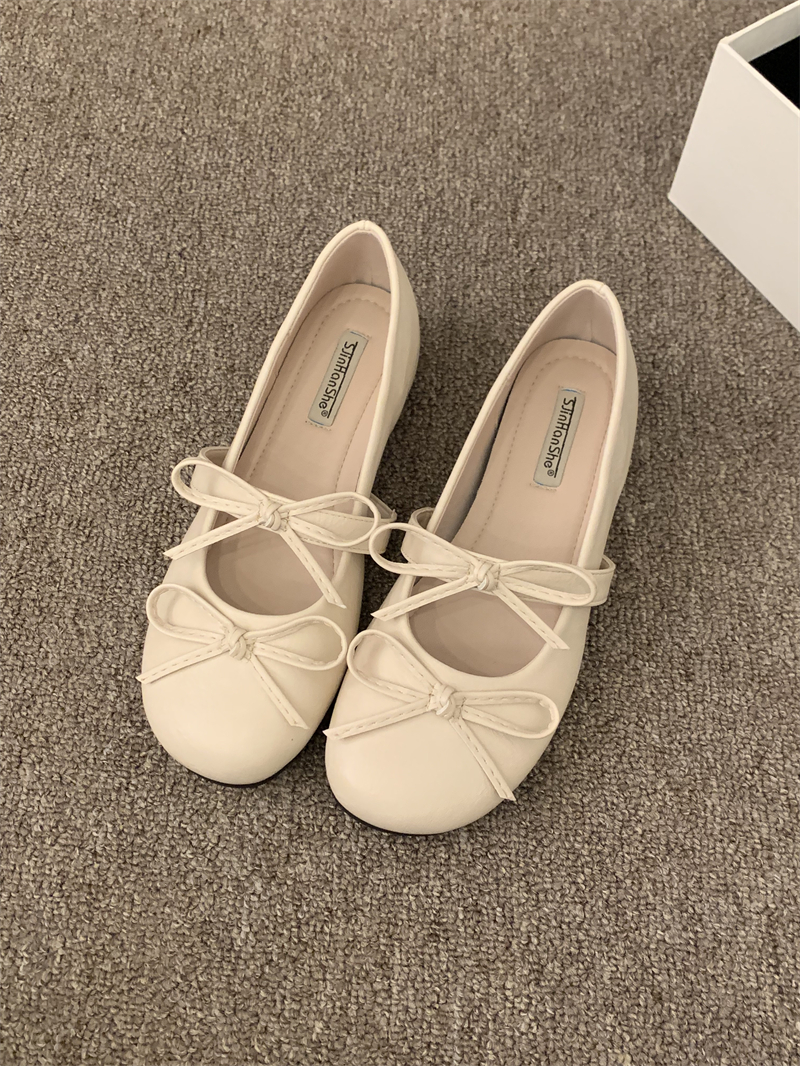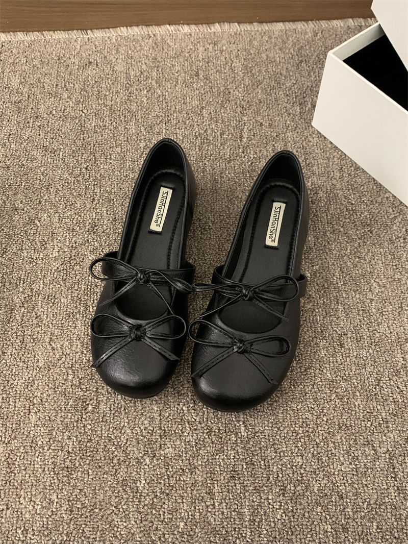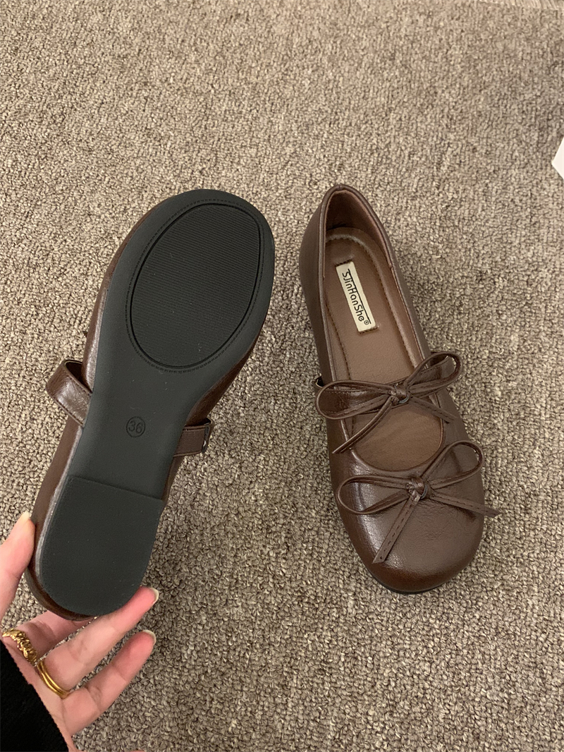 페어리 라운드 헤드 내부 강화 얕은 입 싱글 레이어 신발 2025 봄과 가을 새로운 연예인 활 라운드 헤드 부드러운 콩 신발