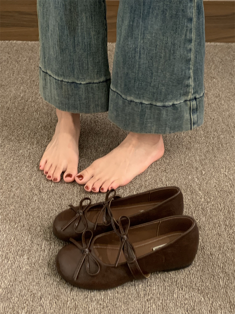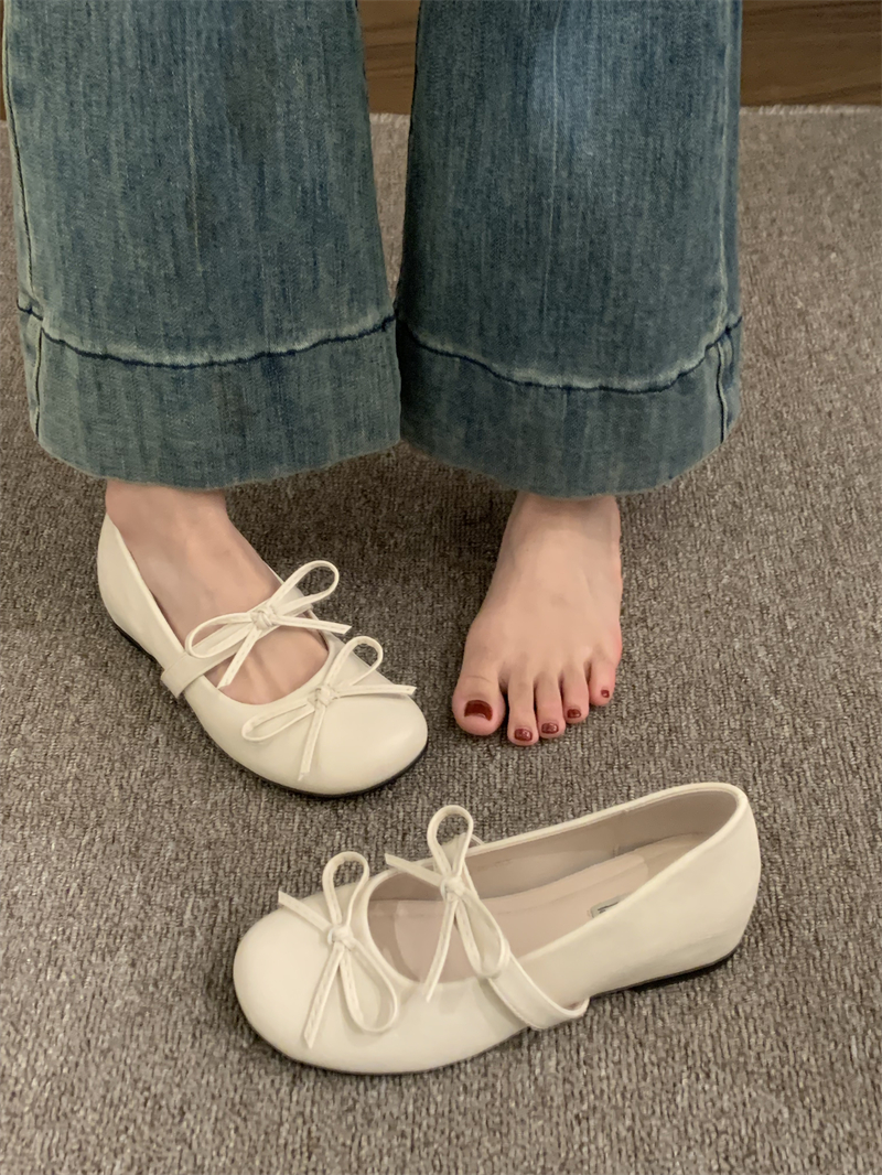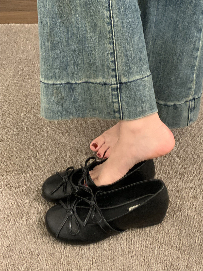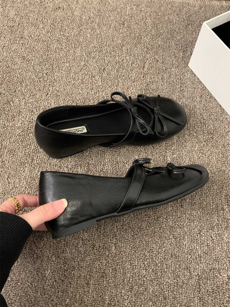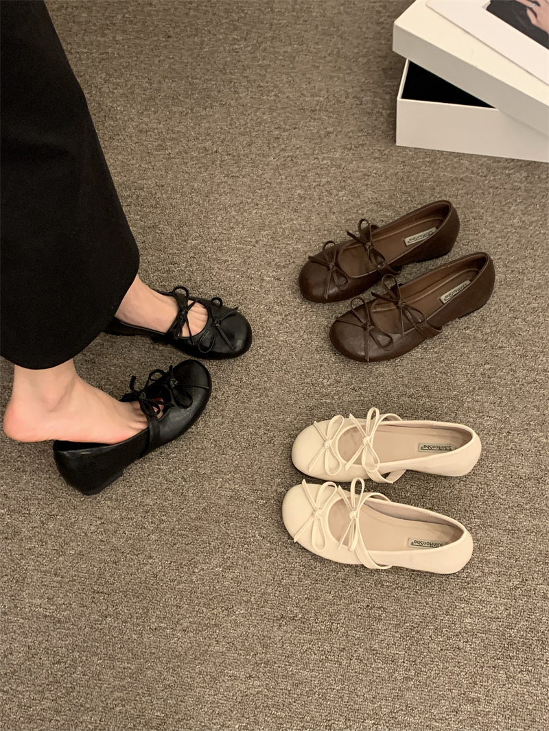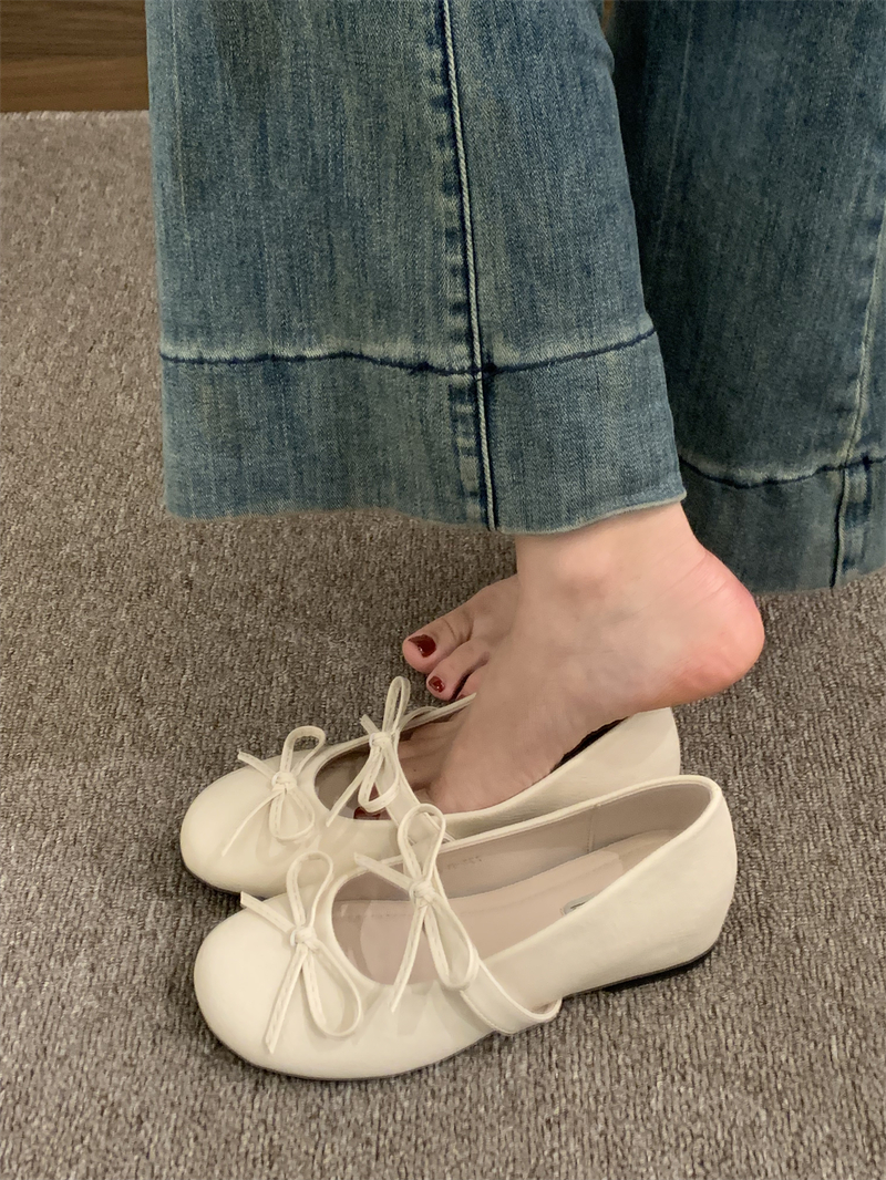 페어리 라운드 헤드 내부 강화 얕은 입 싱글 레이어 신발 2025 봄과 가을 새로운 연예인 활 라운드 헤드 부드러운 콩 신발