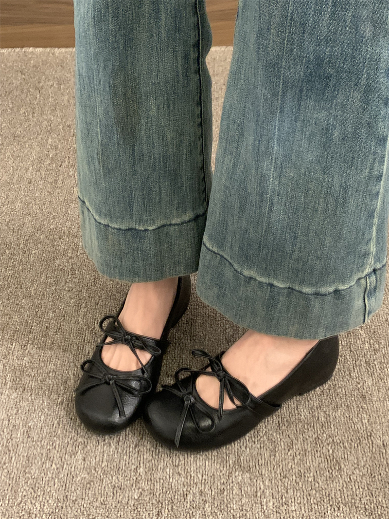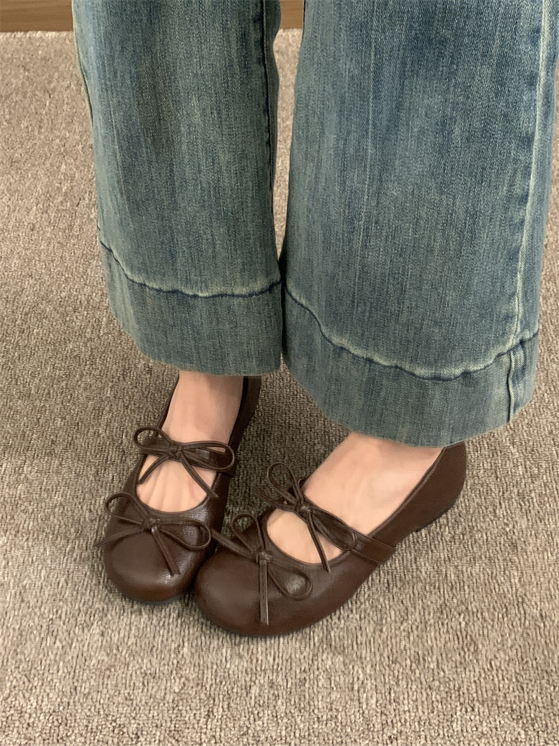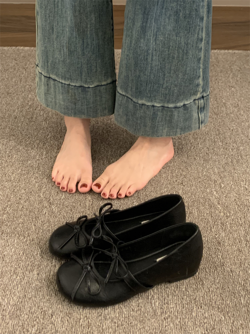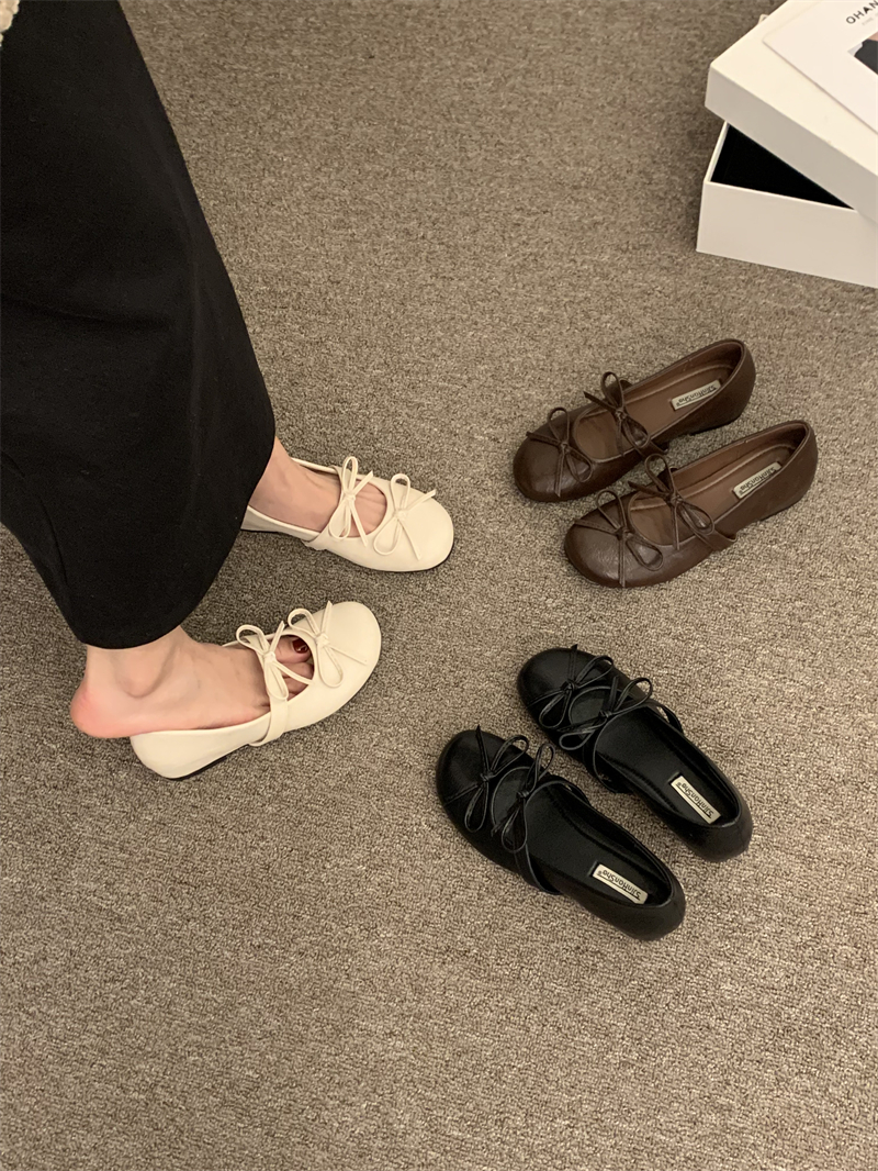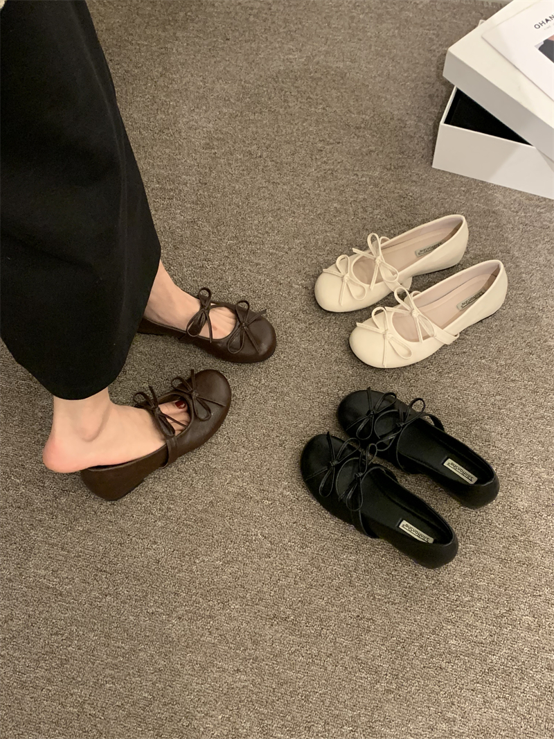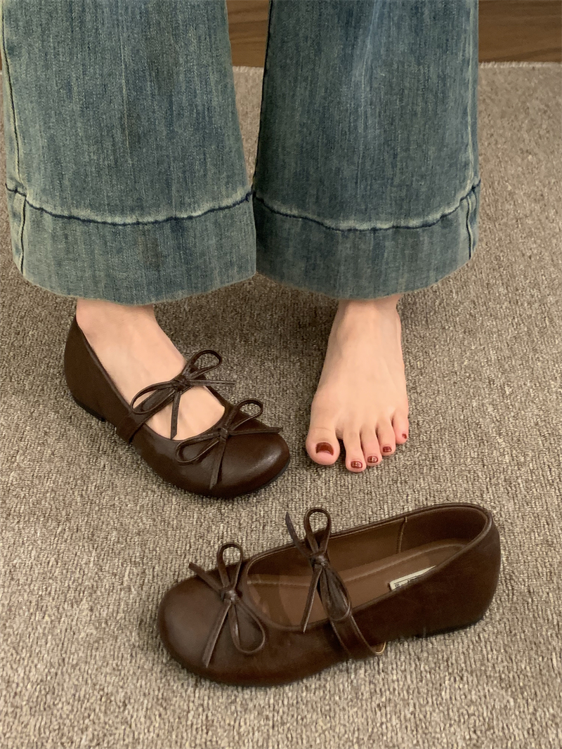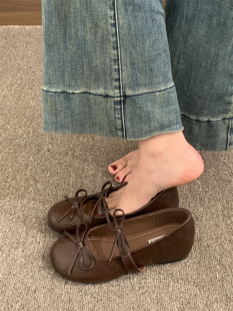 페어리 라운드 헤드 내부 강화 얕은 입 싱글 레이어 신발 2025 봄과 가을 새로운 연예인 활 라운드 헤드 부드러운 콩 신발