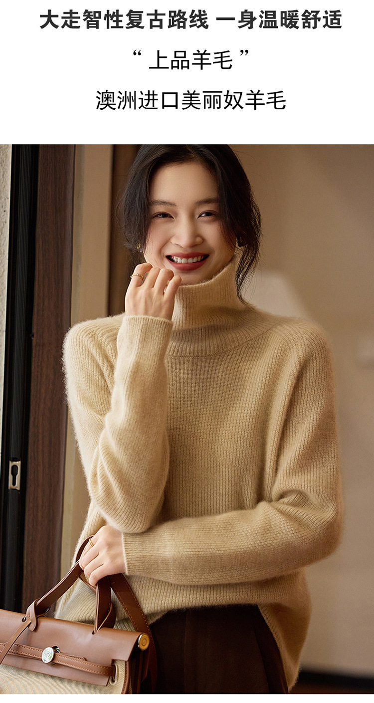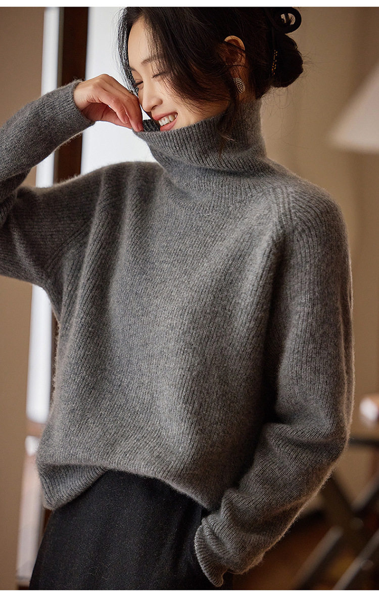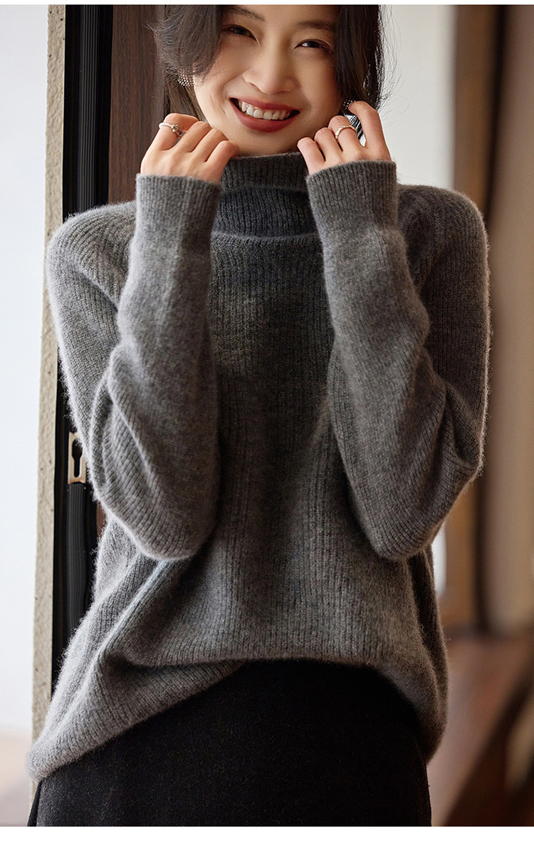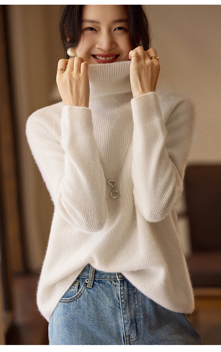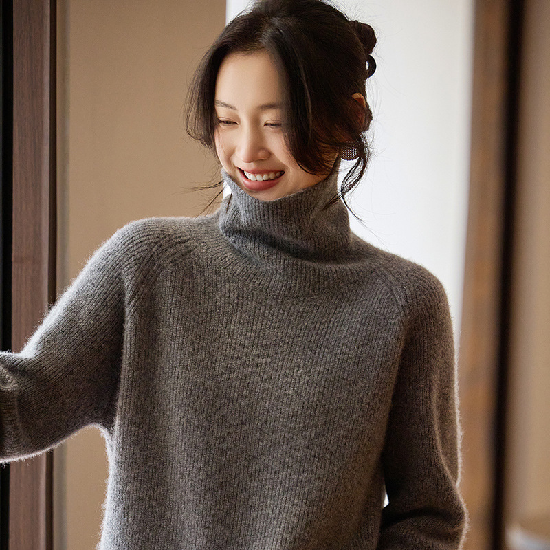 순수한 양모 터틀넥 스웨터 느슨한 풀오버 솔리드 컬러 드로우 스트립 베이스 레이어 스웨터 여성 100 울스토어 가기
