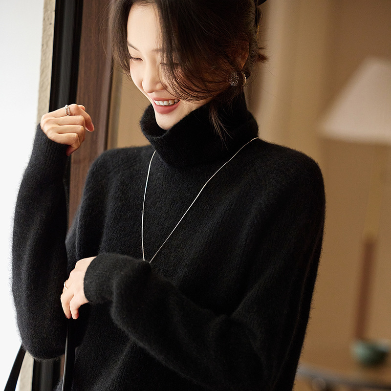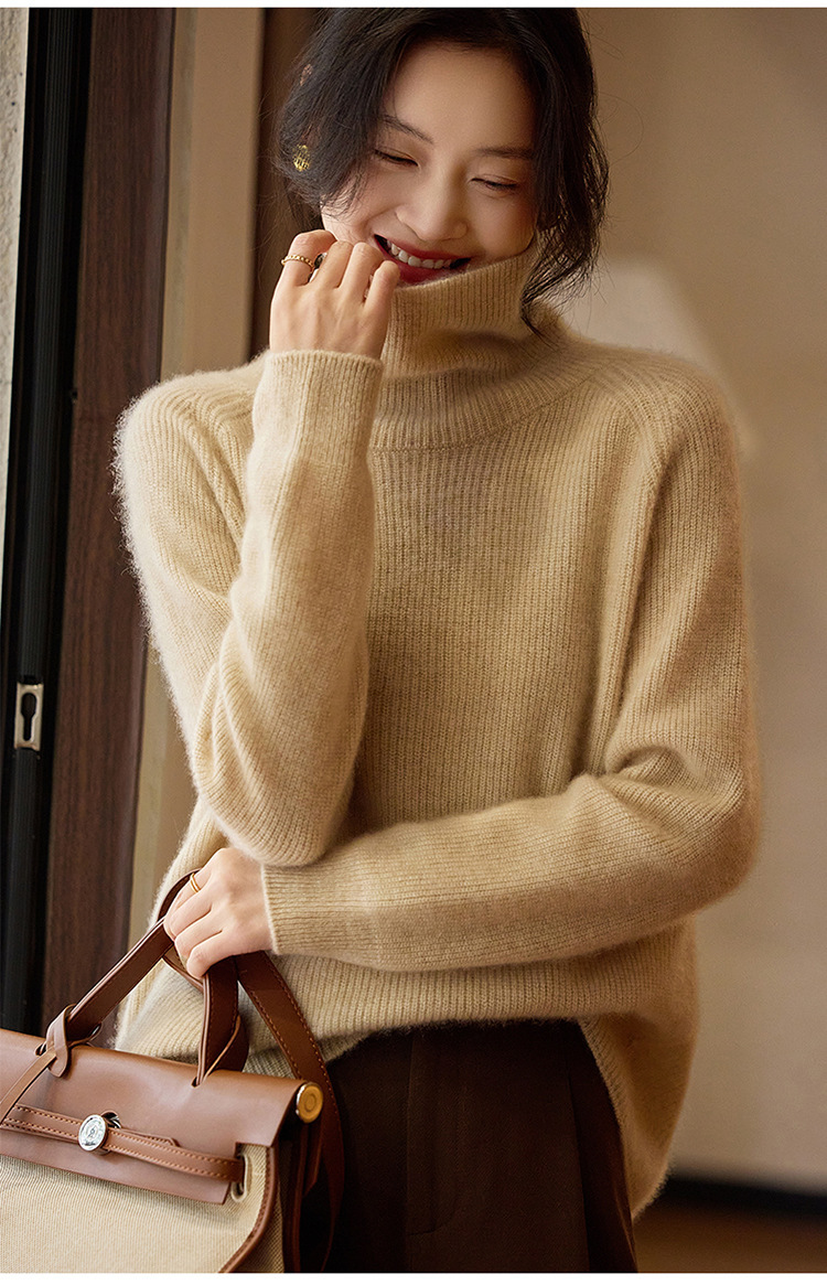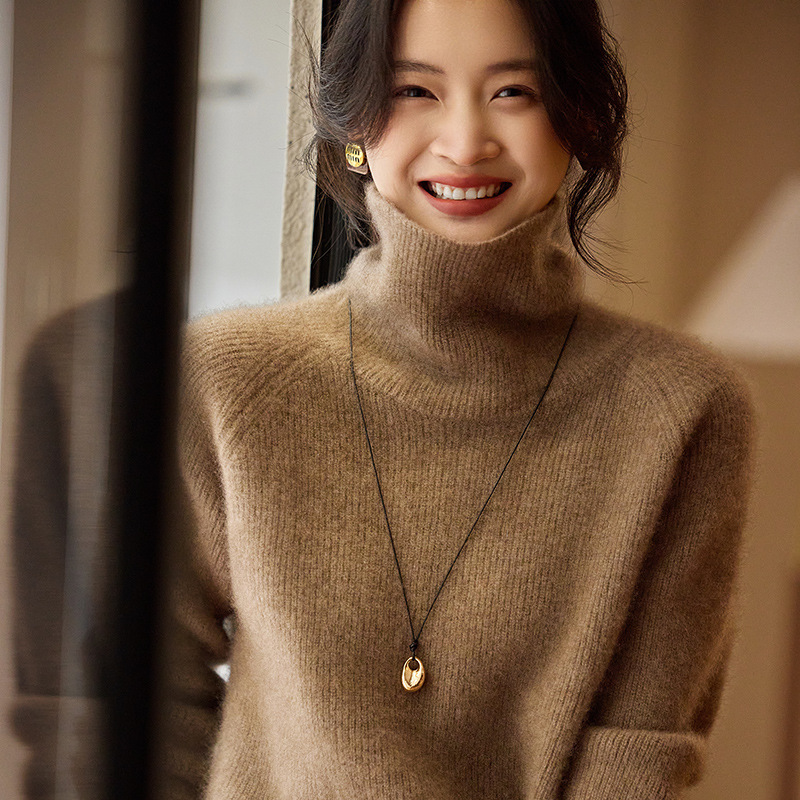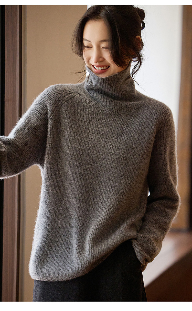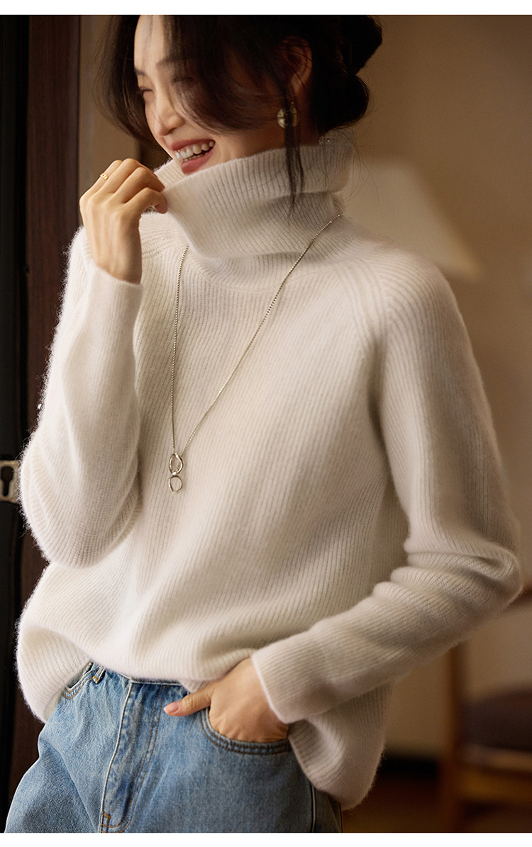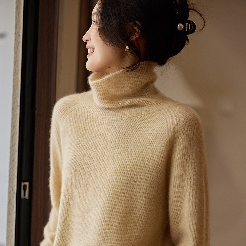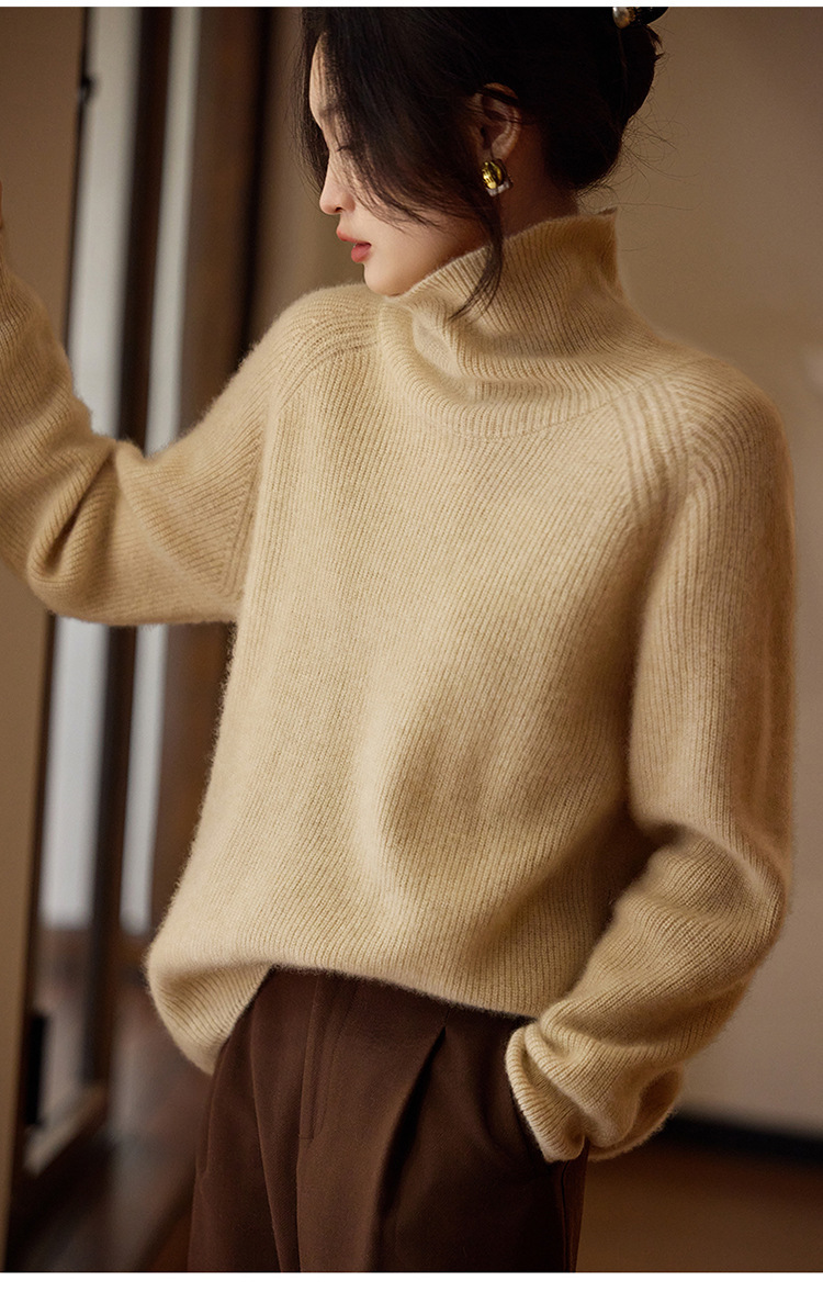 순수한 양모 터틀넥 스웨터 느슨한 풀오버 솔리드 컬러 드로우 스트립 베이스 레이어 스웨터 여성 100 울스토어 가기
