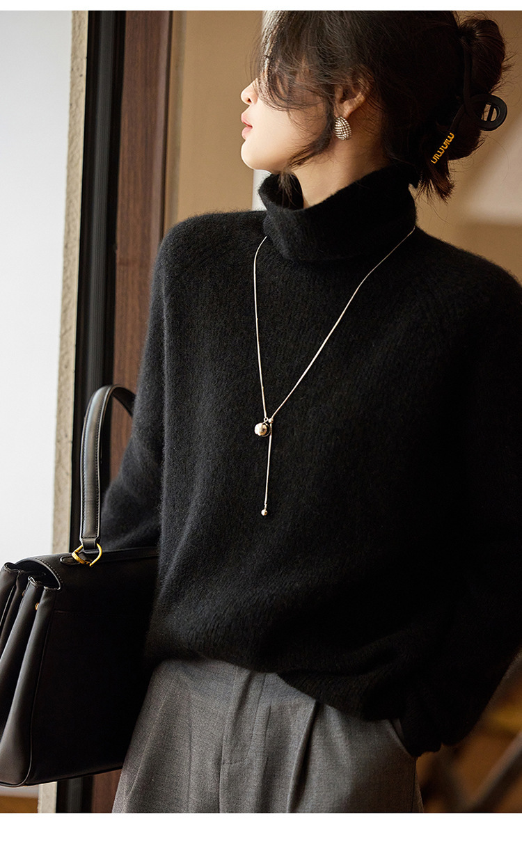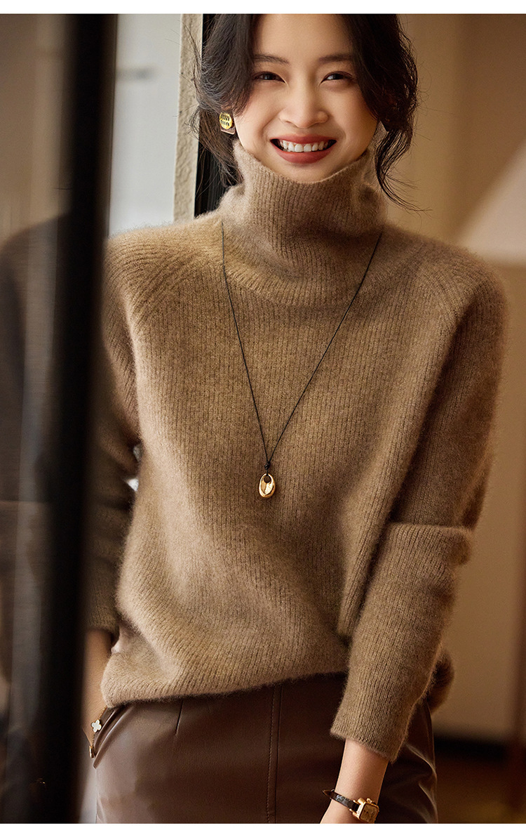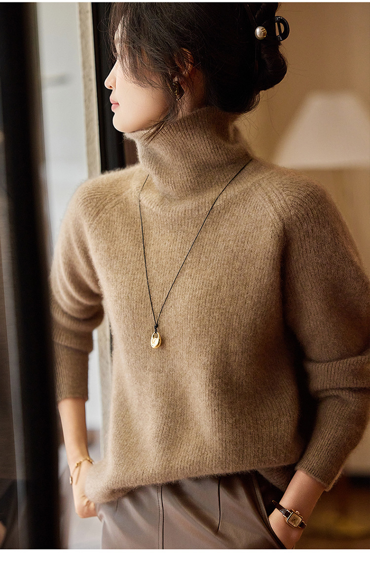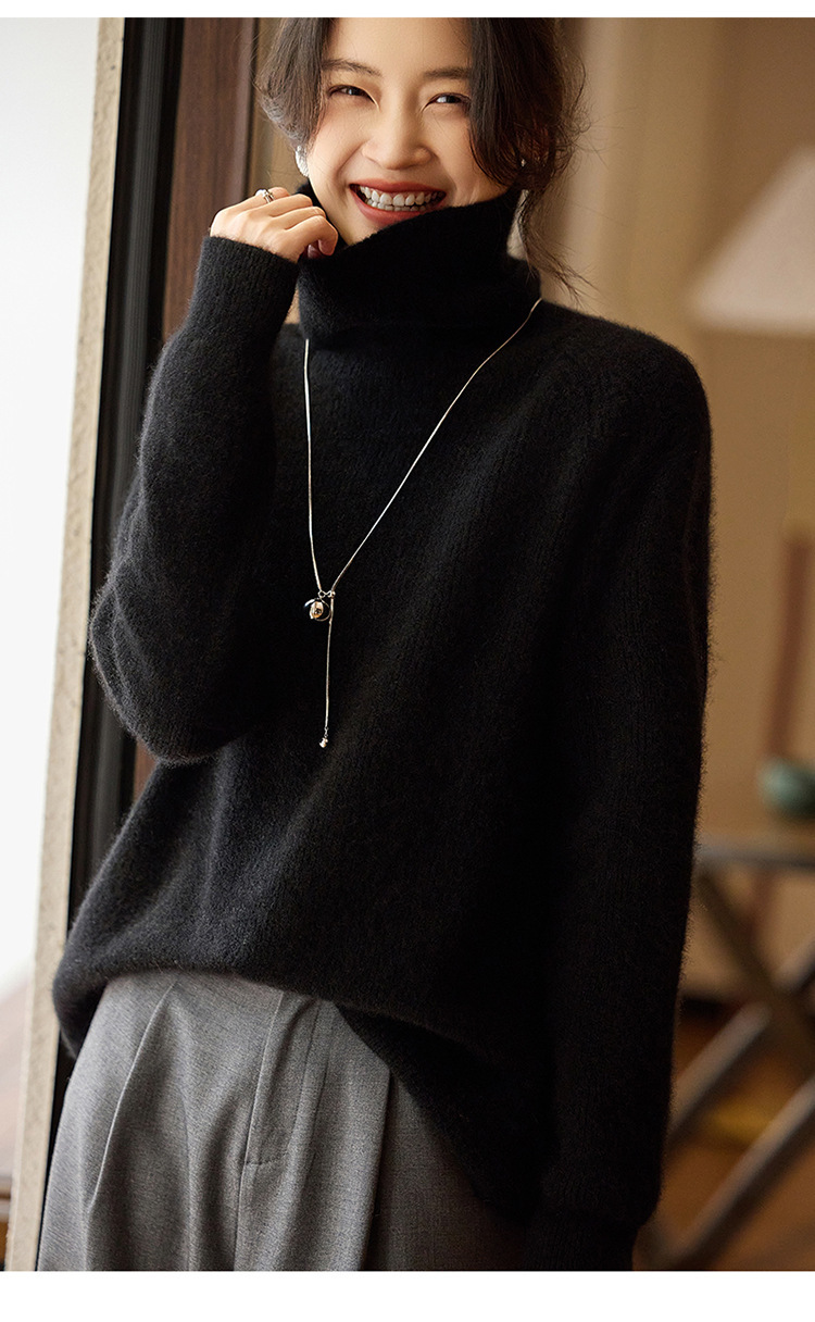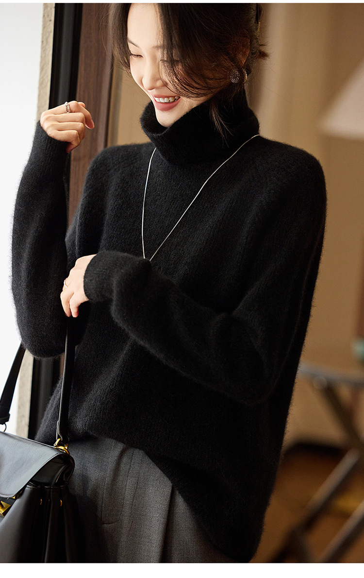 순수한 양모 터틀넥 스웨터 느슨한 풀오버 솔리드 컬러 드로우 스트립 베이스 레이어 스웨터 여성 100 울스토어 가기