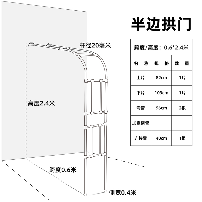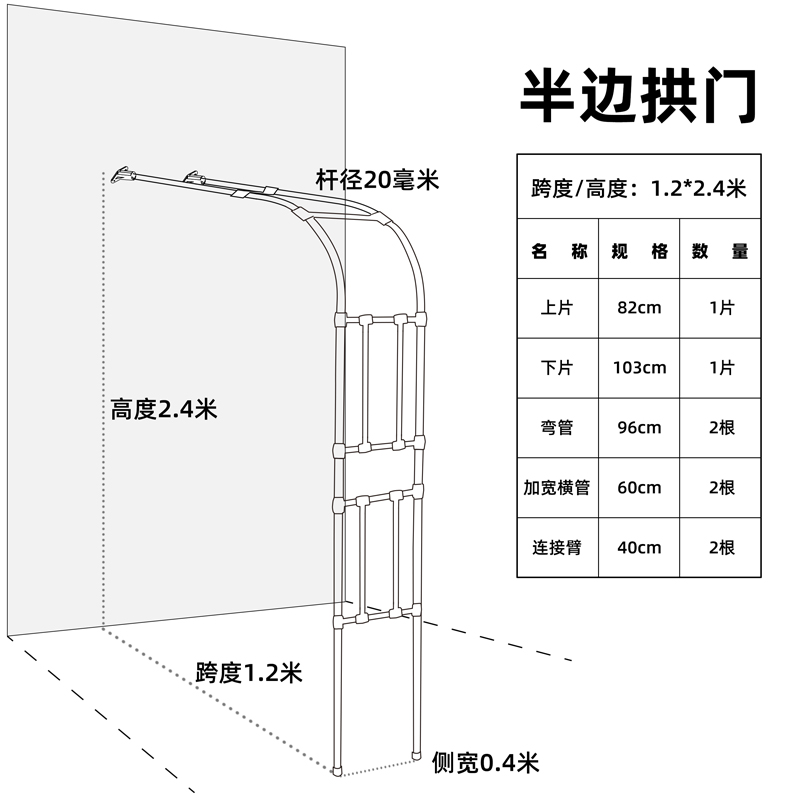 • 블랙 스팬 2.1m × 2.4m 높이*가로폭 40cm 하프아치 10년 보증