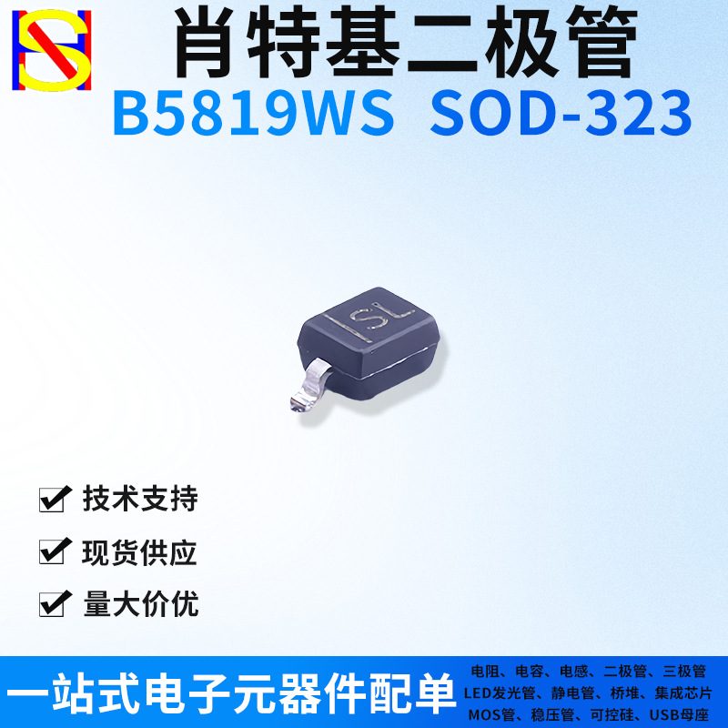 B5819WS 贴片肖特基二极管SOD-323 1N5819一站式电子元器件配单SL