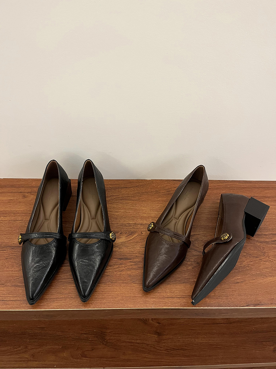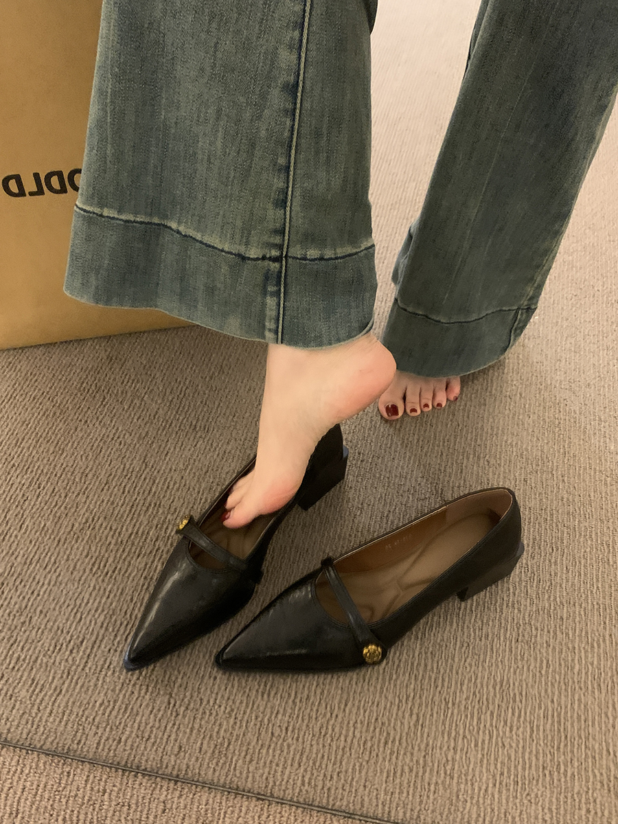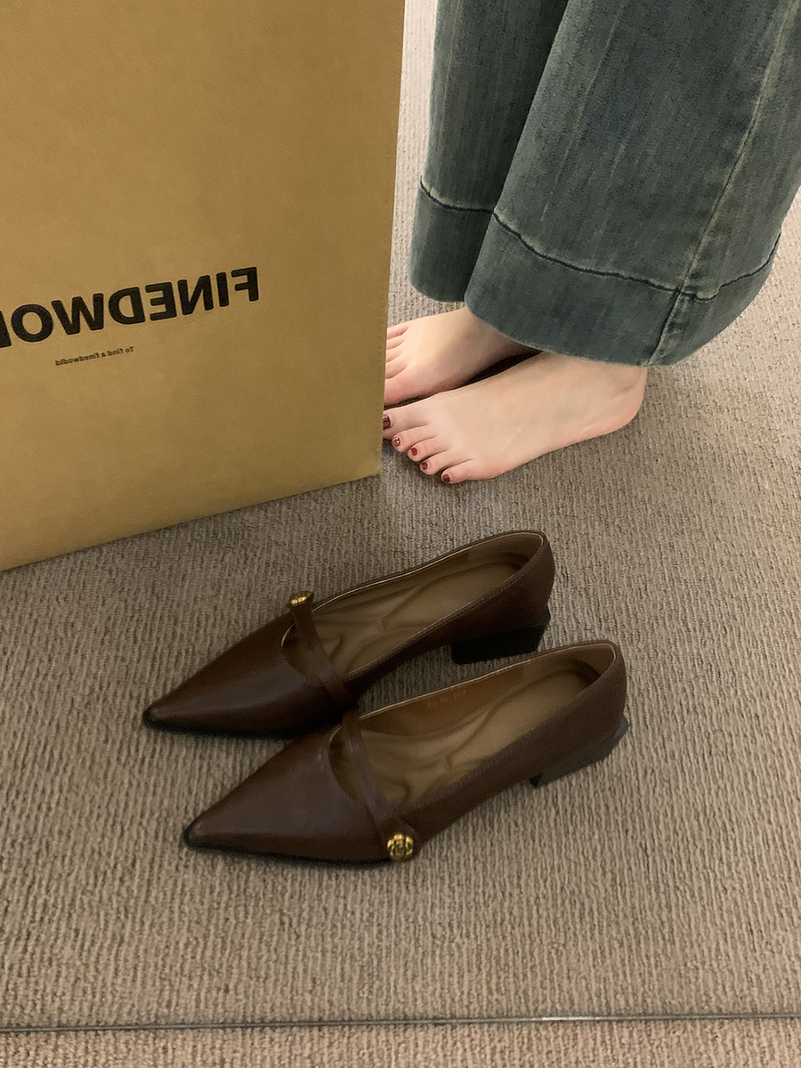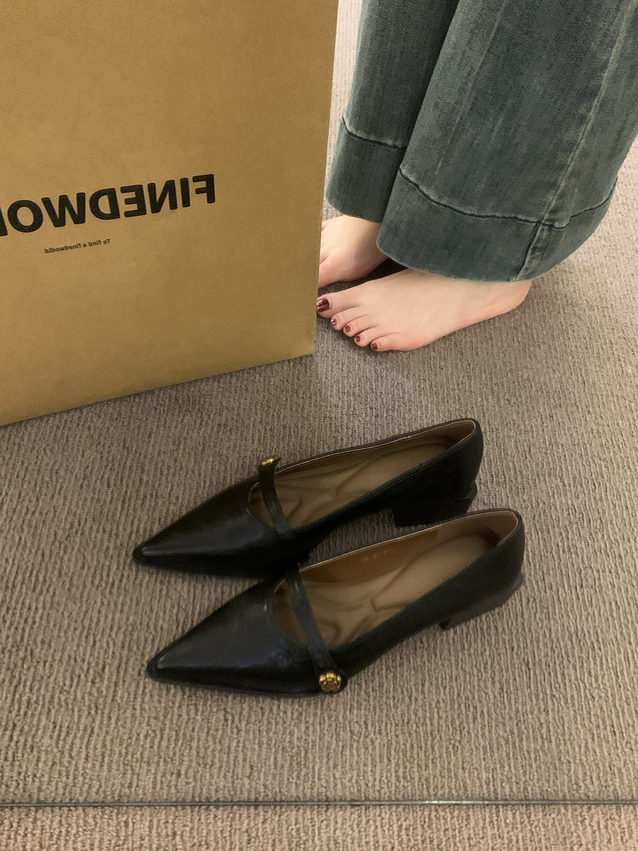 뾰족한 발가락 통근 얕은 입 싱글 레이어 신발 여성 봄과 가을 2025 프랑스 스타일 레트로 심야 청키 힐 패션 메리 제인 작은 가죽 신발스토어 가기