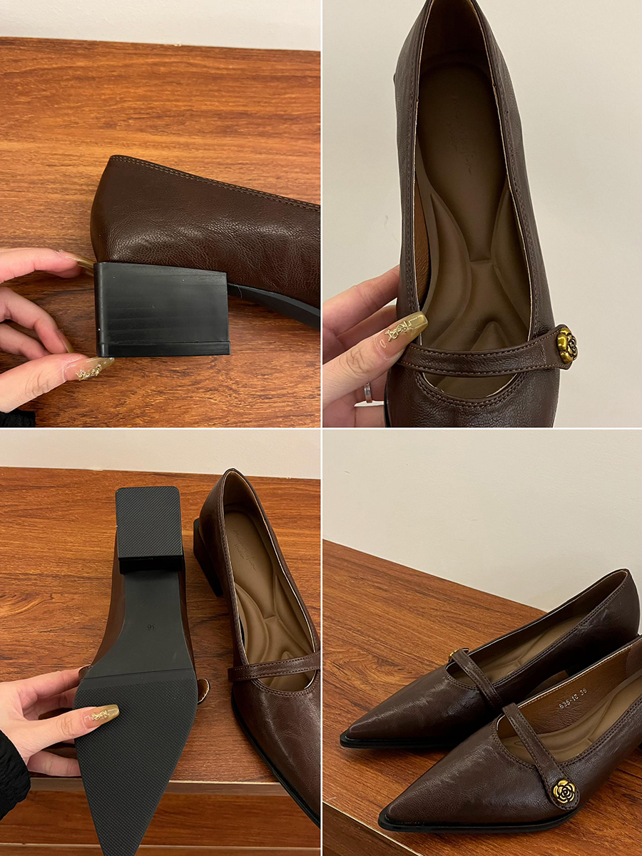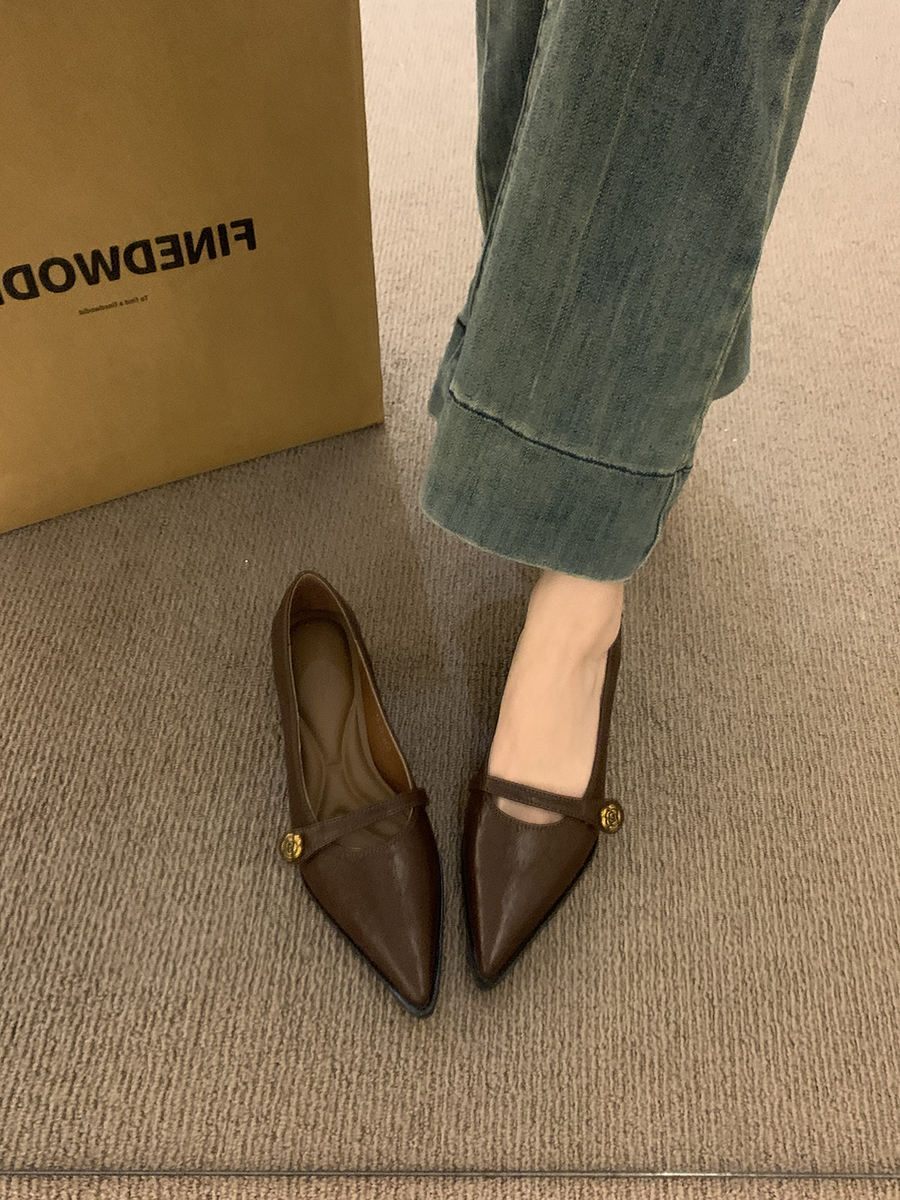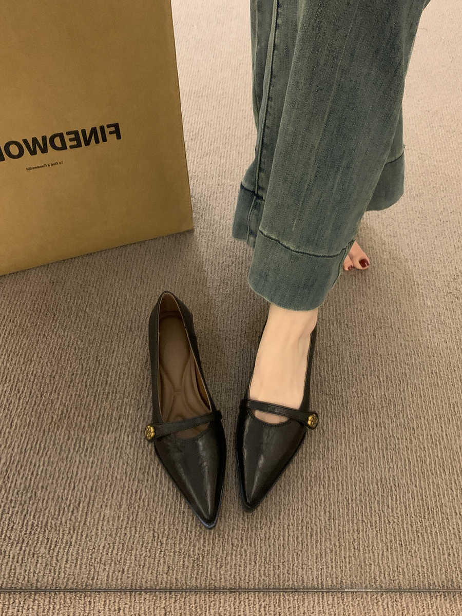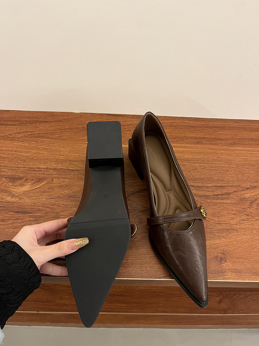 뾰족한 발가락 통근 얕은 입 싱글 레이어 신발 여성 봄과 가을 2025 프랑스 스타일 레트로 심야 청키 힐 패션 메리 제인 작은 가죽 신발스토어 가기