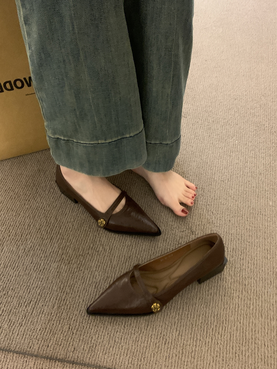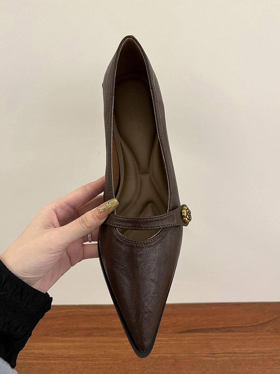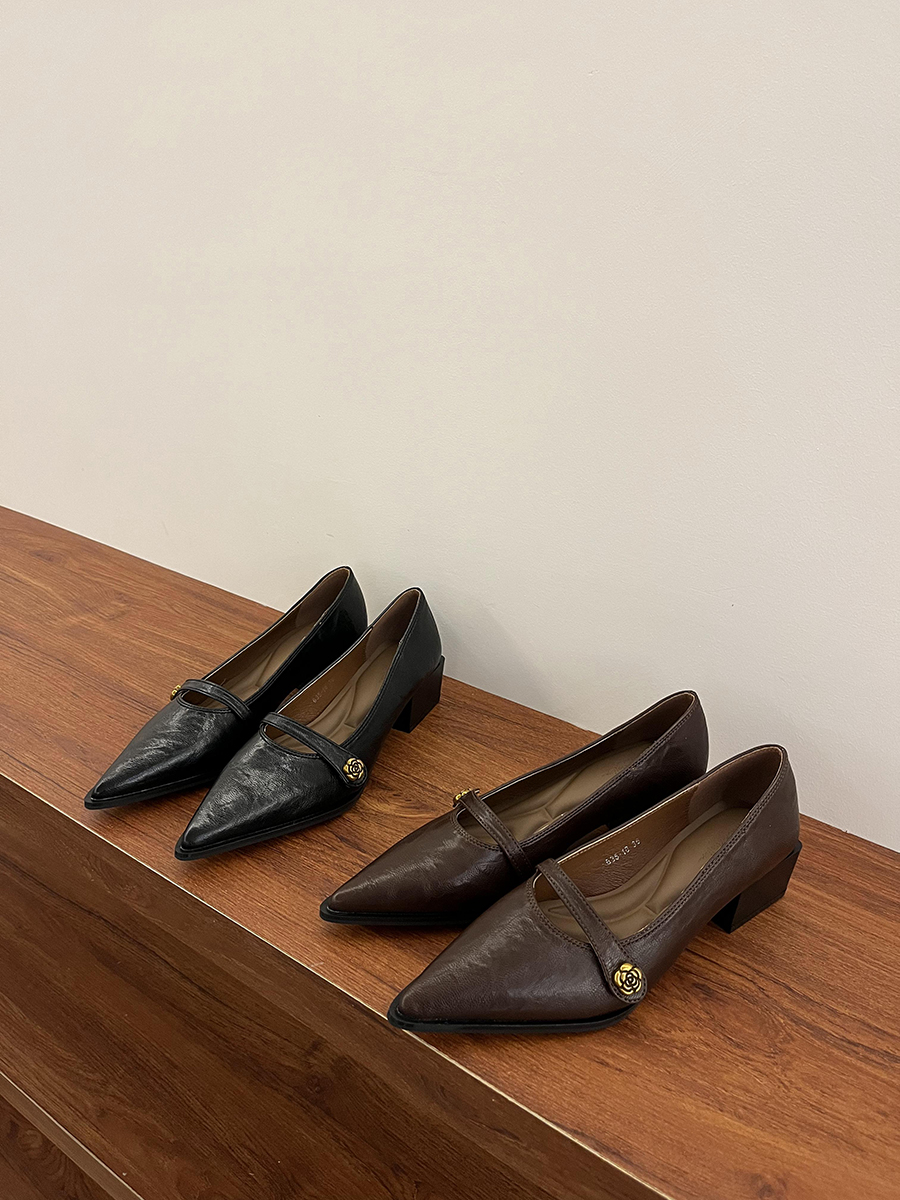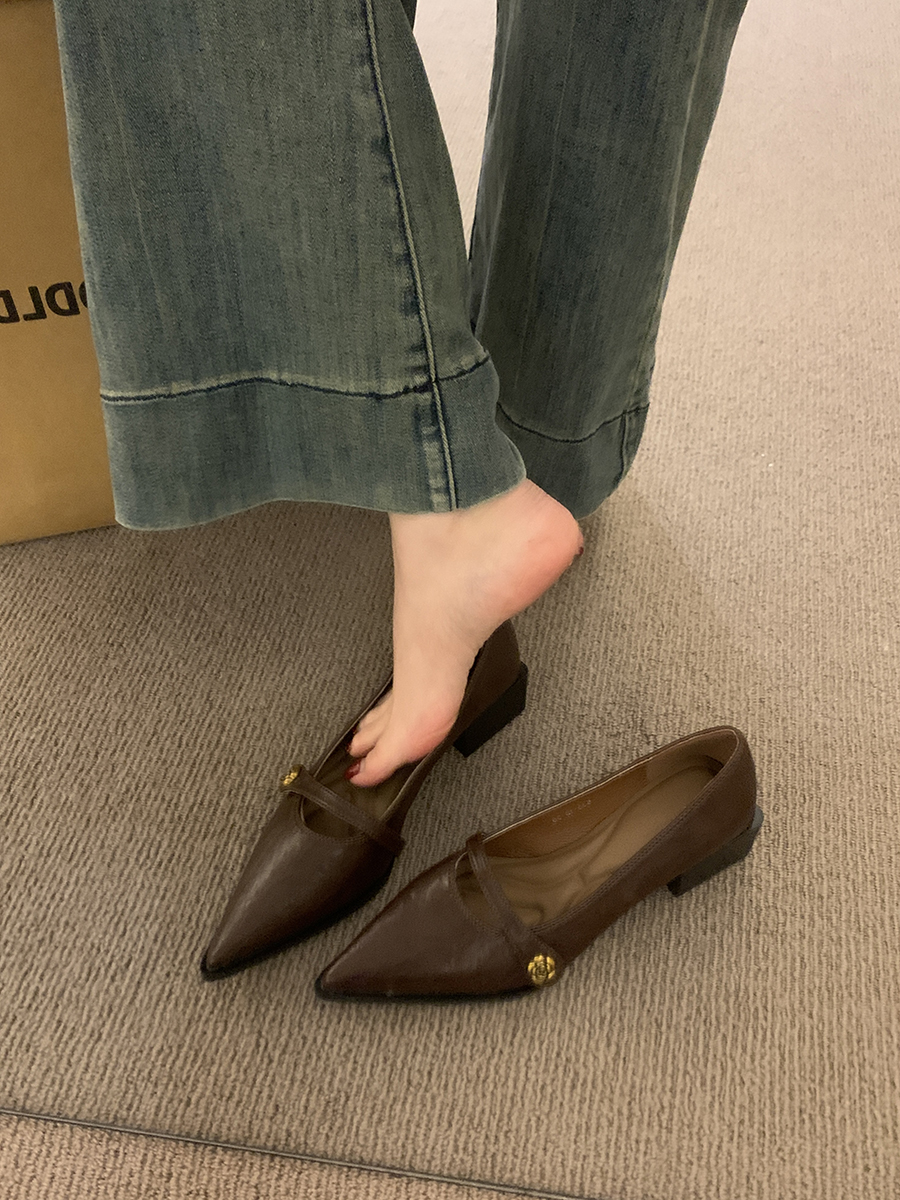 뾰족한 발가락 통근 얕은 입 싱글 레이어 신발 여성 봄과 가을 2025 프랑스 스타일 레트로 심야 청키 힐 패션 메리 제인 작은 가죽 신발스토어 가기