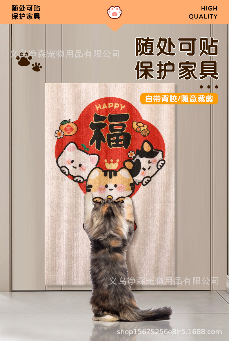 새로운 스타일 중국 매듭 도어 하트 푸 고양이 내마모성 고양이 스크래치 보드 고양이 연삭 발톱 안티 스크래치 스티커 수직 자체 포함 접착 벽 스티커스토어 가기