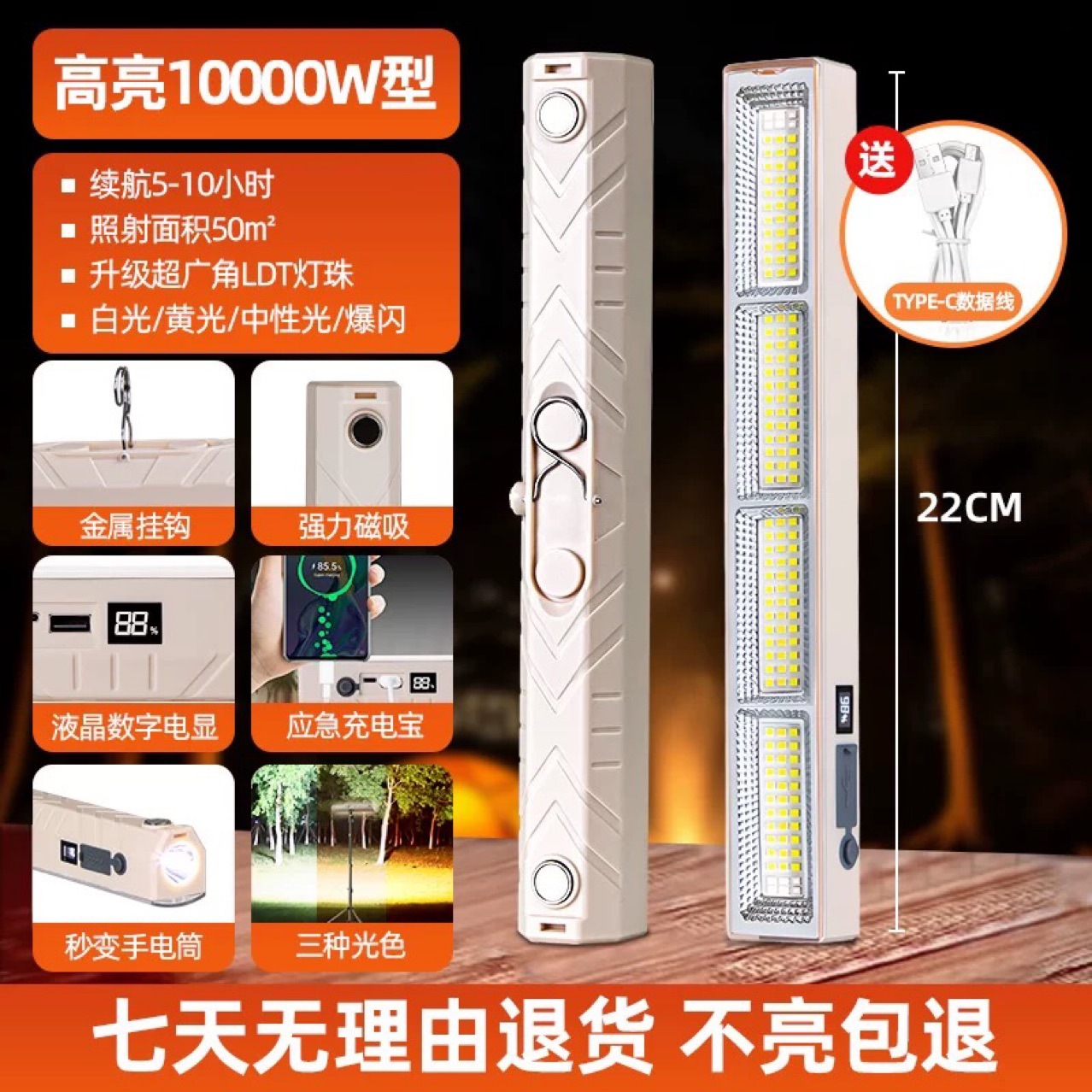 충전식 비상등, 야외 캠핑용 자석식 LED 강광등, 방수 및 내구성, 야시장 노점등, 초고휘도