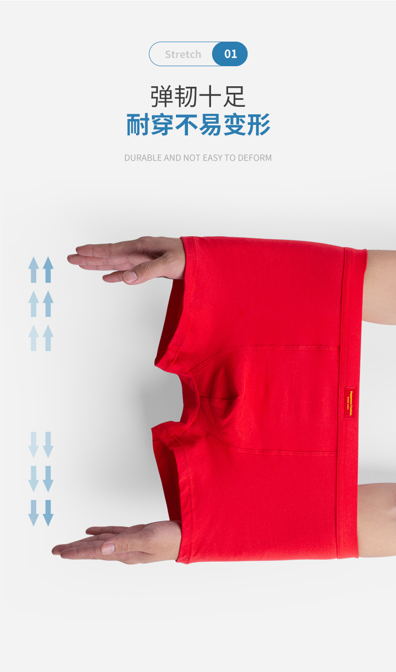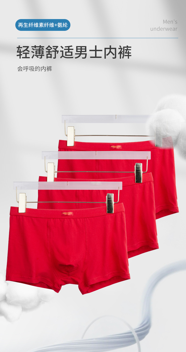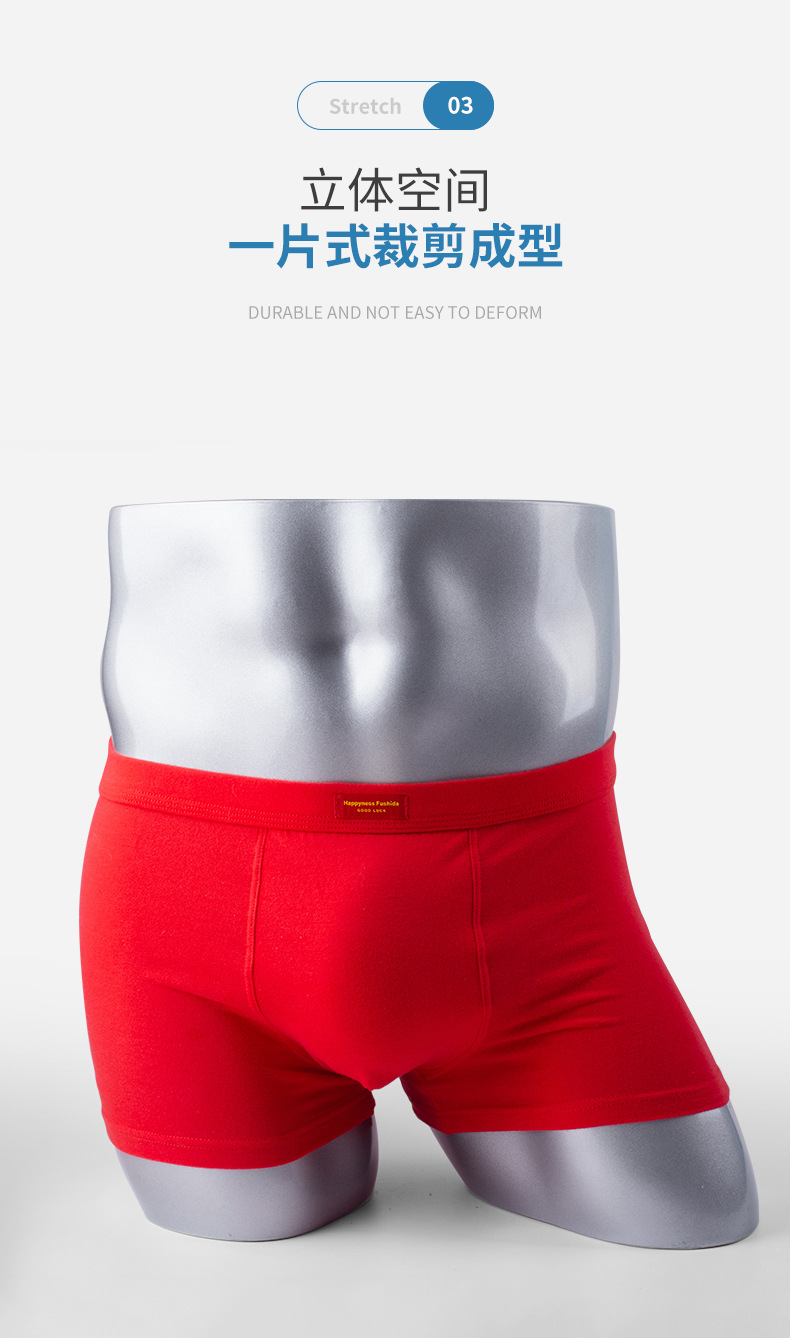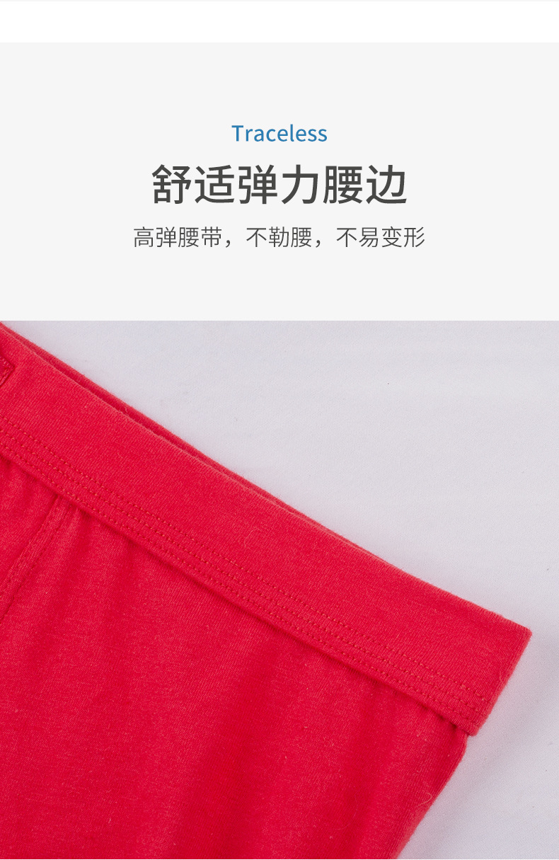 男士纯棉内裤 本命年内裤男 中山市小榄镇内衣厂 本命年红内裤纯绵抗菌高档男生 男士红色好运平角短裤男土内裤