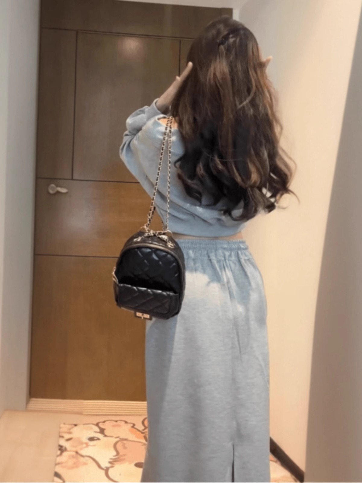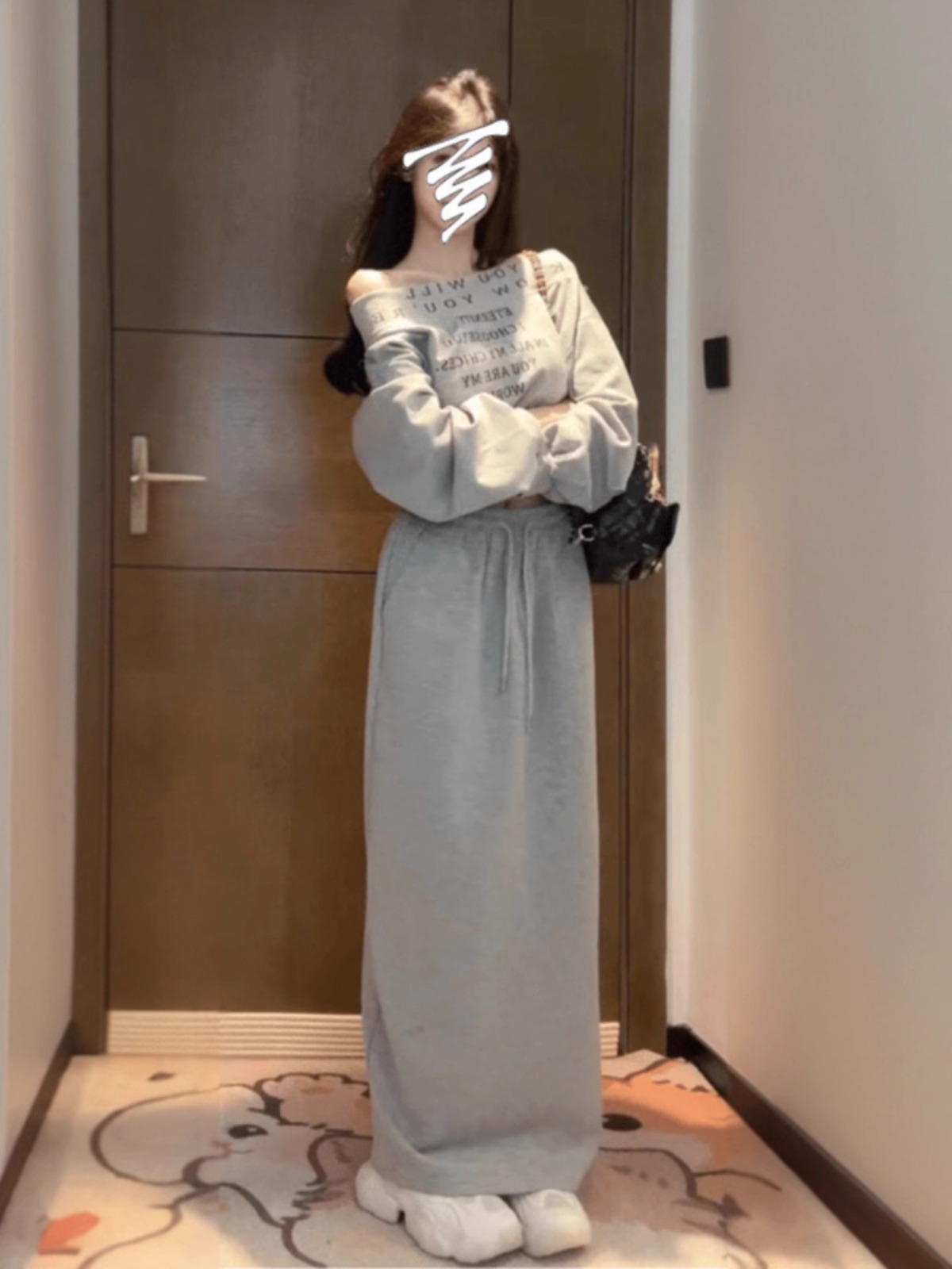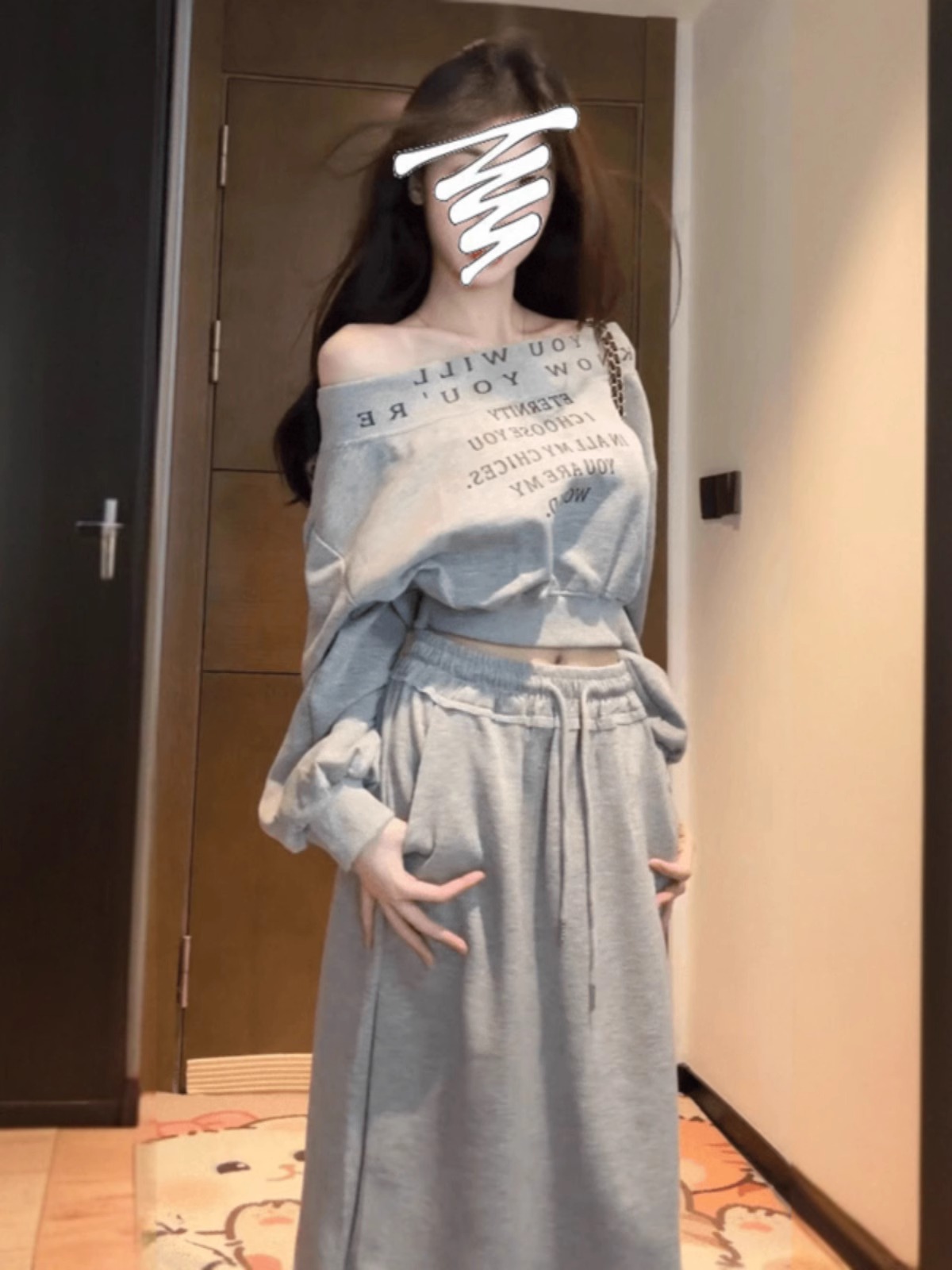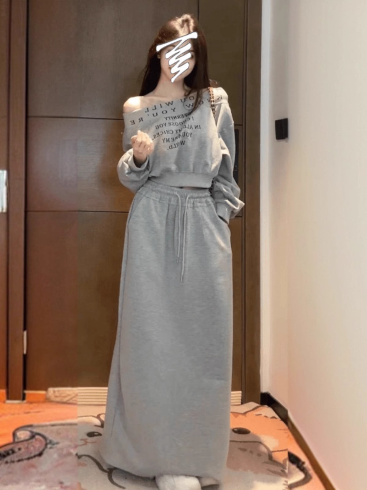 미국식 오프 숄더 허리 짧은 스웨터 여성용 드로 스트링 스커트 세트 여성용 스프링 스몰 투 피스 세트스토어 가기