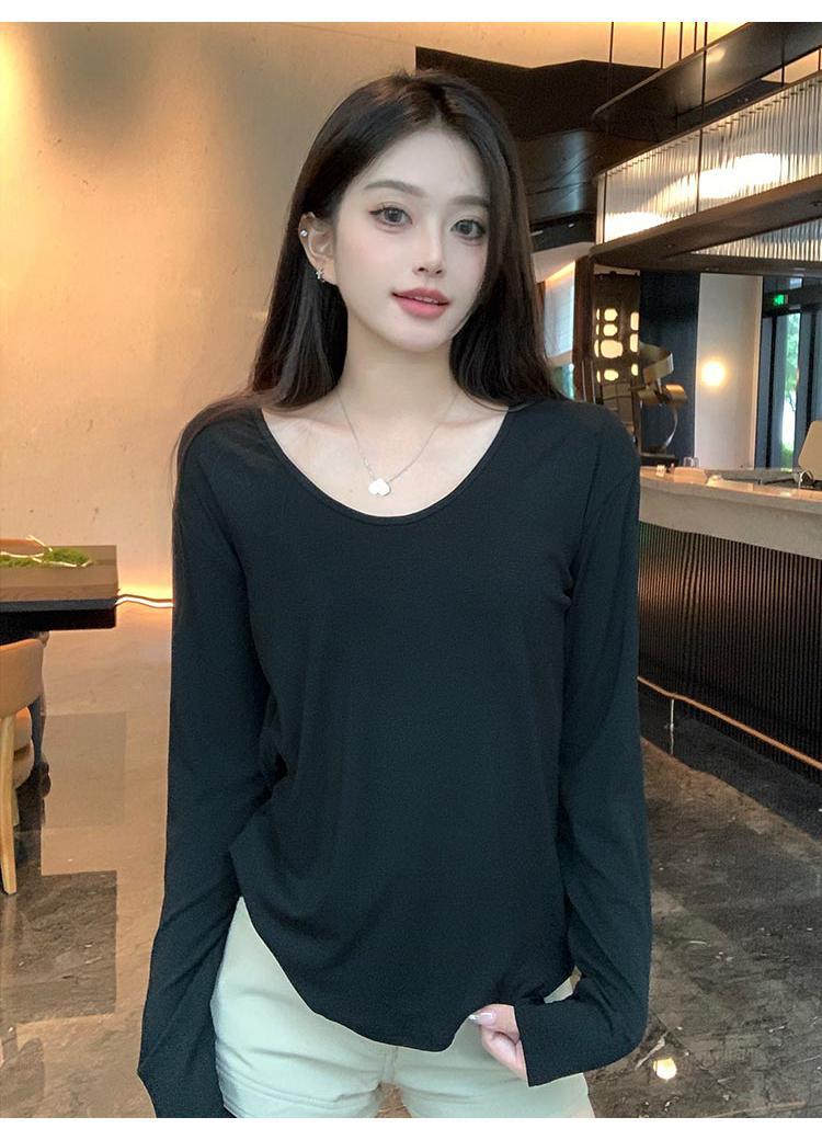 긴 소매 티셔츠 여성의 봄과 가을 느슨한 얇은 외부 착용 2024 가을 새로운 흰색 솔리드 컬러베이스 셔츠 내부 탑스토어 가기