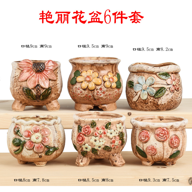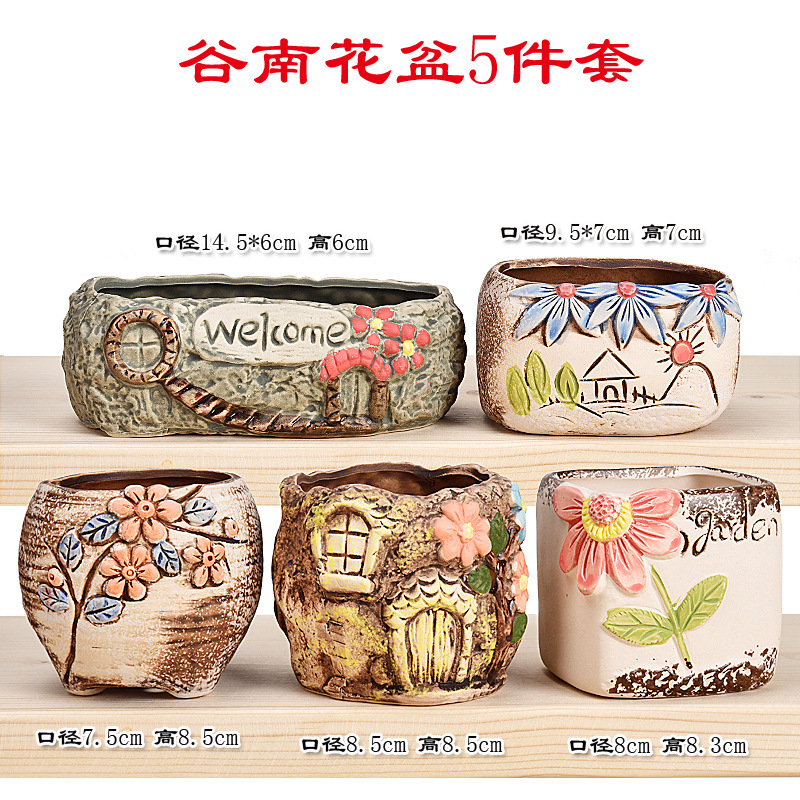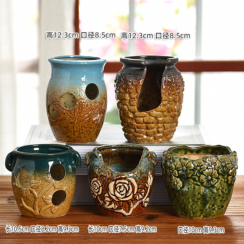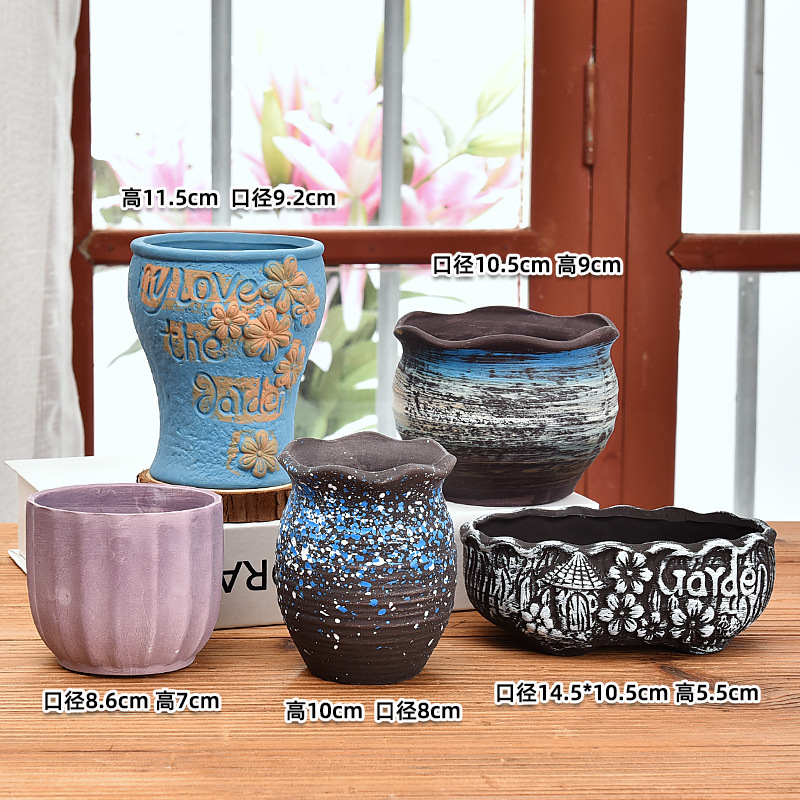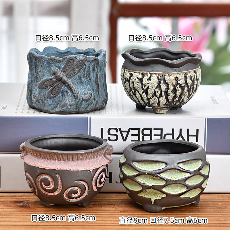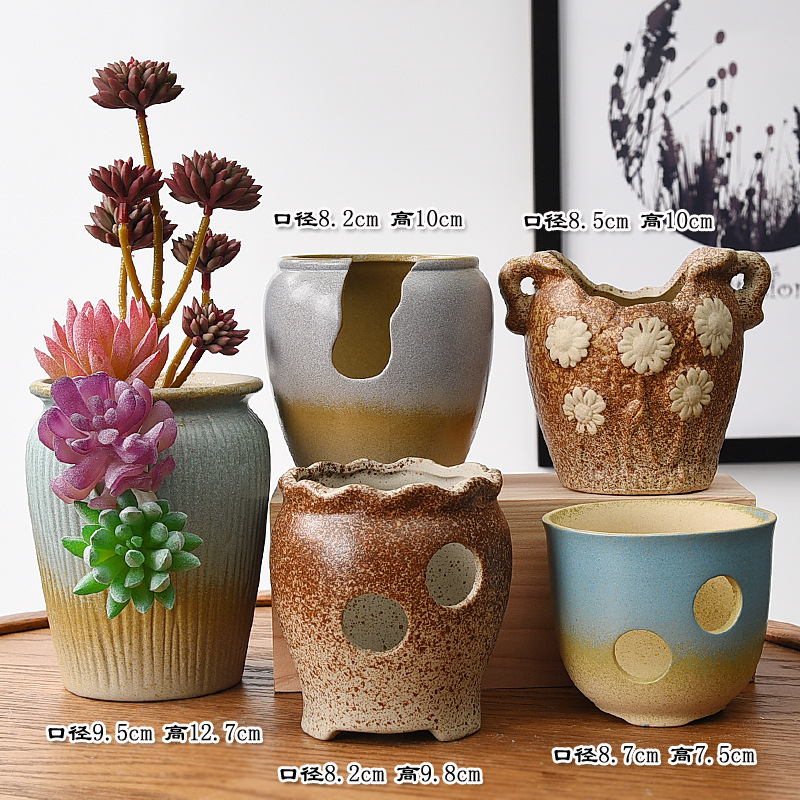 다육 화분 세라믹 다육 식물 석기 빈티지 일반 태워 보라색 모래 크고 작은 구경 간단한 가격