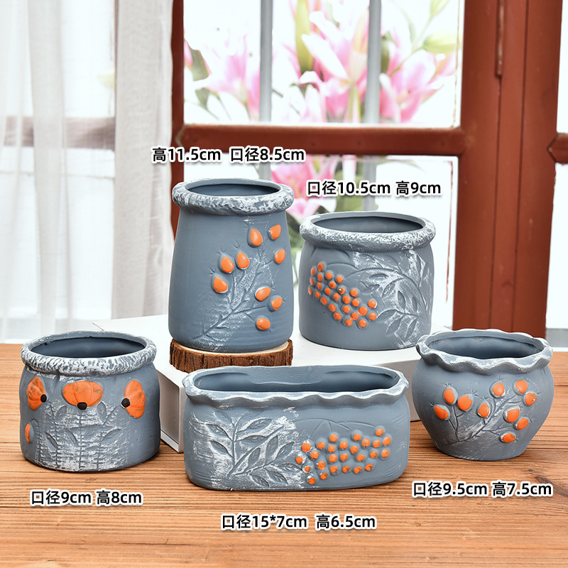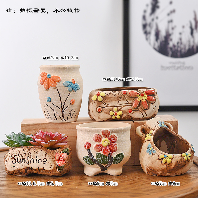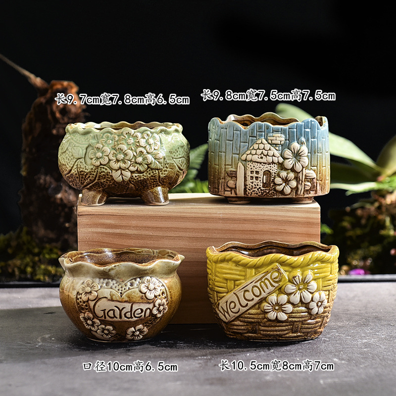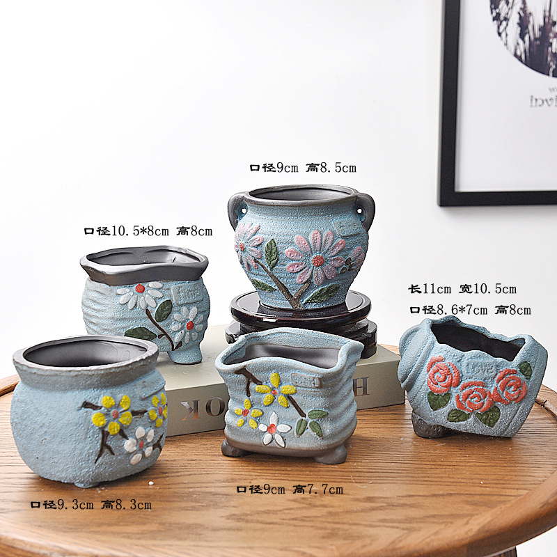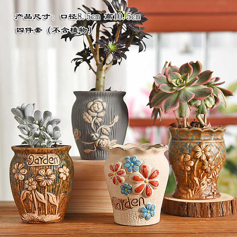 다육 화분 세라믹 다육 식물 석기 빈티지 일반 태워 보라색 모래 크고 작은 구경 간단한 가격스토어 가기