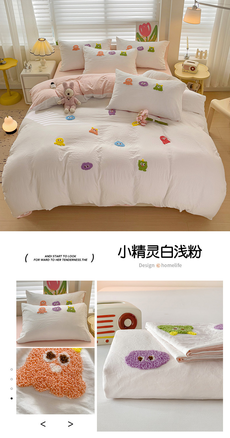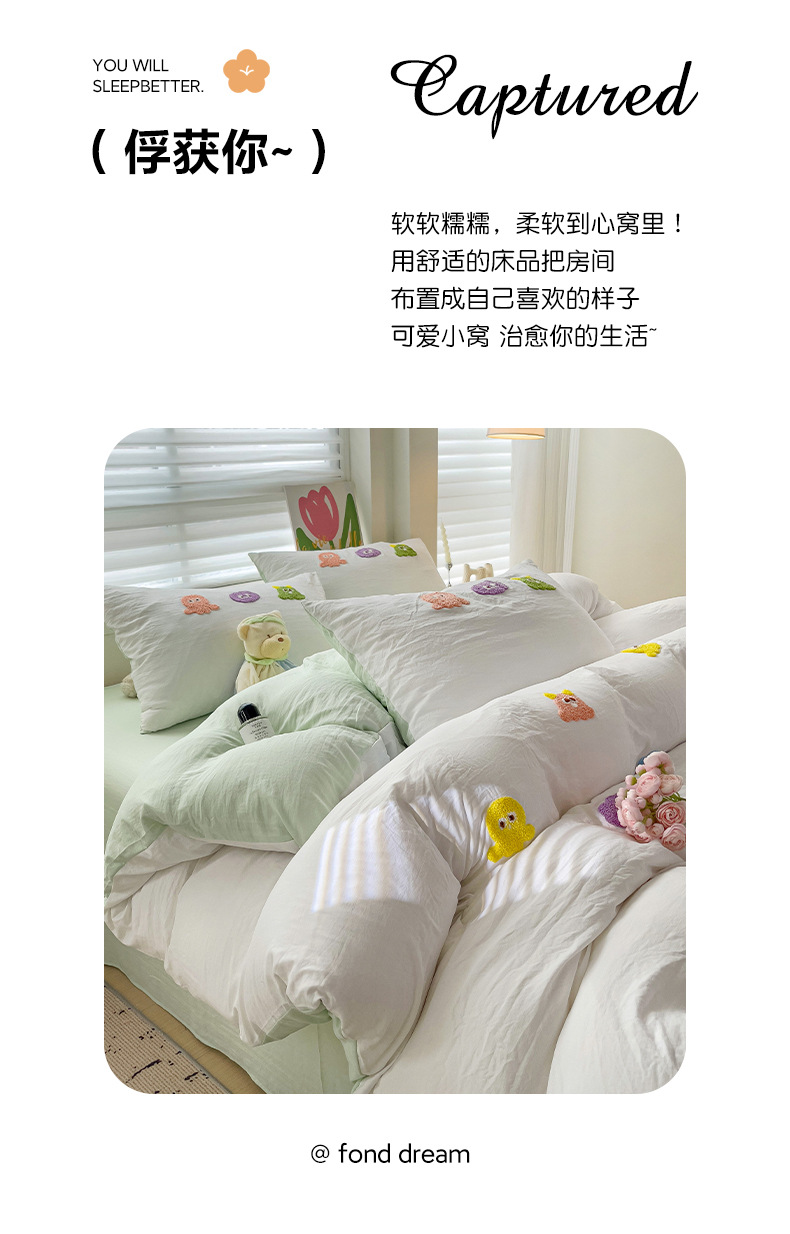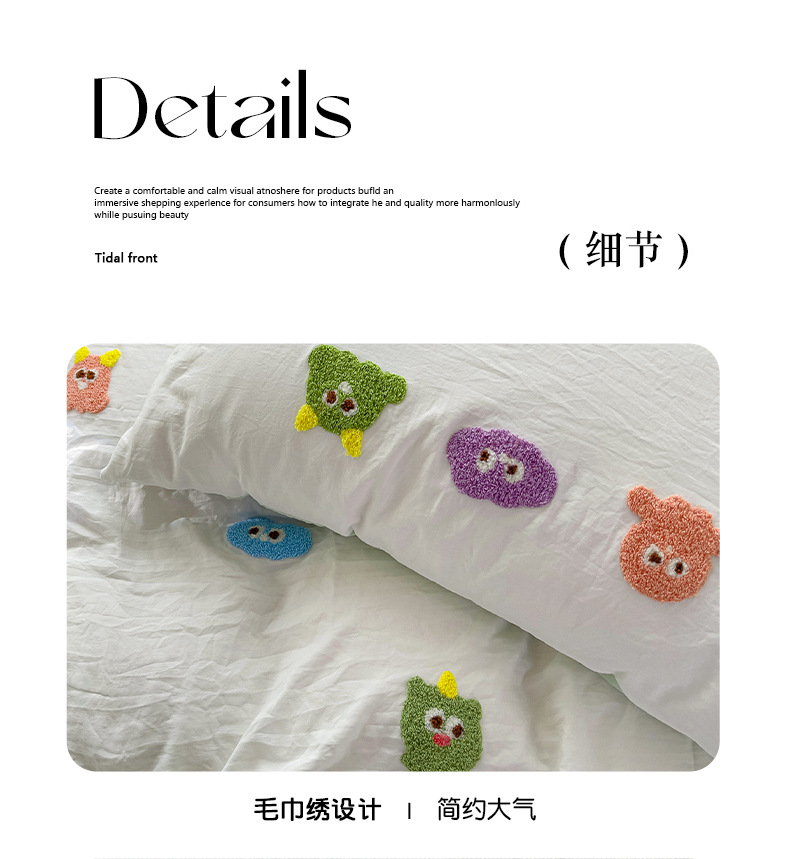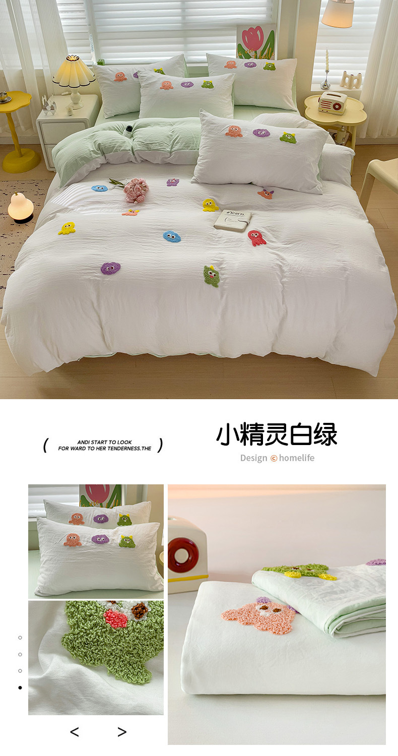 슈퍼 소프트 클라우드 느낌 세척 코튼 타월 자수 4 피스 세트 싱글 더블 사계절 학생 기숙사 3 피스 퀼트 커버