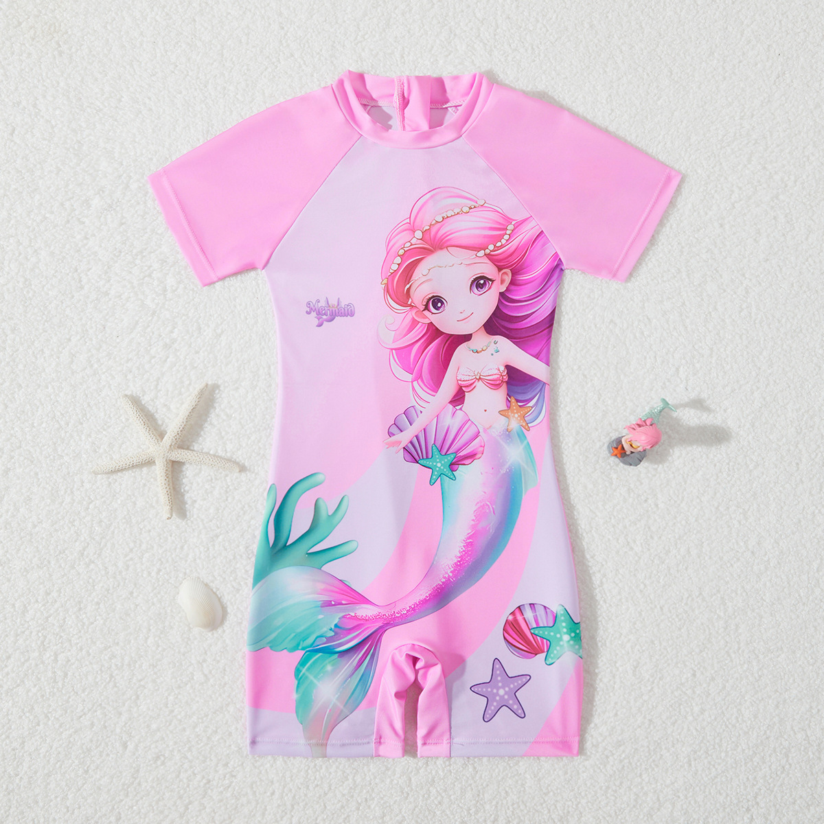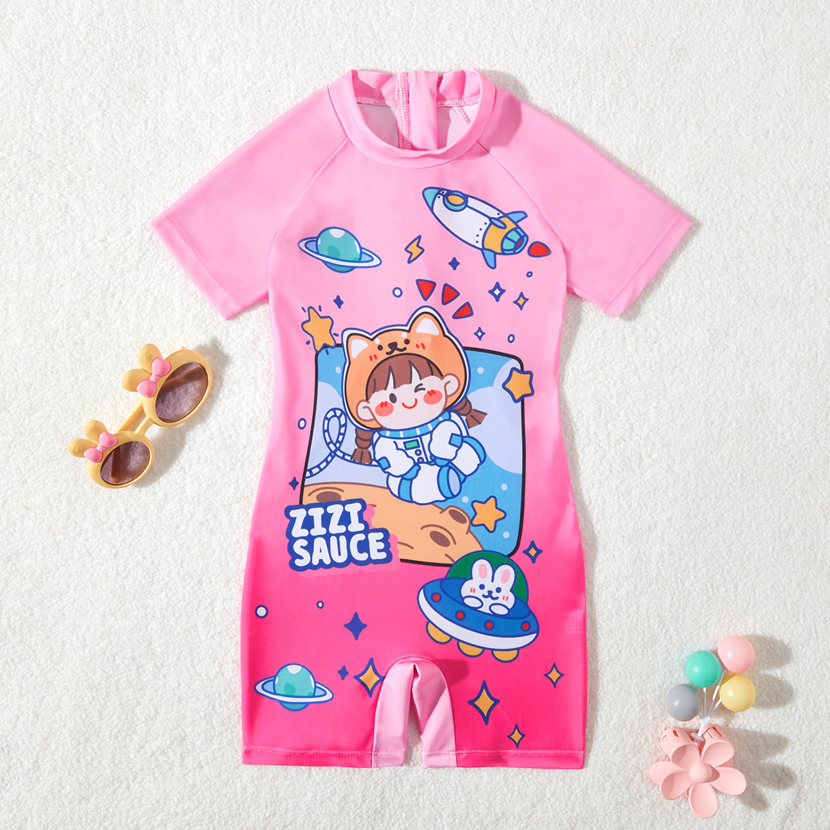 어린이 수영복 새로운 원피스 선 스크린 짧은 소매 수영복 만화 인쇄 어린이 수영복 휴가 수영복 대외 무역스토어 가기
