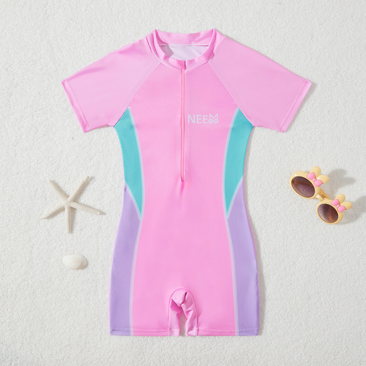 어린이 수영복 새로운 원피스 선 스크린 짧은 소매 수영복 만화 인쇄 어린이 수영복 휴가 수영복 대외 무역