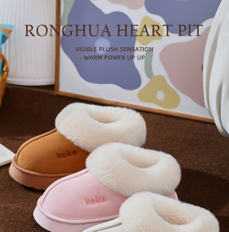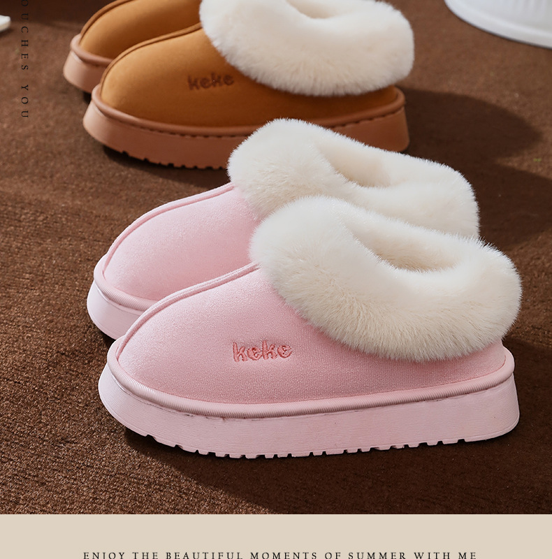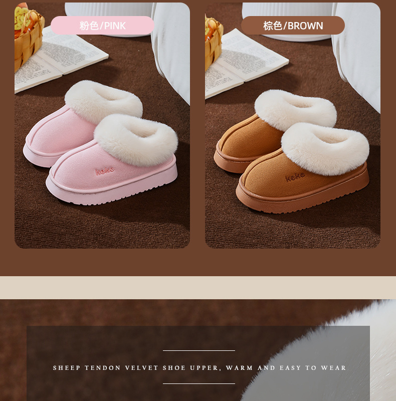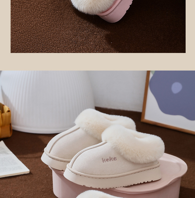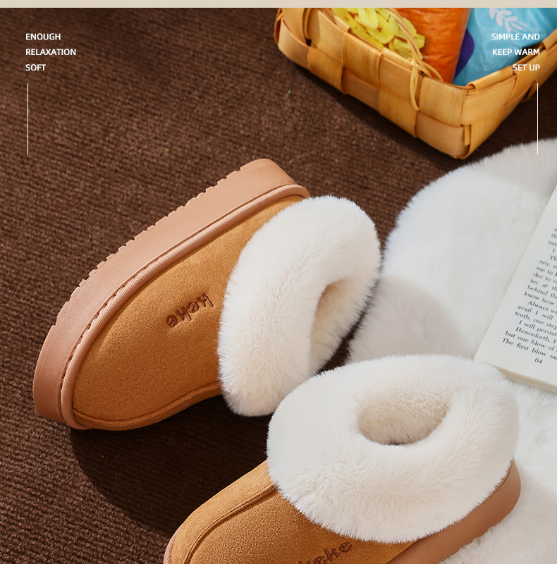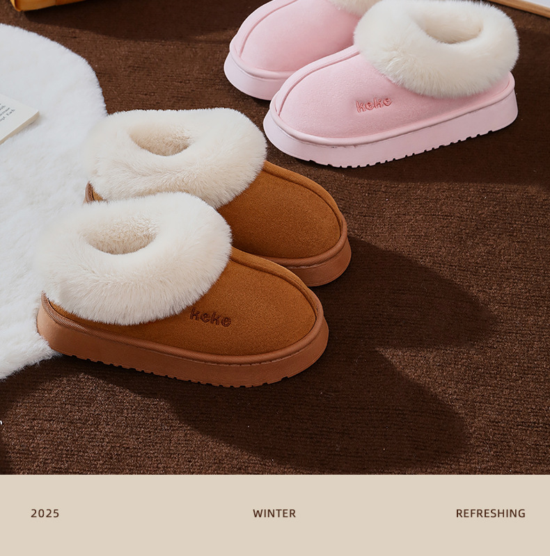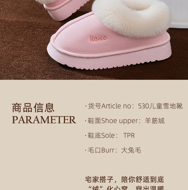 Keke Winter Middle and Big Children's 기모 두꺼운 면 슬립 온 미끄럼 방지 따뜻한 착용 가정용 슬리퍼 실내 홈 스노우 부츠