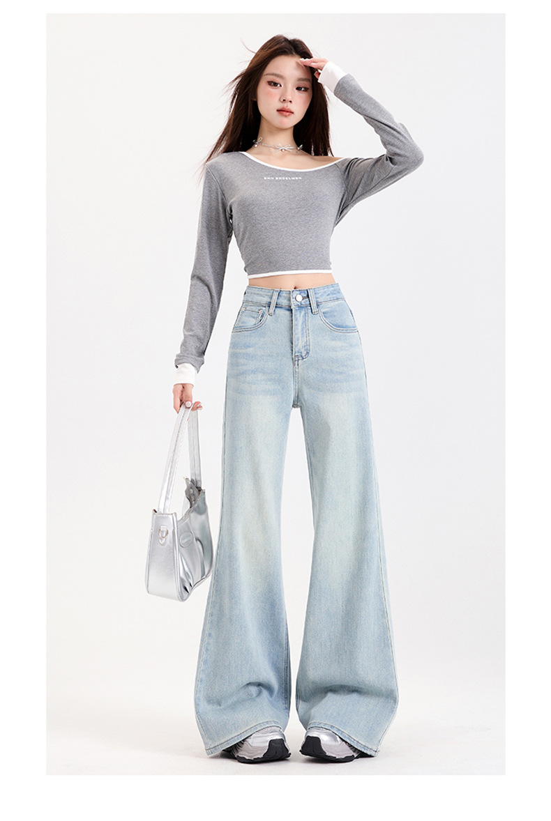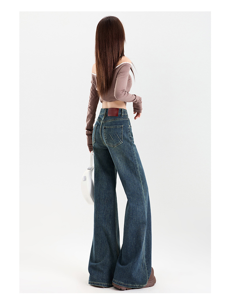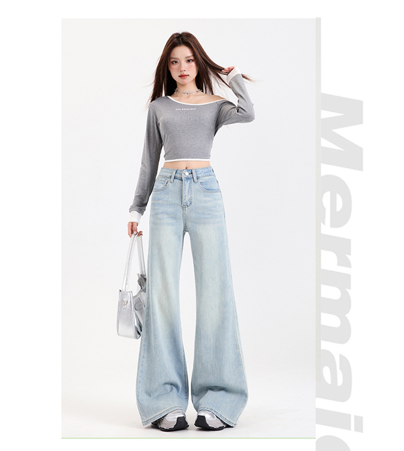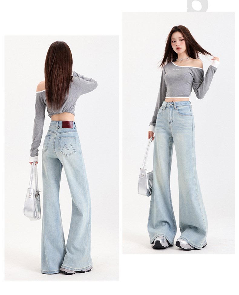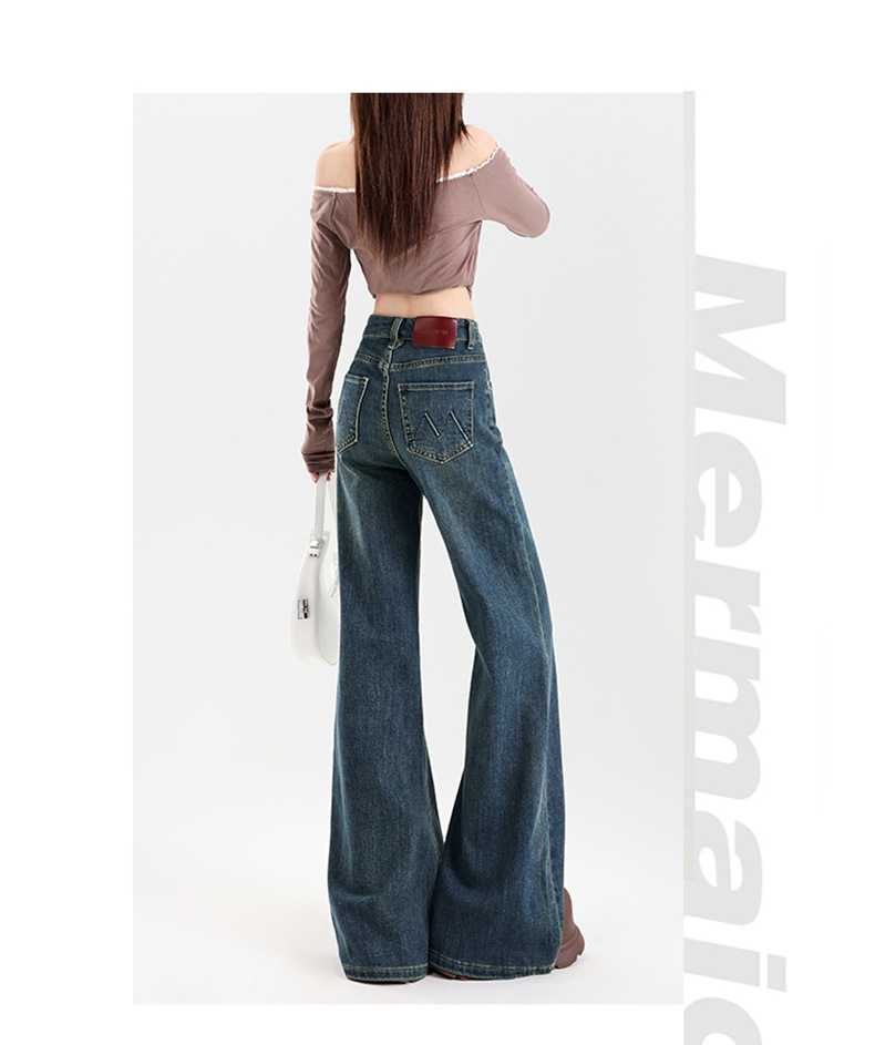 여성용 하이웨이스트 신축성 마이크로 플레어 청바지 2025 신상 슬림핏, 다리가 꽉 끼지 않아 더욱 날씬해 보이는 바닥 길이의 말굽 팬츠