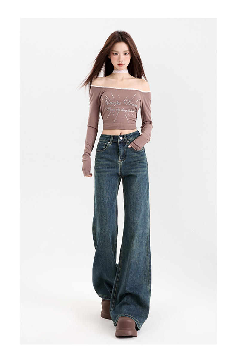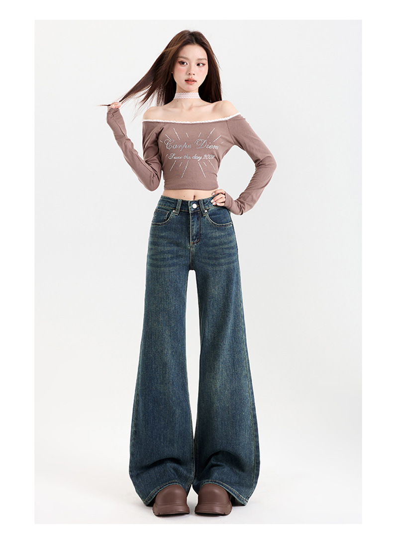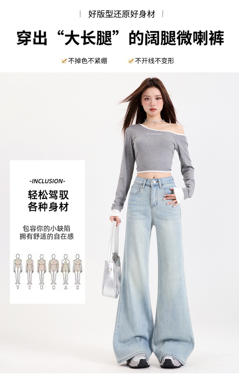 여성용 하이웨이스트 신축성 마이크로 플레어 청바지 2025 신상 슬림핏, 다리가 꽉 끼지 않아 더욱 날씬해 보이는 바닥 길이의 말굽 팬츠스토어 가기
