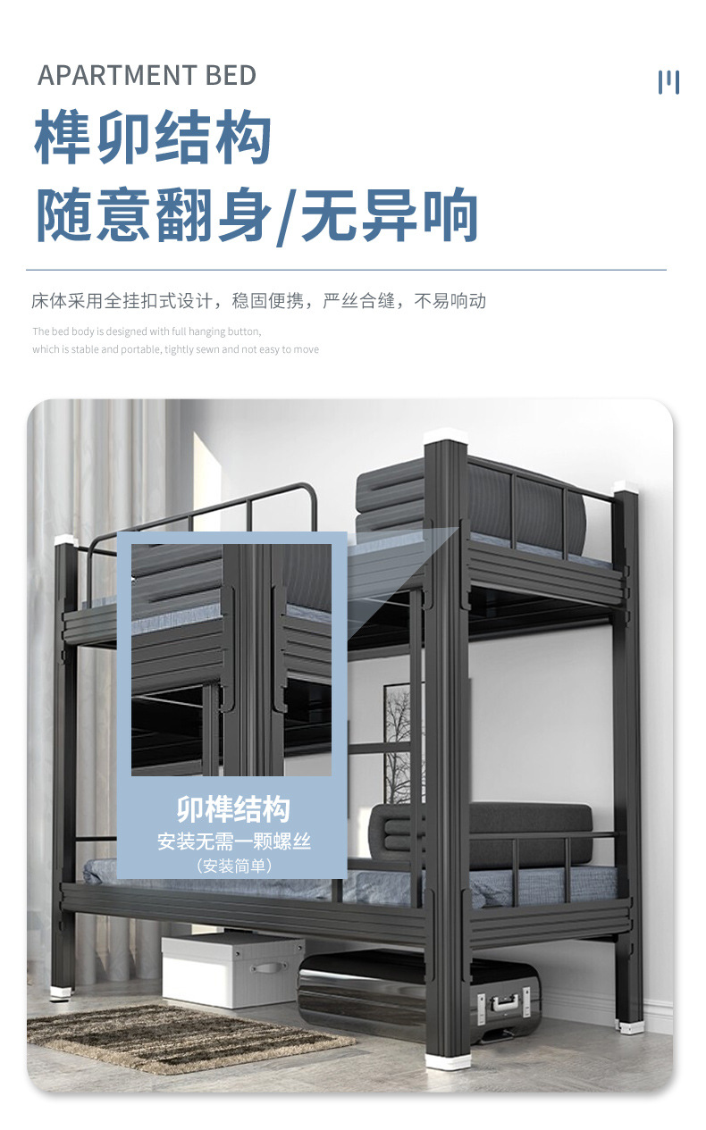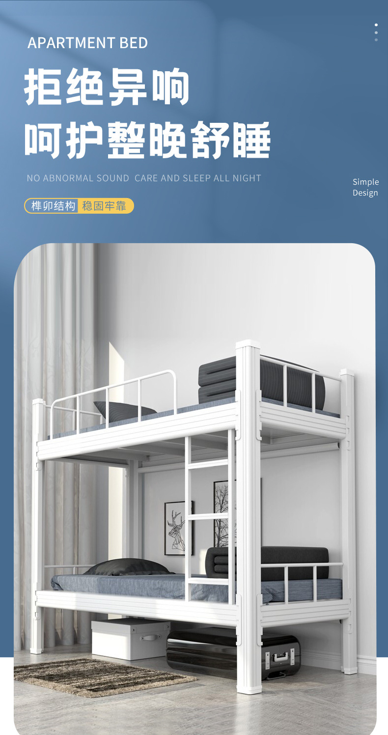 이층 이층 침대 학생 기숙사 철제 침대 이층 침대 직원 기숙사 더블 두꺼운 철제 프레임 침대 높고 낮은 침대
