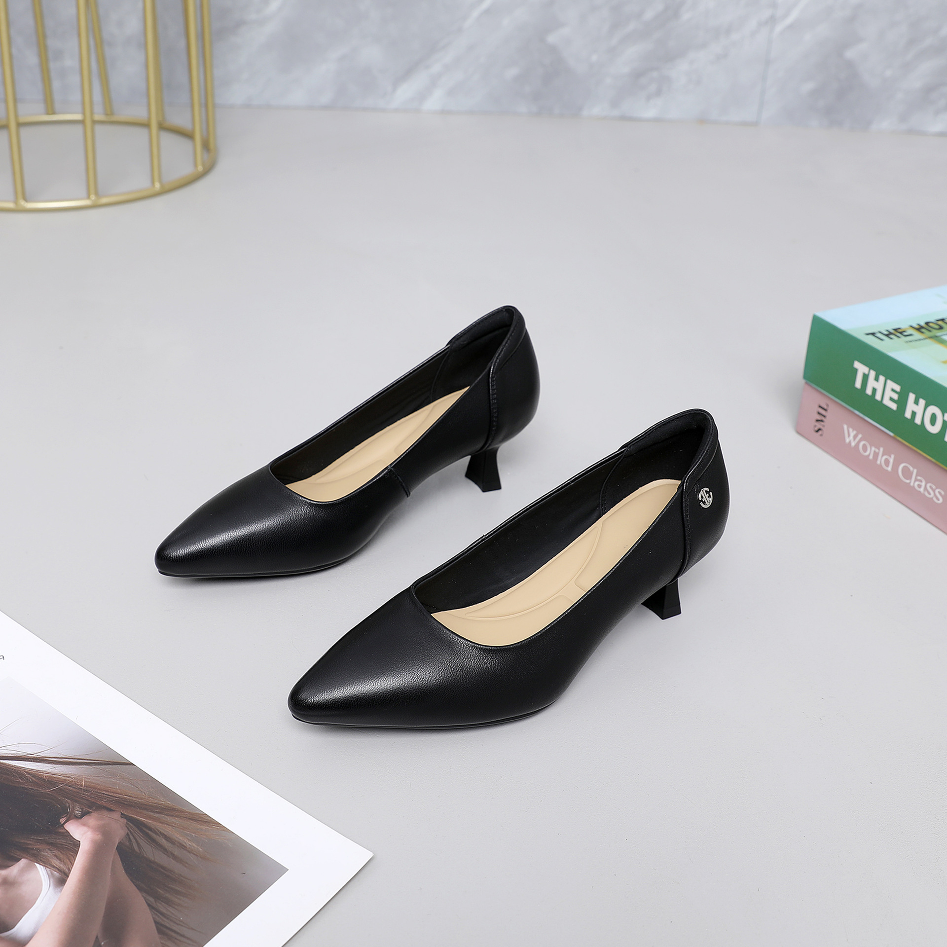 천연가죽 두꺼운 굽 얕은굽 여성화 2026 봄 신상 정장용 하이힐 여성화 다용도 비즈니스 워크 슈즈