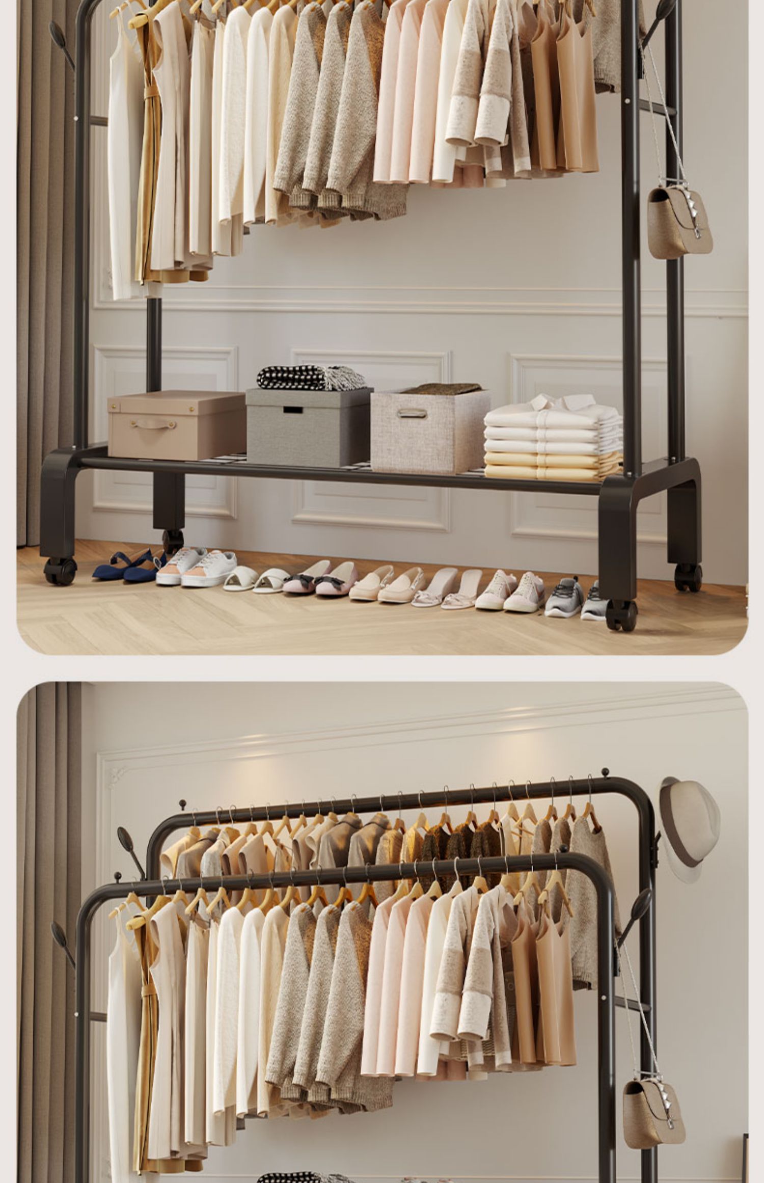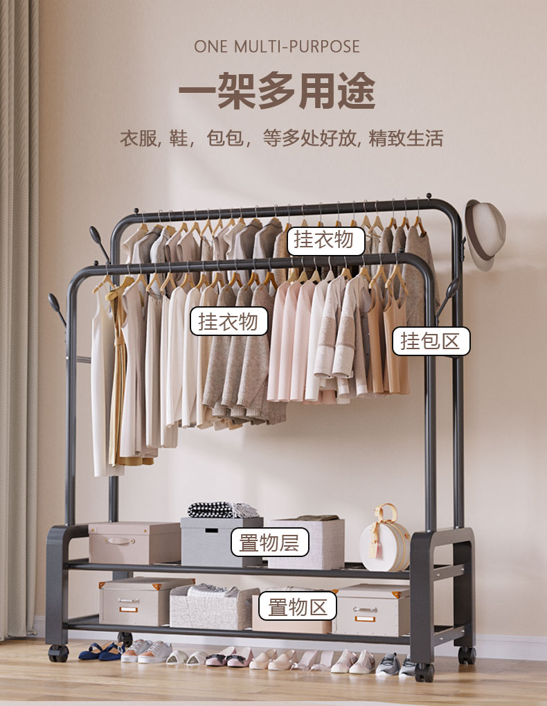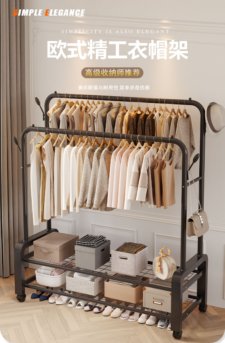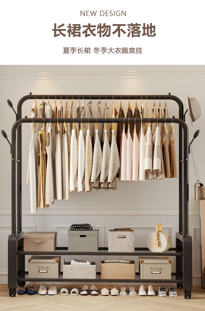바닥 보관 용 옷걸이 의류 랙 의류 매달려 실내 그물 건조 랙 침실 가구 더블 폴 코트 랙 속옷 교수형