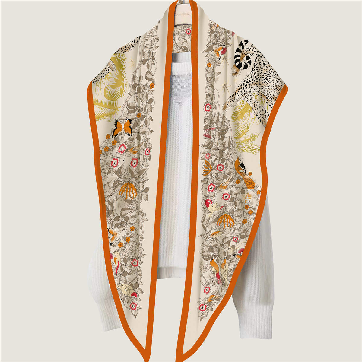한국 스타일 모조 실크 헤어 삼각형 수건 이른 봄 새 도착 레오파드 꽃 장식 따뜻한 올 매치 헤드 스카프