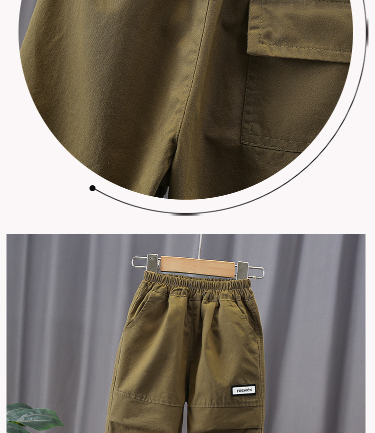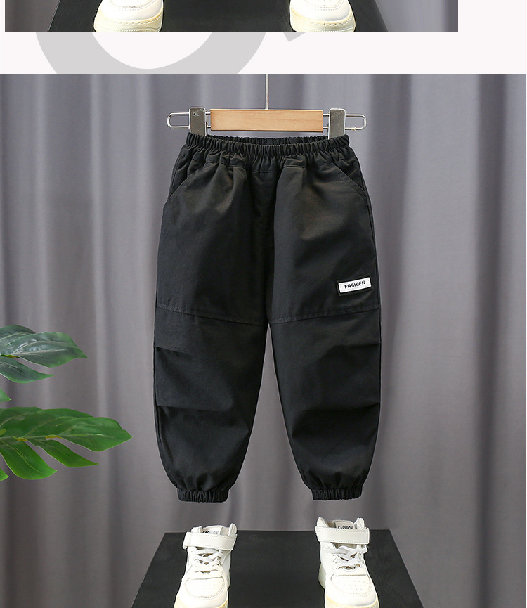 소년의 흑백 문자 라벨 주름 바지 2025 봄과 가을 새로운 아동복 아동복 올 매치 캐주얼 바지스토어 가기