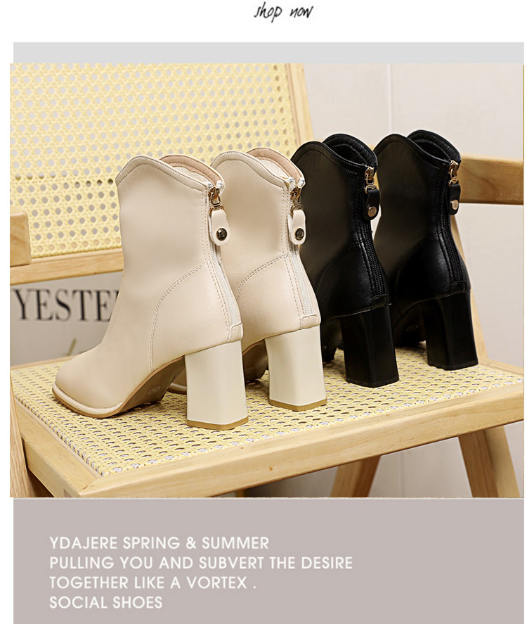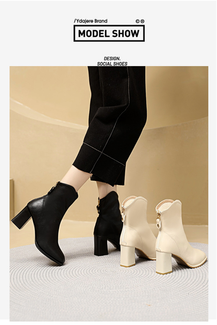 유럽과 미국의 스퀘어 헤드 두꺼운 힐 소프트 가죽 짧은 부츠 조커 패션 부츠 2024 가을과 겨울 새로운 기모 마틴 부츠 재고스토어 가기