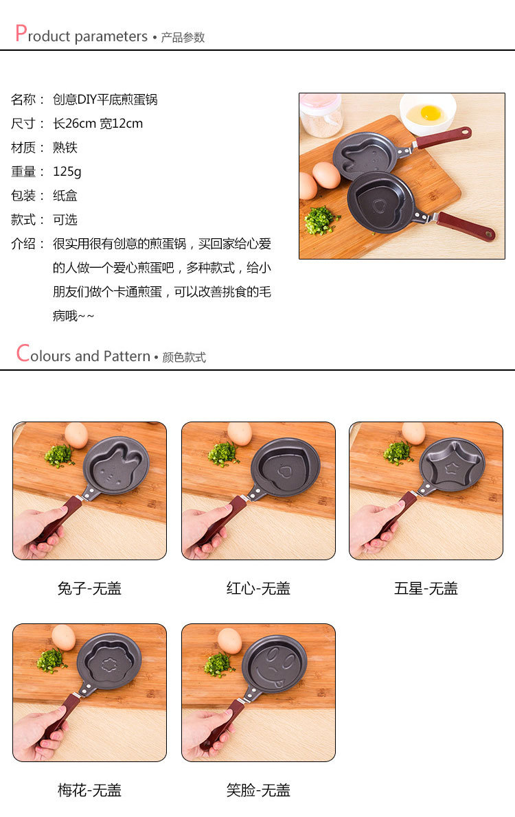 만화 미니 프라이팬 팬 창조적 인 비 스틱 팬 홈 아침 식사 팬 동물 모양 하트 튀긴 계란 팬