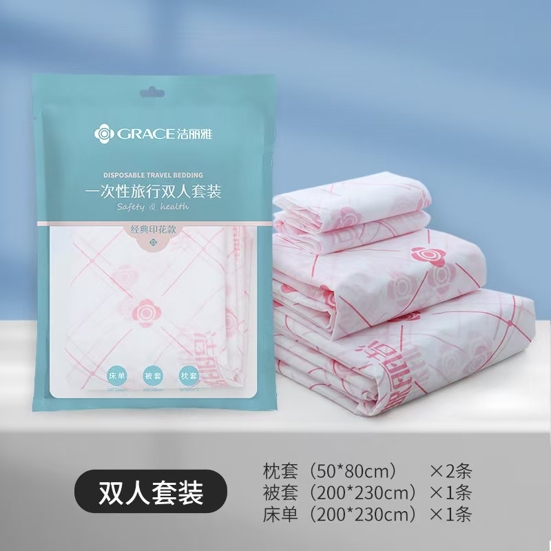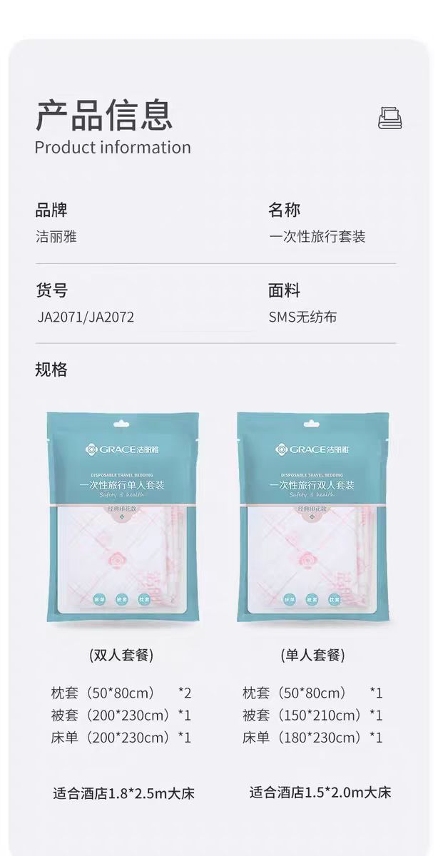 Jielia 일회용 침대 시트 퀼트 커버 베개 케이스 인쇄 더블 세트 여행 호텔 침구 도매 2072스토어 가기