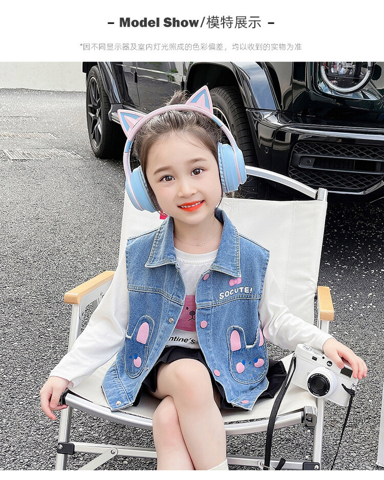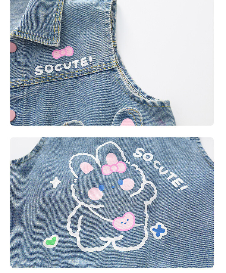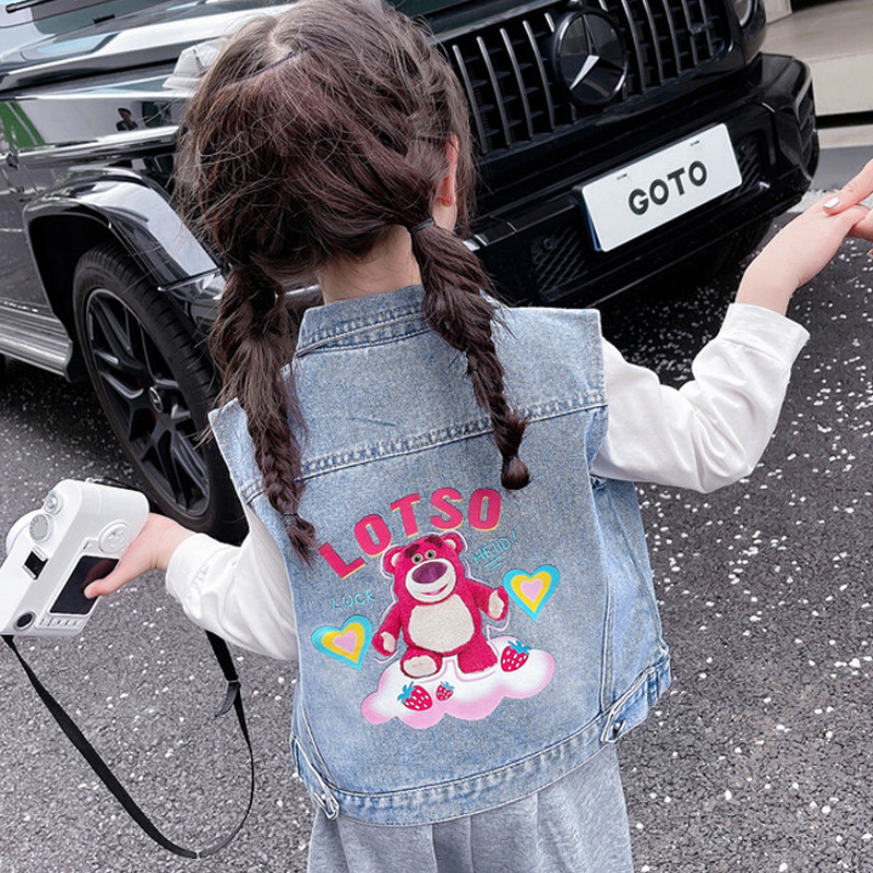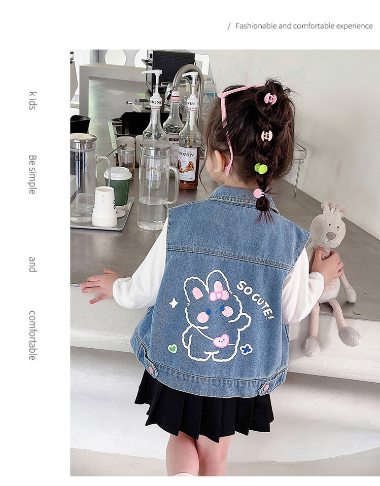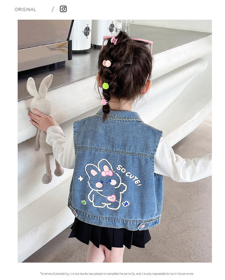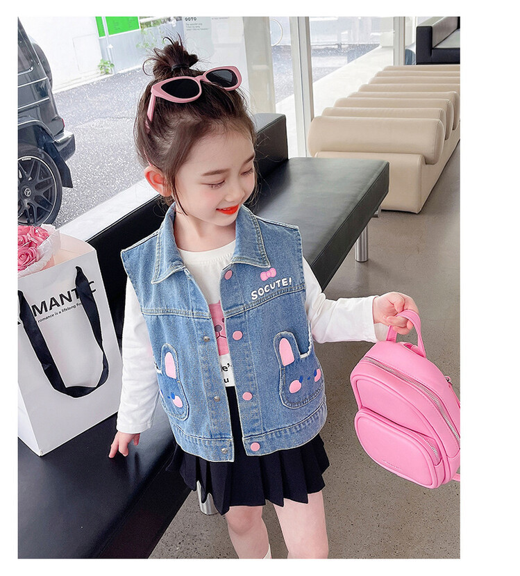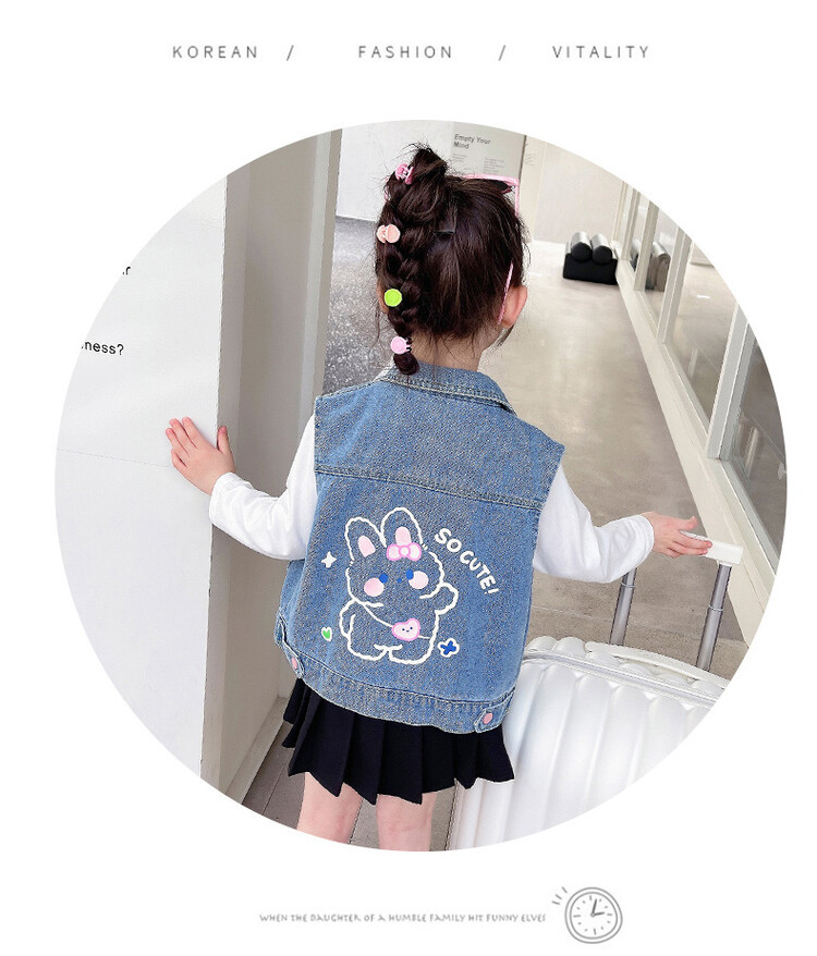 소녀 데님 조끼 봄과 가을 2025 새로운 어린이 서양식 가을 코트 아기의 유행 외모 조끼 가을 착용스토어 가기