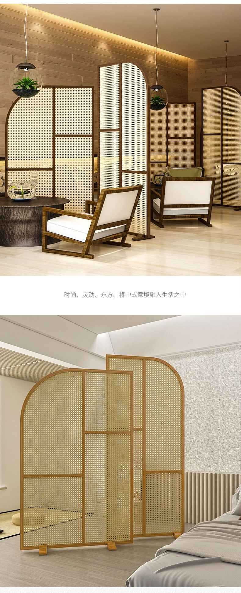 일본식 솔리드 우드 등나무 스크린 파티션 거실 식당 입구 복도 대피소 현대 간단한 홈 조합